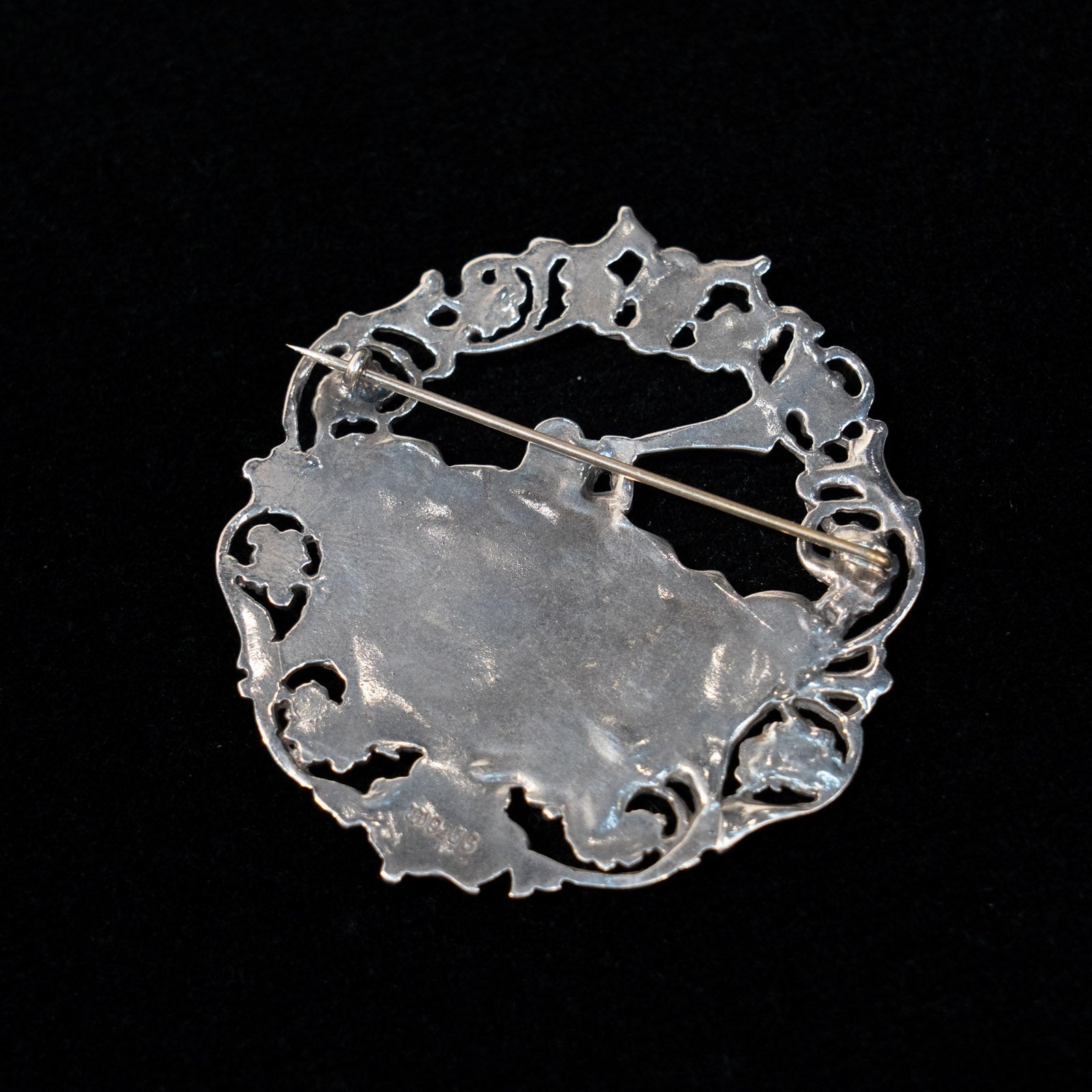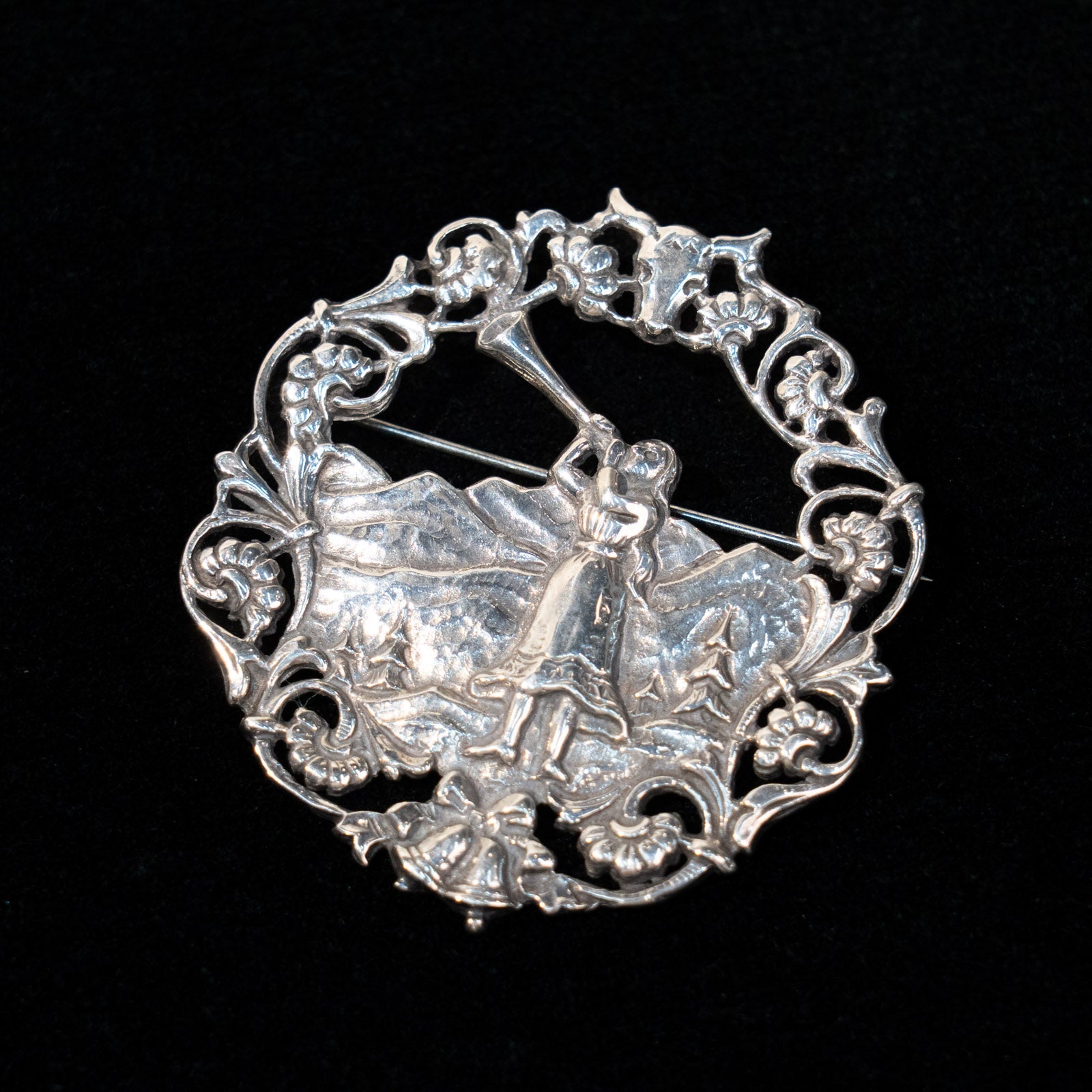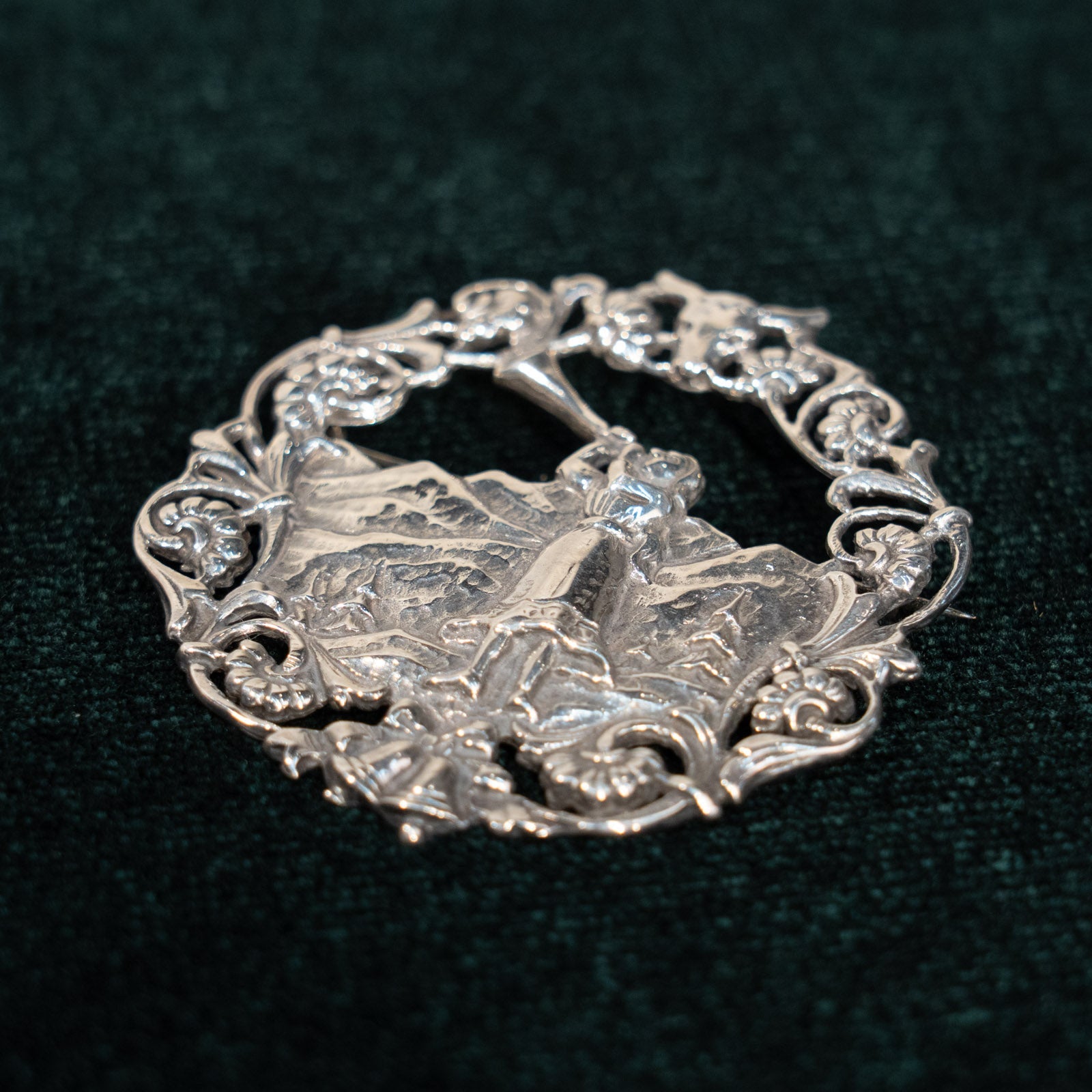 北欧の牧歌的な風景が描かれた シルバー スカンジナビアンブローチ /23K