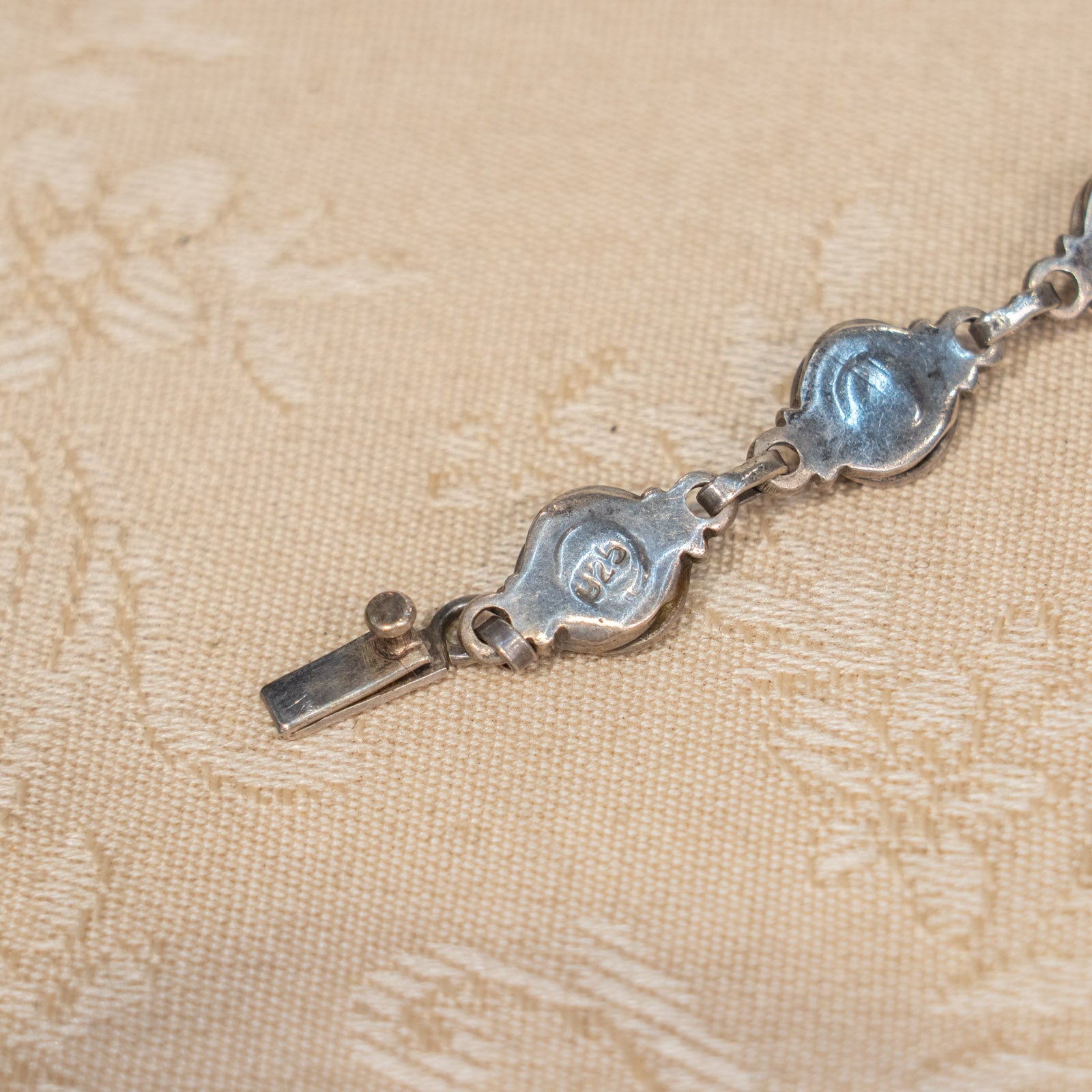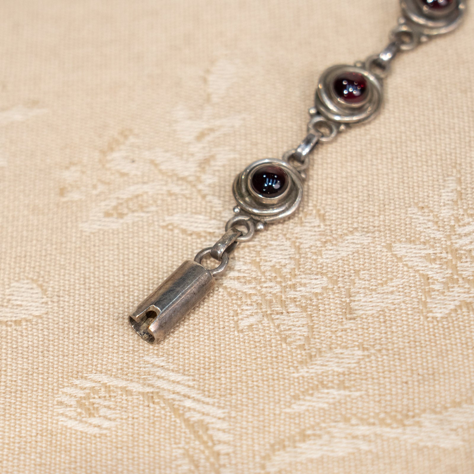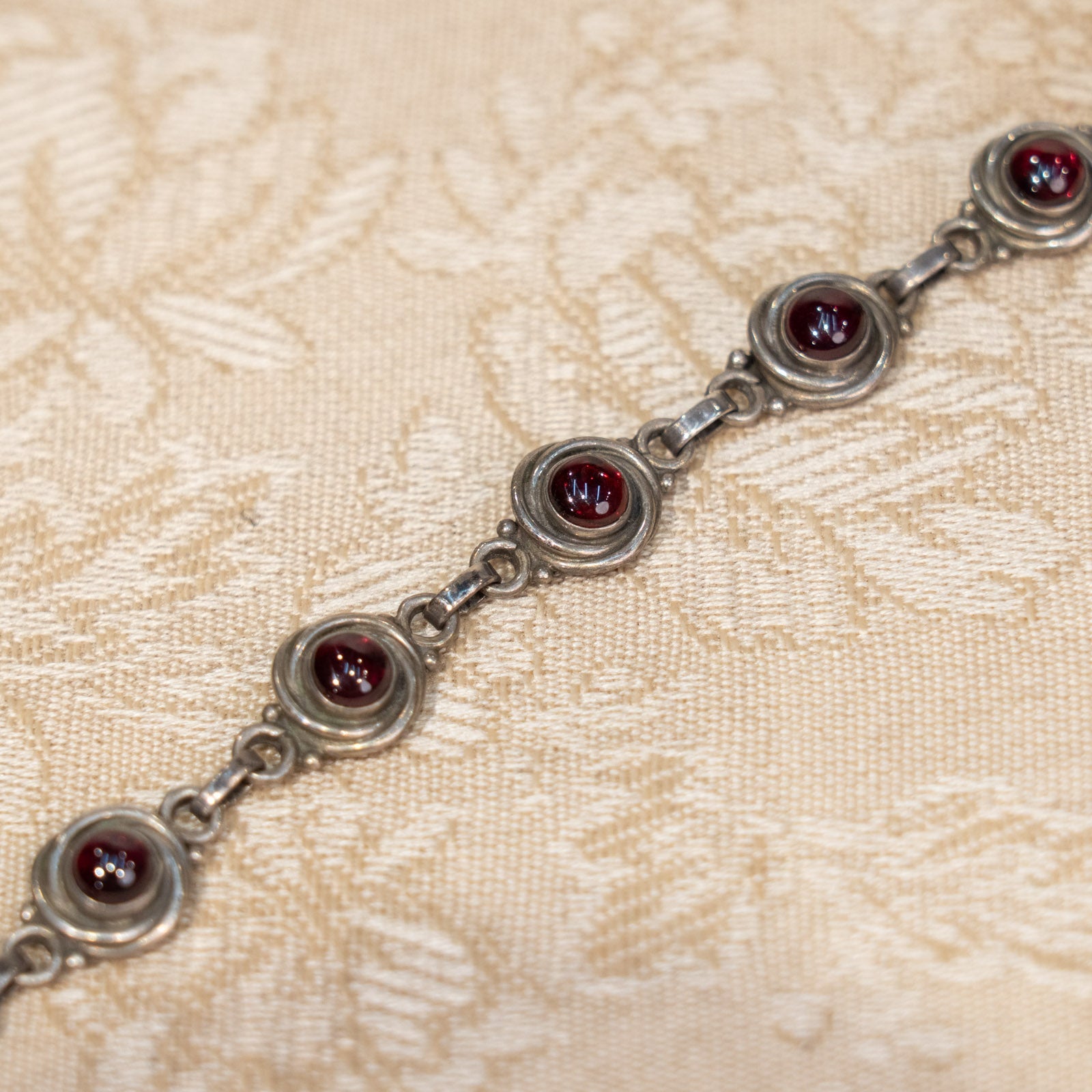 こちらはイギリスから買付けた、ガーネットの神秘的な美しさを引き立てたシルバーブレスレットです。