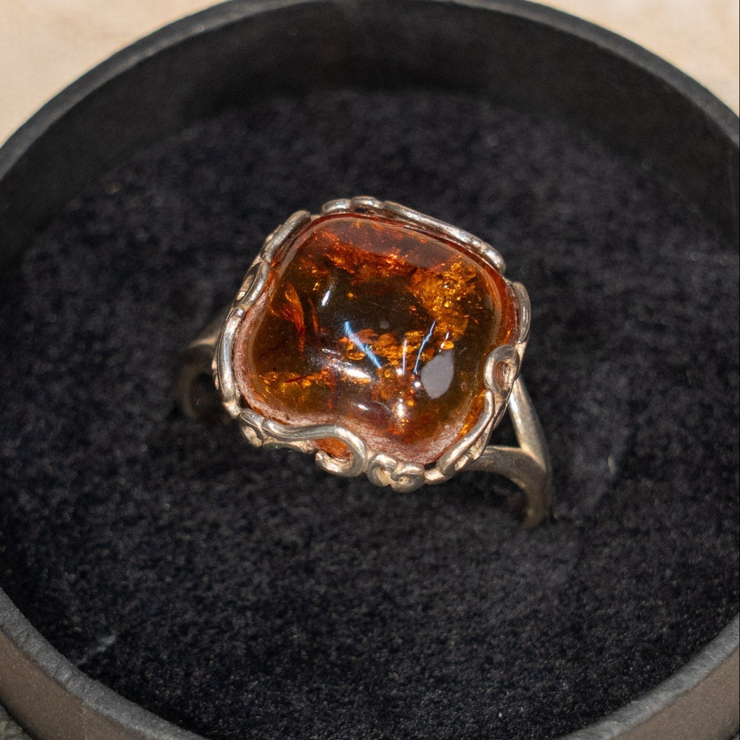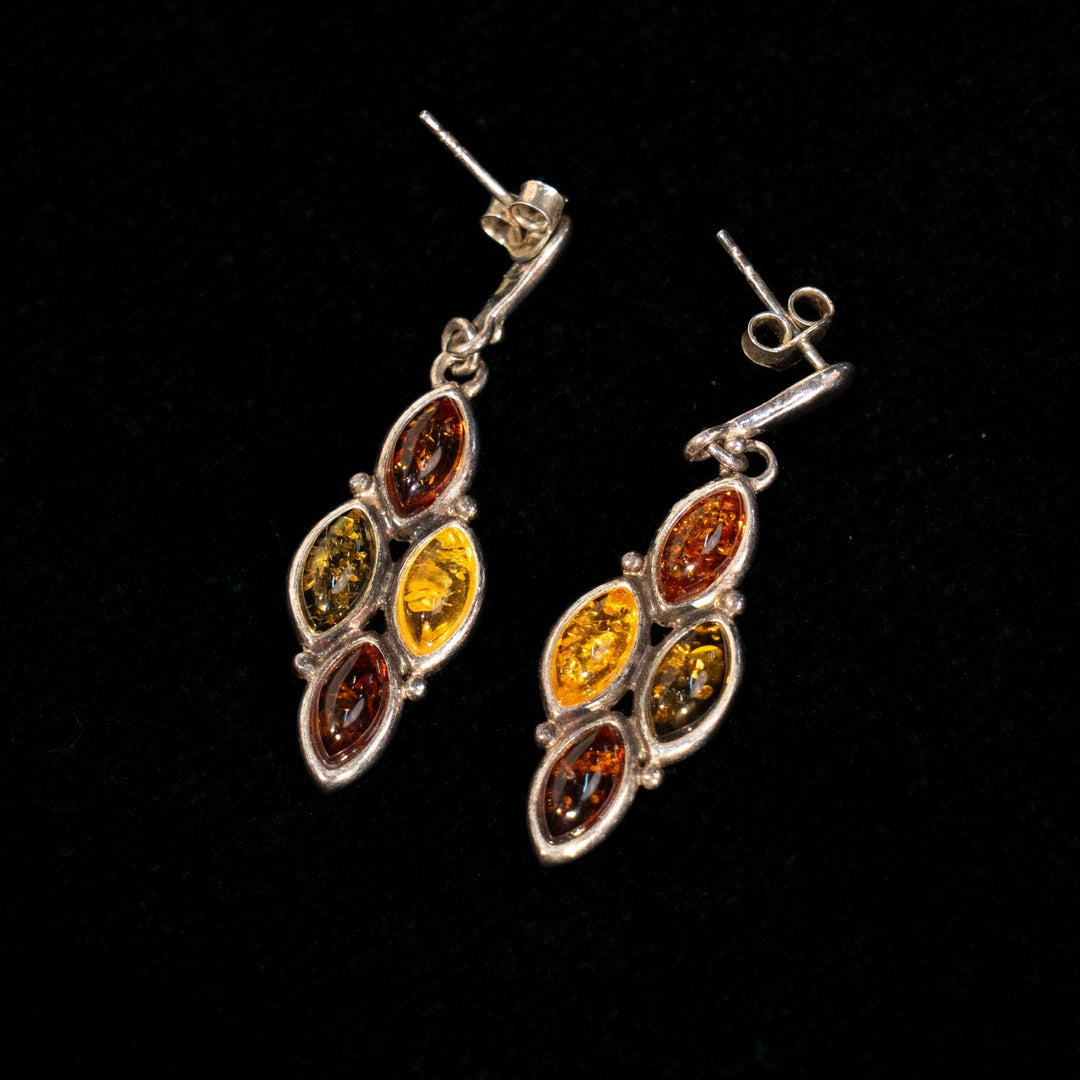 色味の違う琥珀が作り出す独特な輝き シルバー アンバー ドロップ ダングルピアス /23K