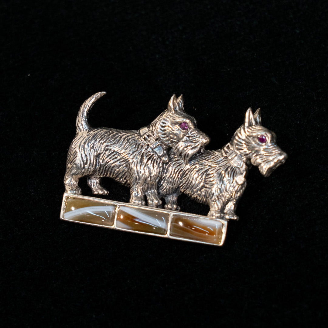 スコティッシュテリアの美しい毛並みを表現 シルバー アゲート ブローチ /23K