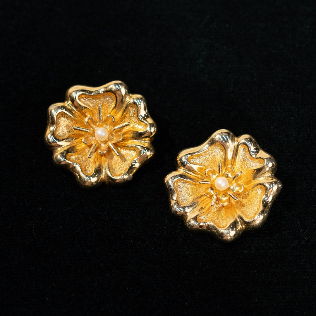 可憐なフラワーモチーフにパールがあしらわれた イヤリング /23K