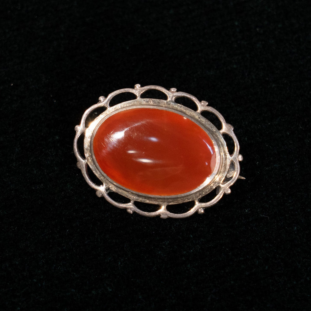 オーバル型の鮮やかな紅玉髄が印象的 シルバー カーネリアン ブローチ /23K