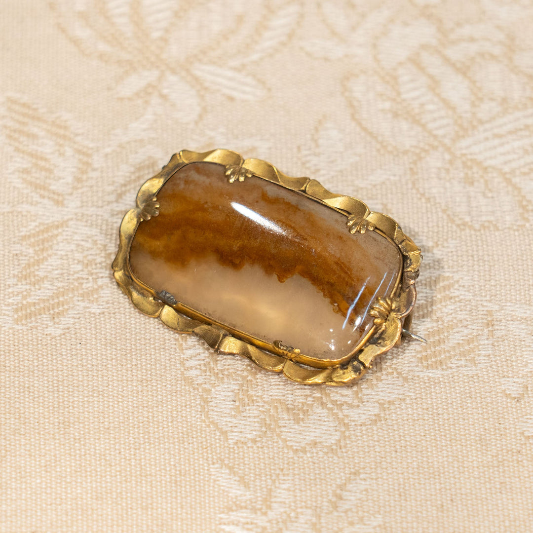 華やかなフレームに苔瑪瑙の美しい模様が映える モスアゲート ブローチ /25G