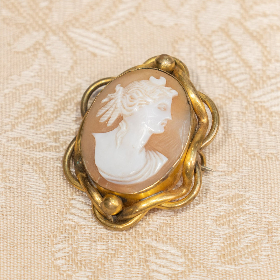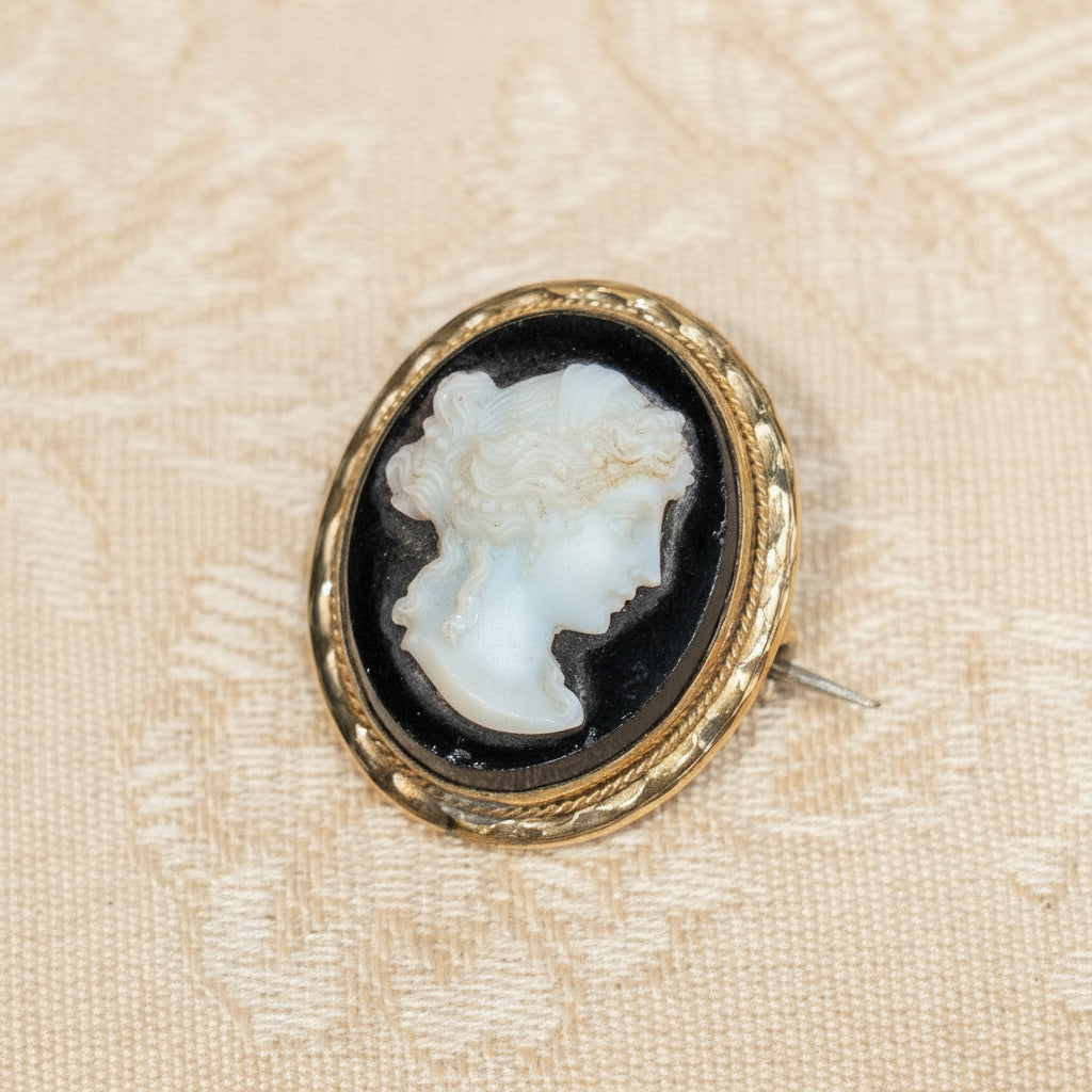 女神デメデルの横顔が美しく刻まれた ヴィクトリアンスタイル カメオブローチ /25G