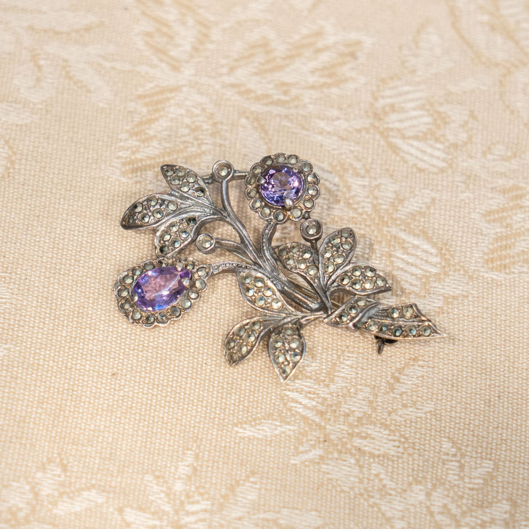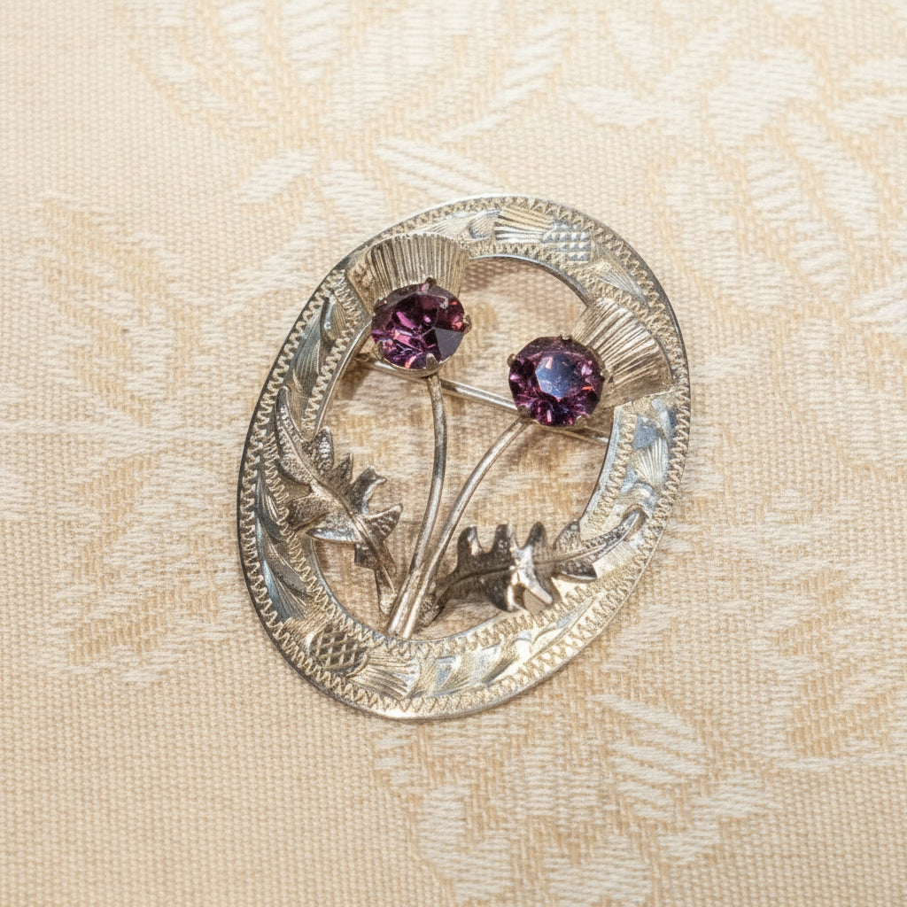 スコットランド伝統のアザミモチーフが美しく輝く シルバー アメジスト ブローチ /25G