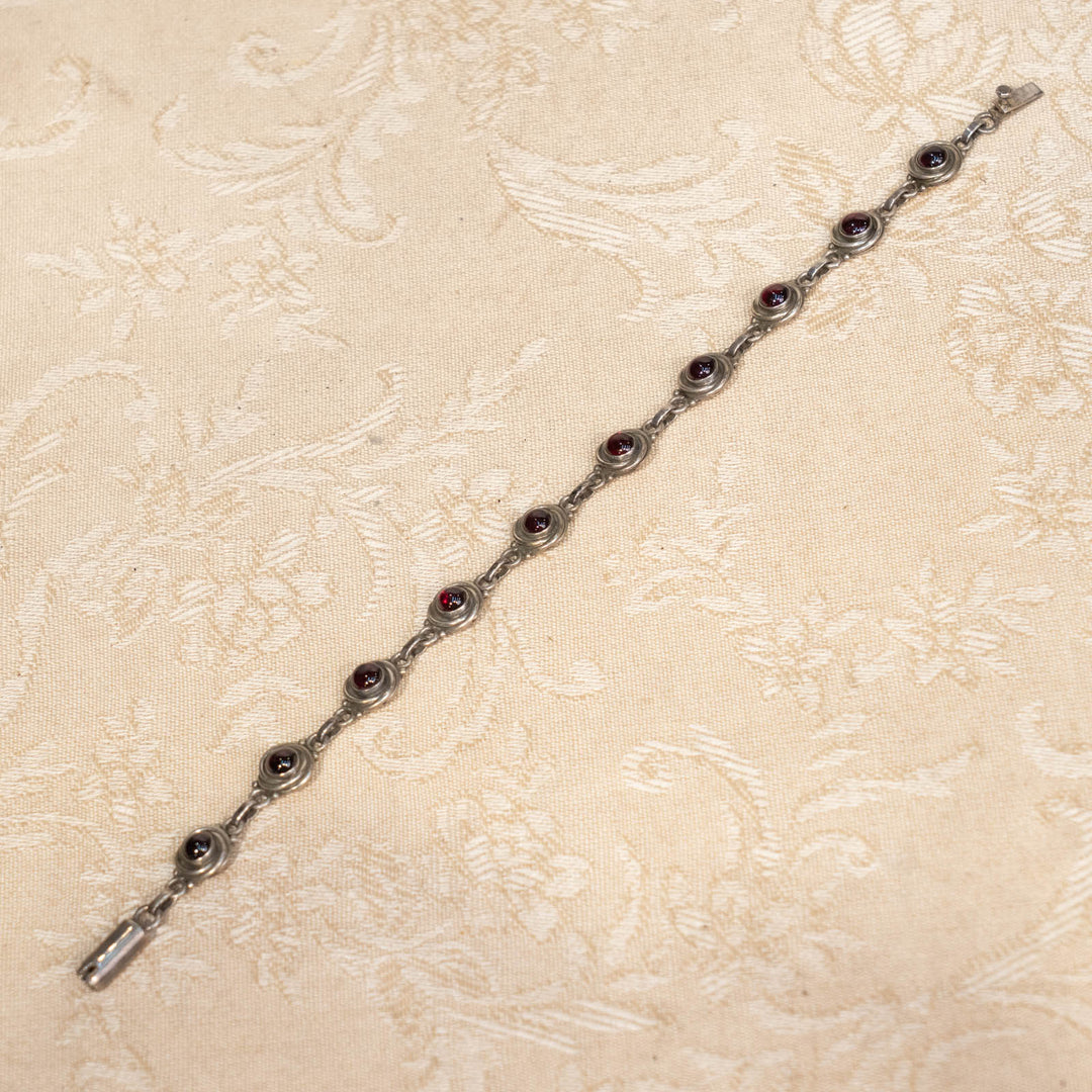 幻想的な深紅の柘榴石が華やか シルバー ガーネット ブレスレット /25G