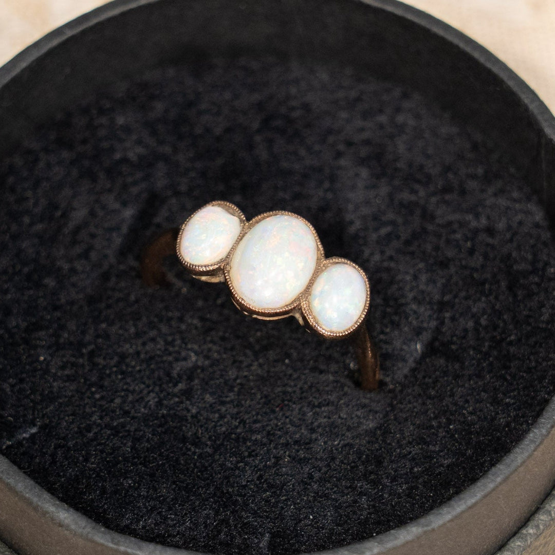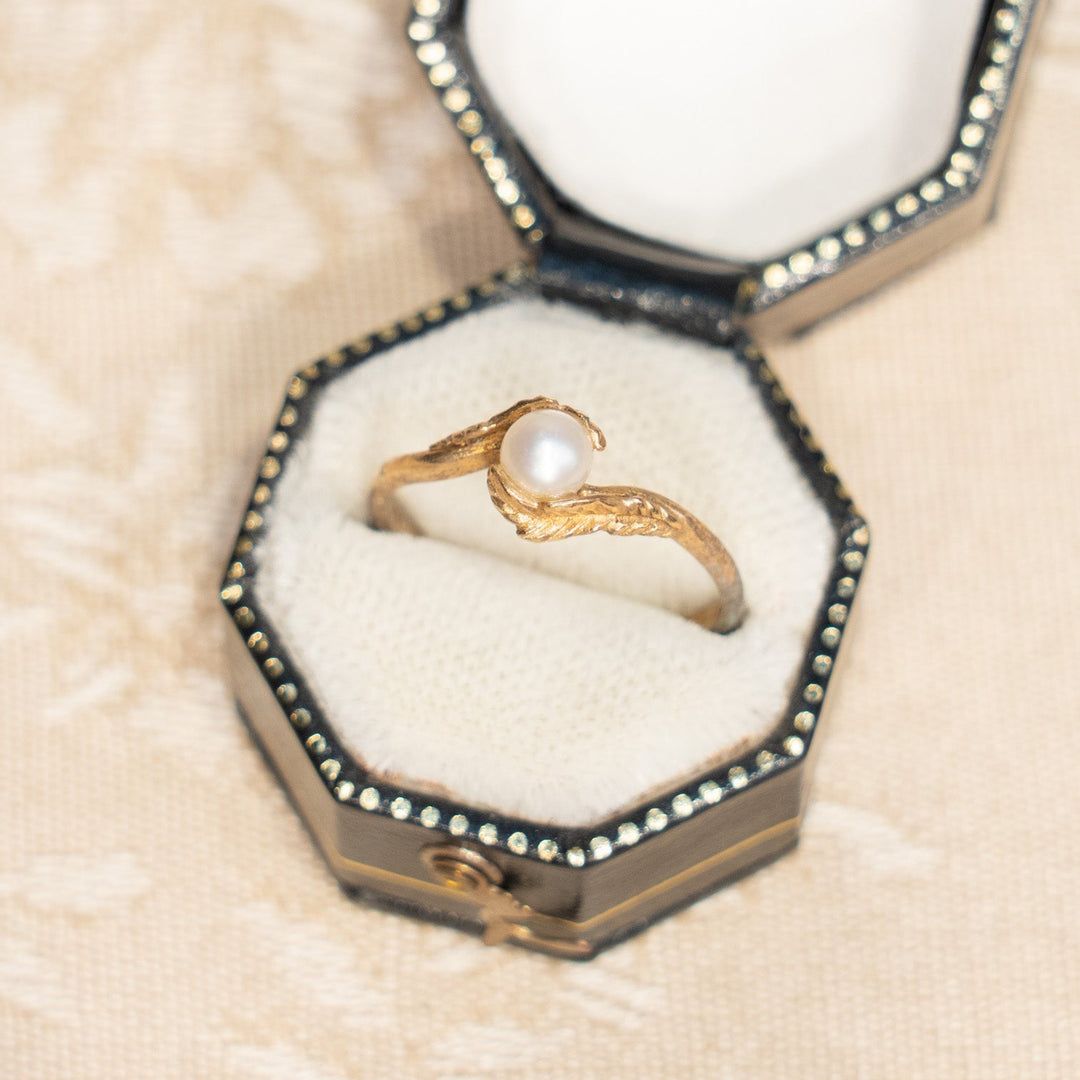 一粒パールに曲線の葉のモチーフがエレガント アンティークリング /25G