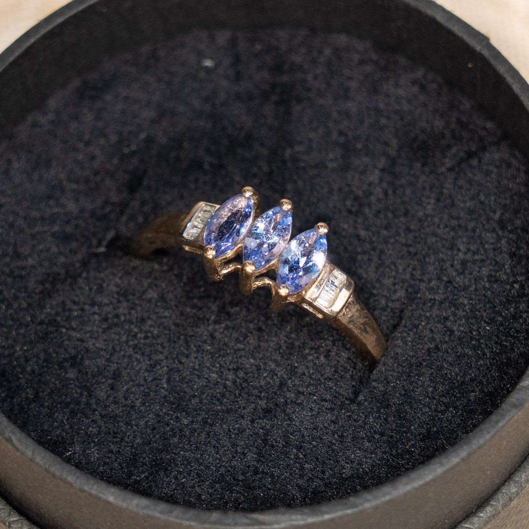 ボリューム感ある豪華なデザイン タンザナイト アンティークリング /25G