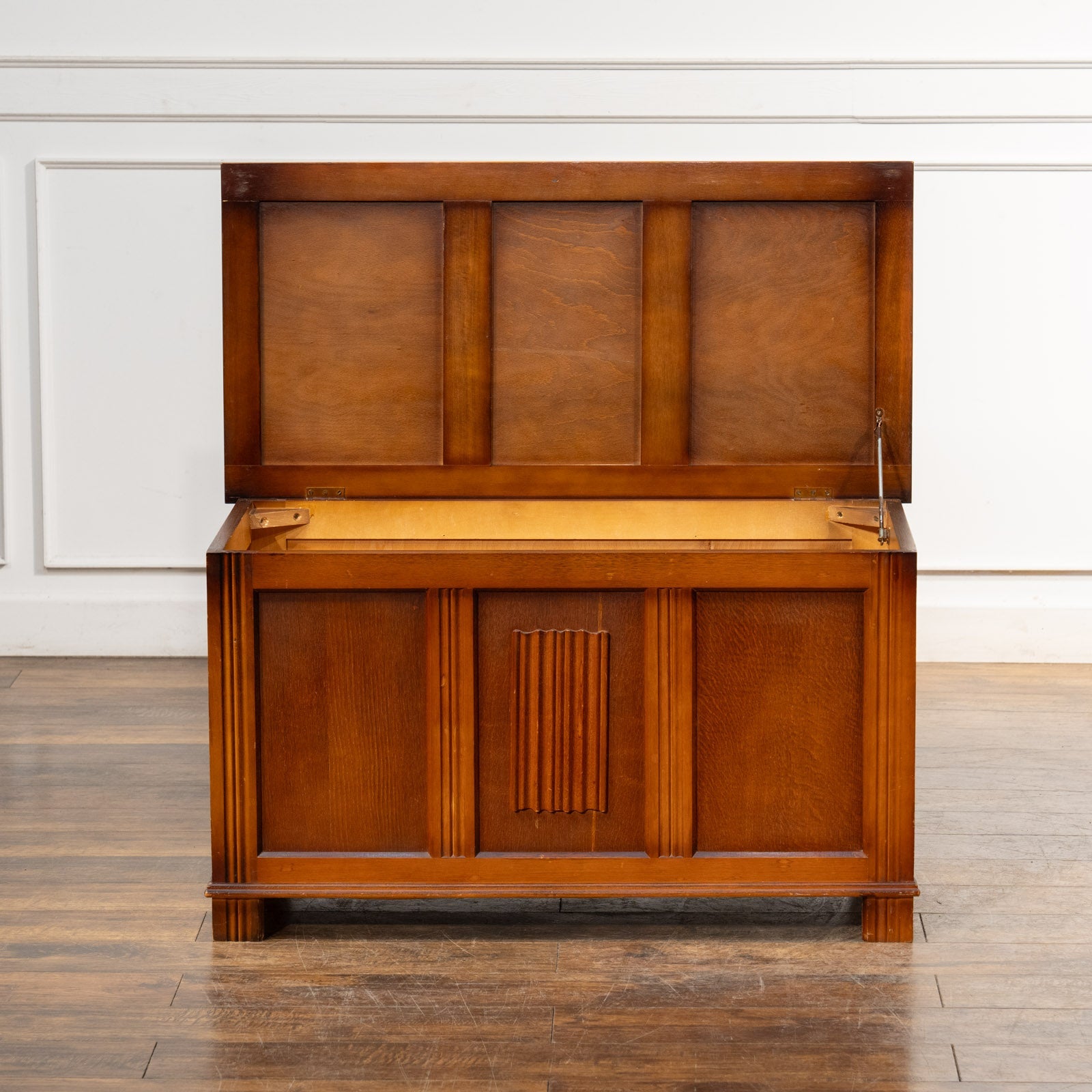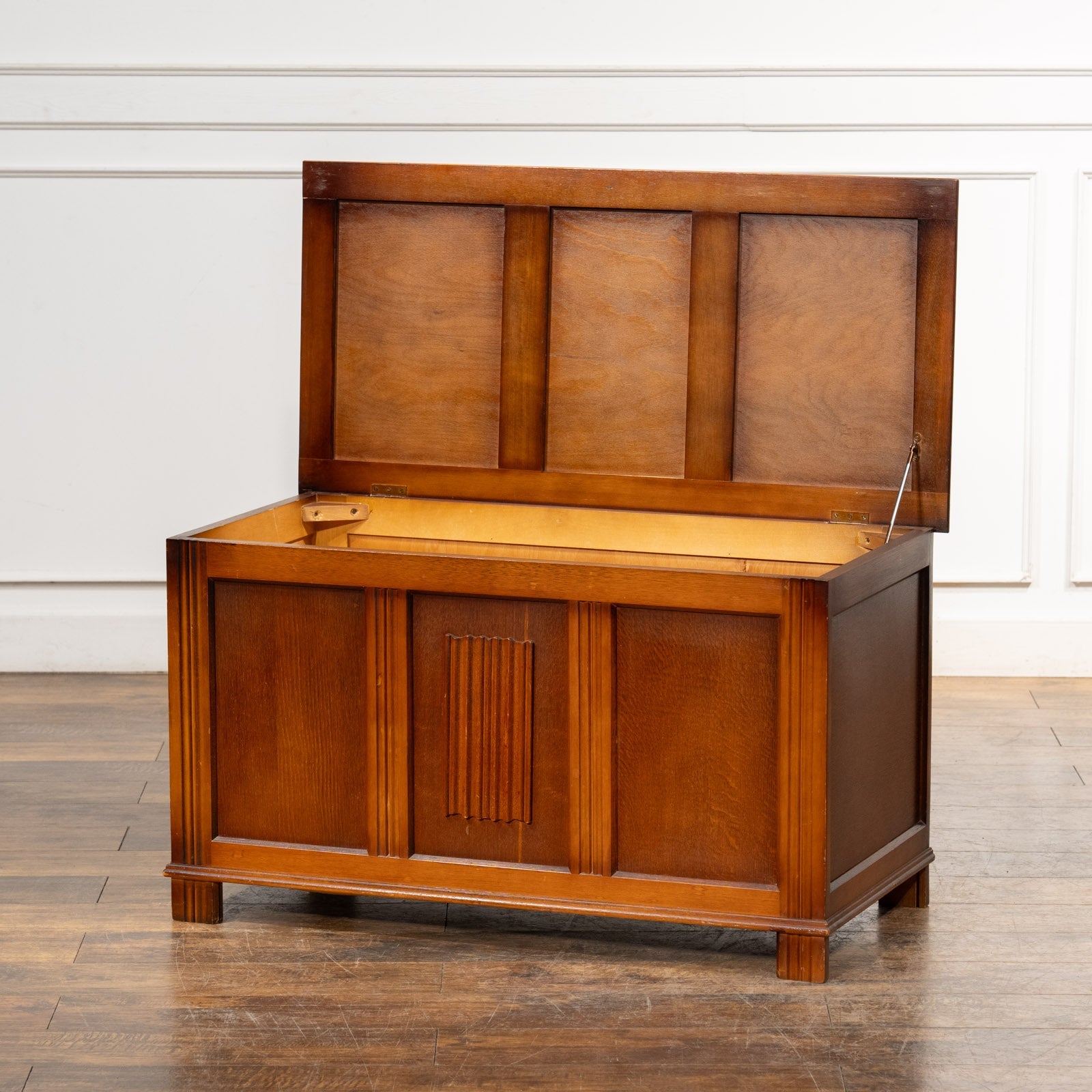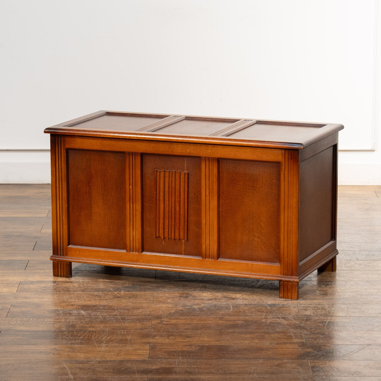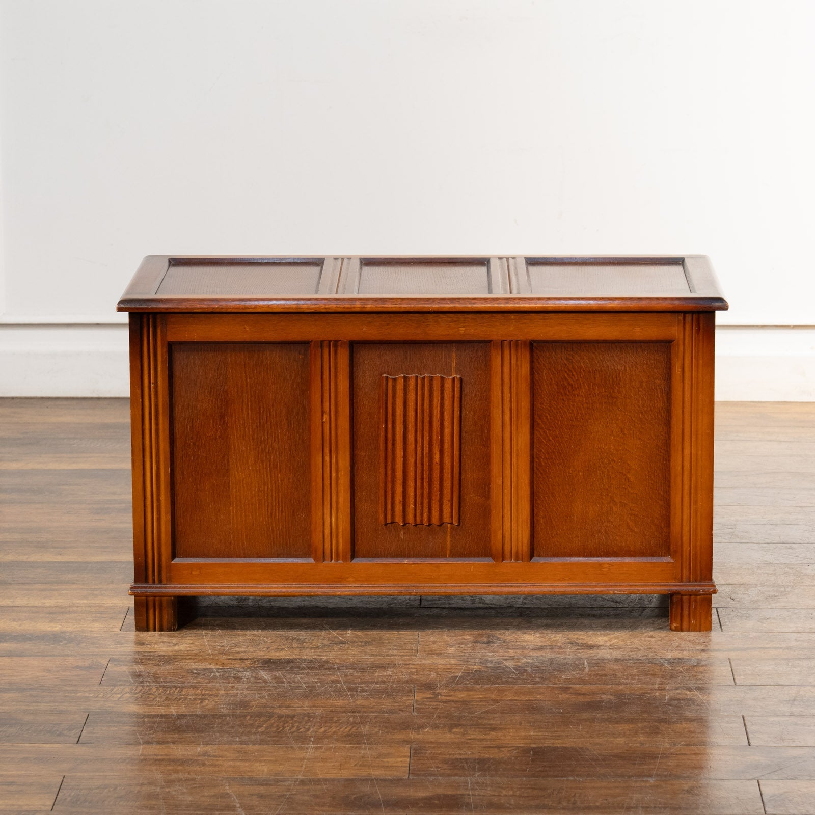 味わい深いオーク材で作られた、コファーやブランケットボックスと呼ばれる収納付きのベンチです。