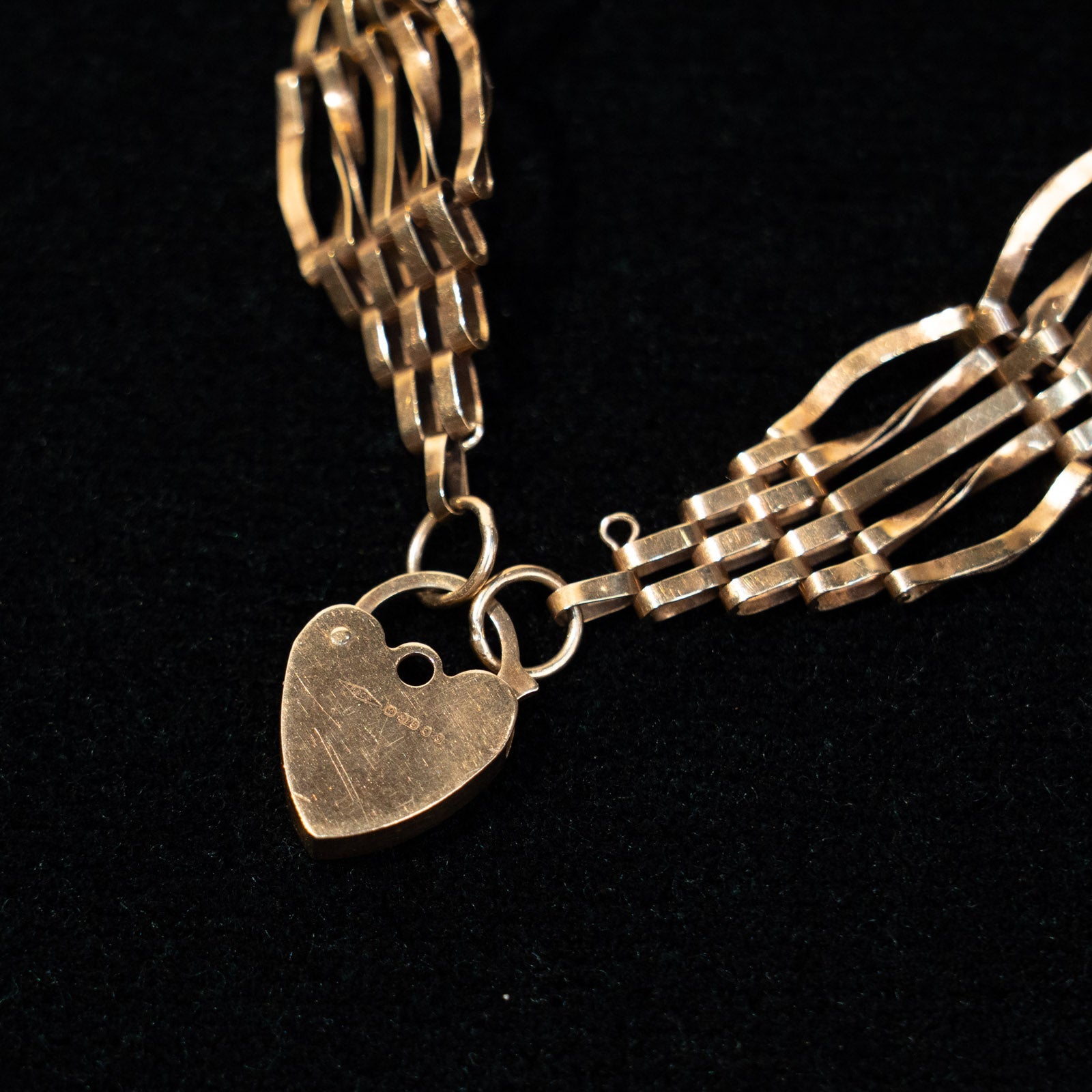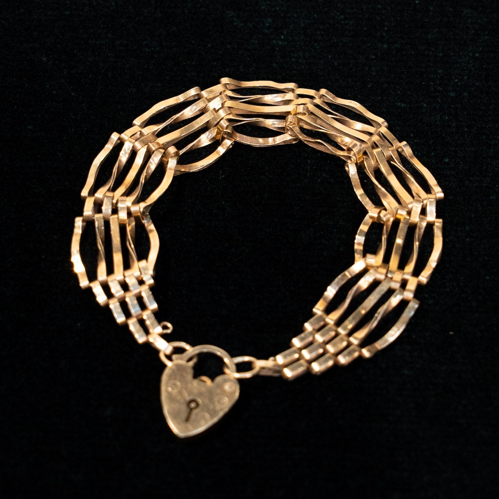 こちらはイギリスから買付けた、ハート型のパドロック(南京錠)をモチーフにした留め具が印象的なゲートブレスレットです。