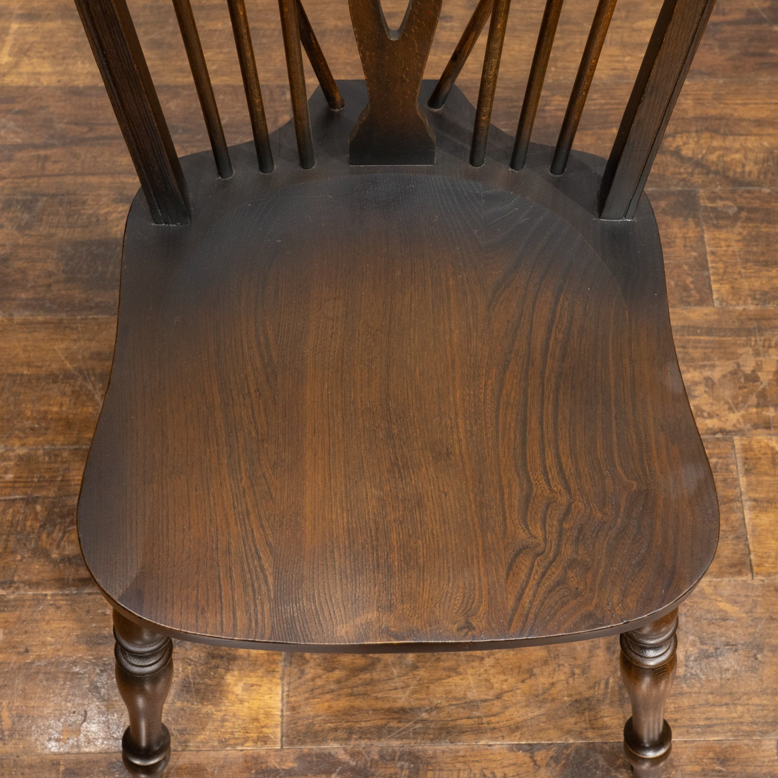 こちらはイギリスから買付けた、エルム材やビーチ材を使った木の風合いが素敵なホイールバックのキッチンチェアです。