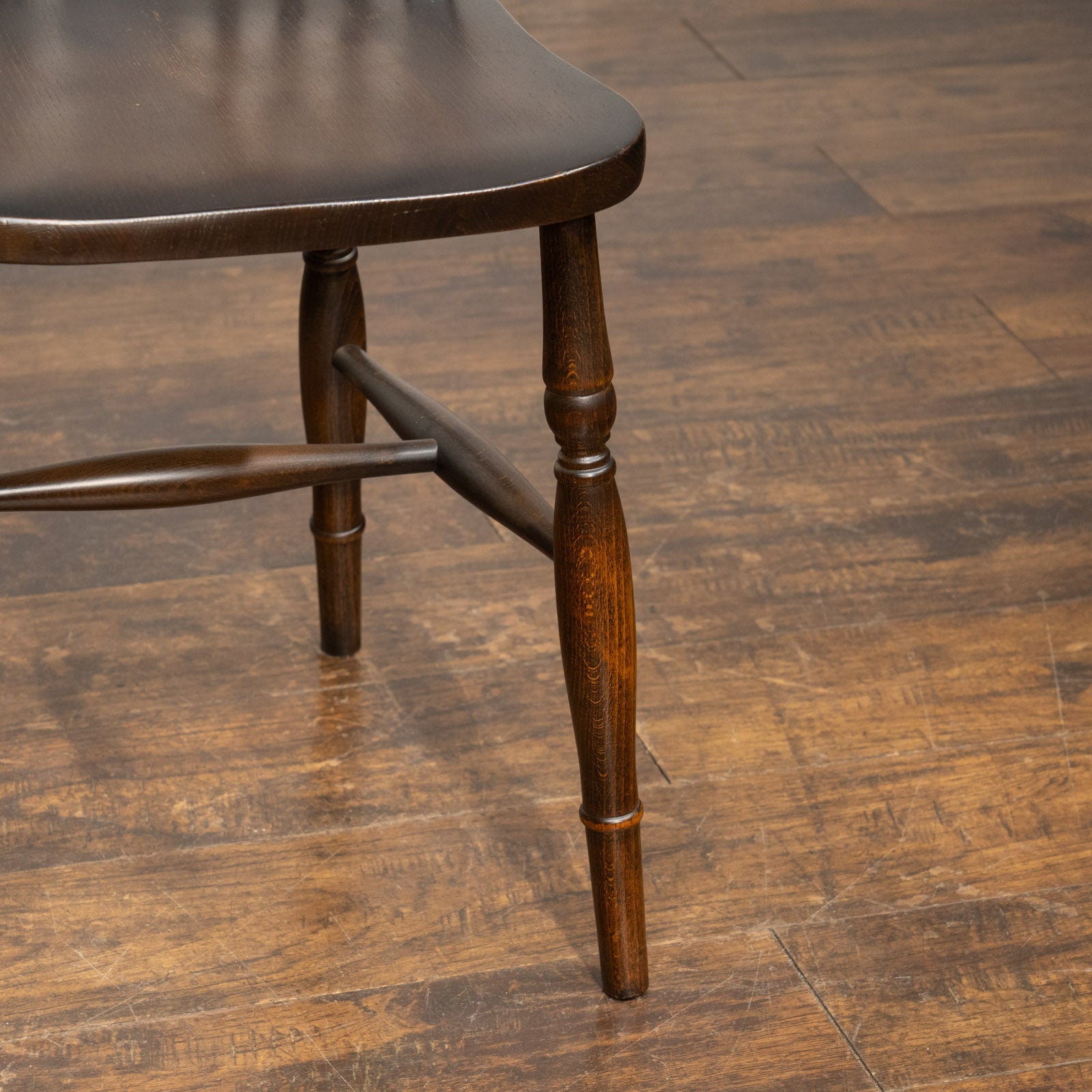 こちらはイギリスから買付けた、エルム材やビーチ材を使った木の風合いが素敵なホイールバックのキッチンチェアです。