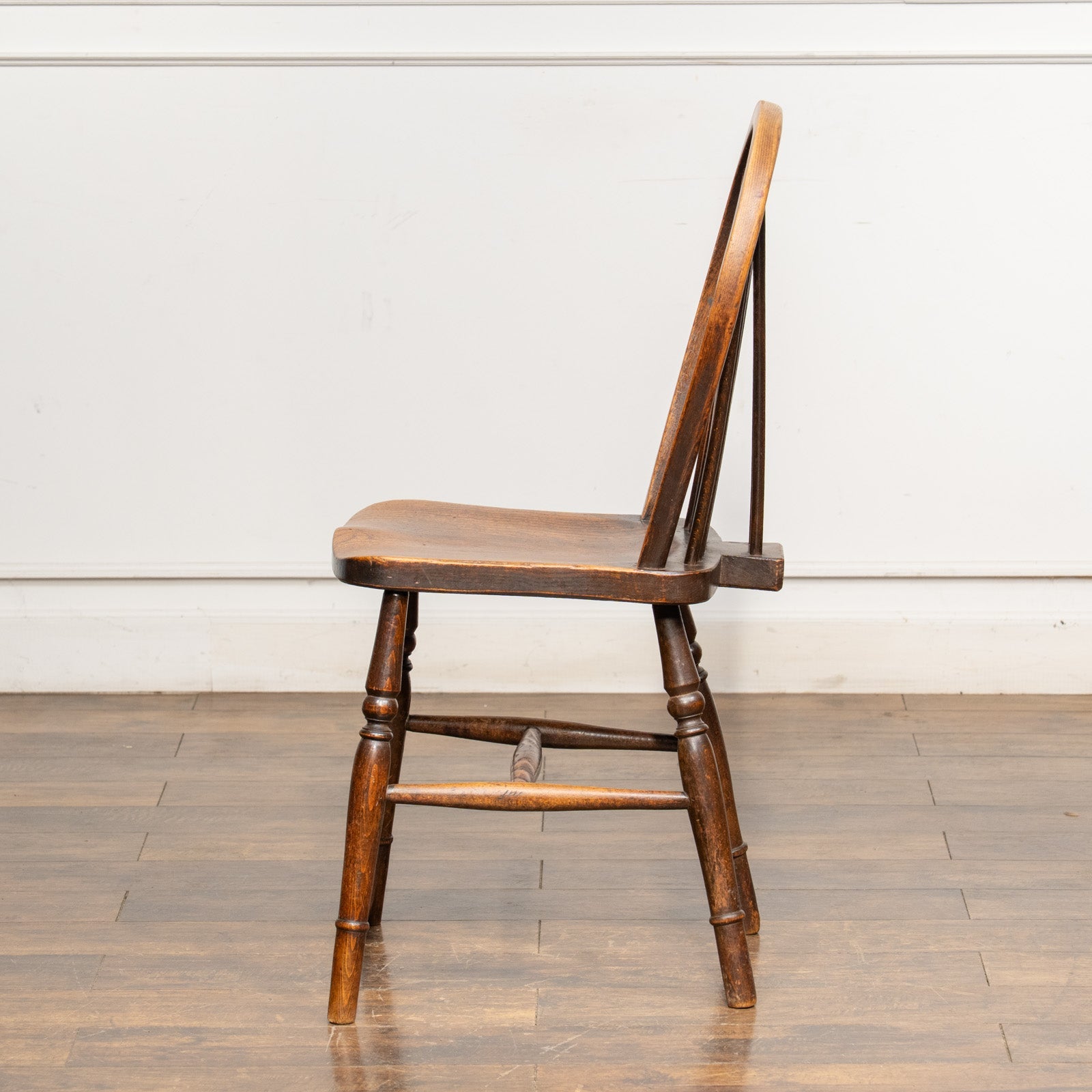 こちらはイギリスから買付けた、エルム材やビーチ材を使った木の風合いが素敵なホイールバックのキッチンチェアです。
