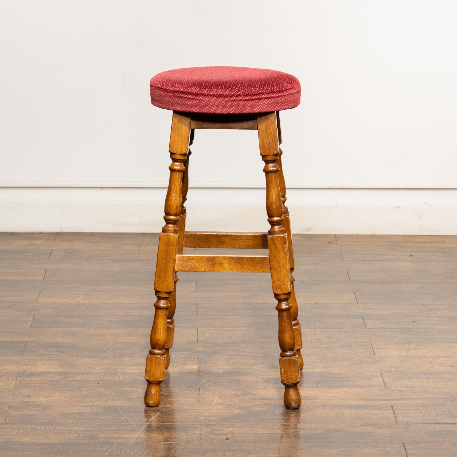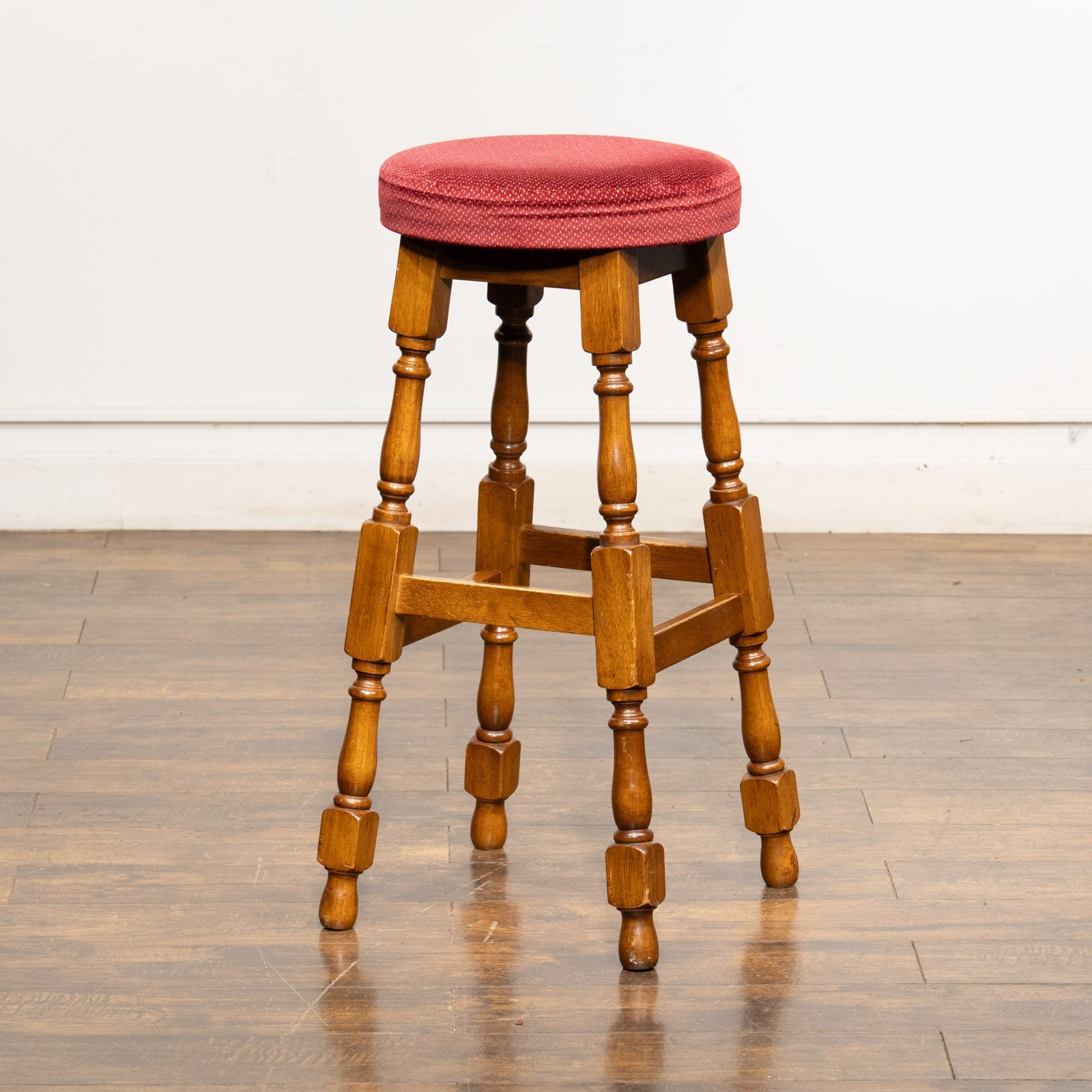 こちらはイギリスから買付けた、クラシカルな挽き物装飾が施されたバースツールです。