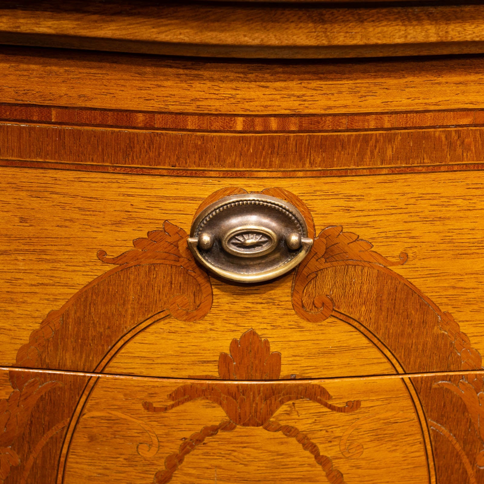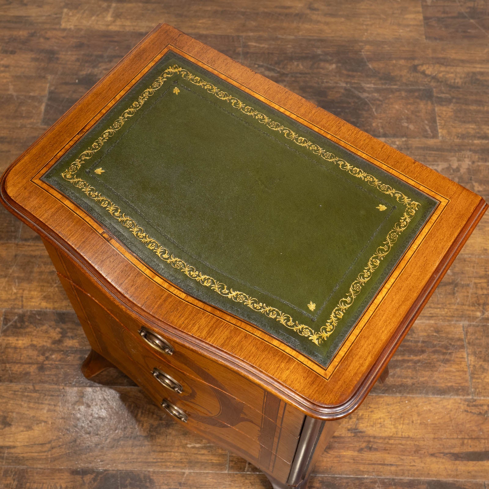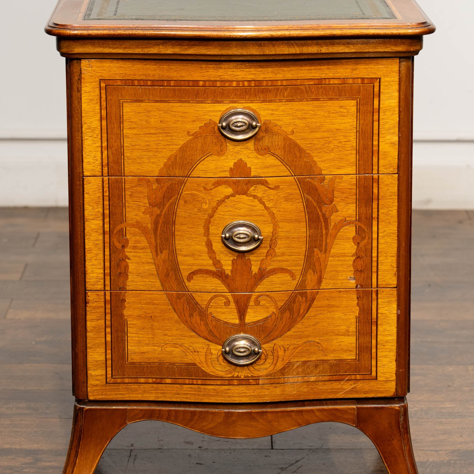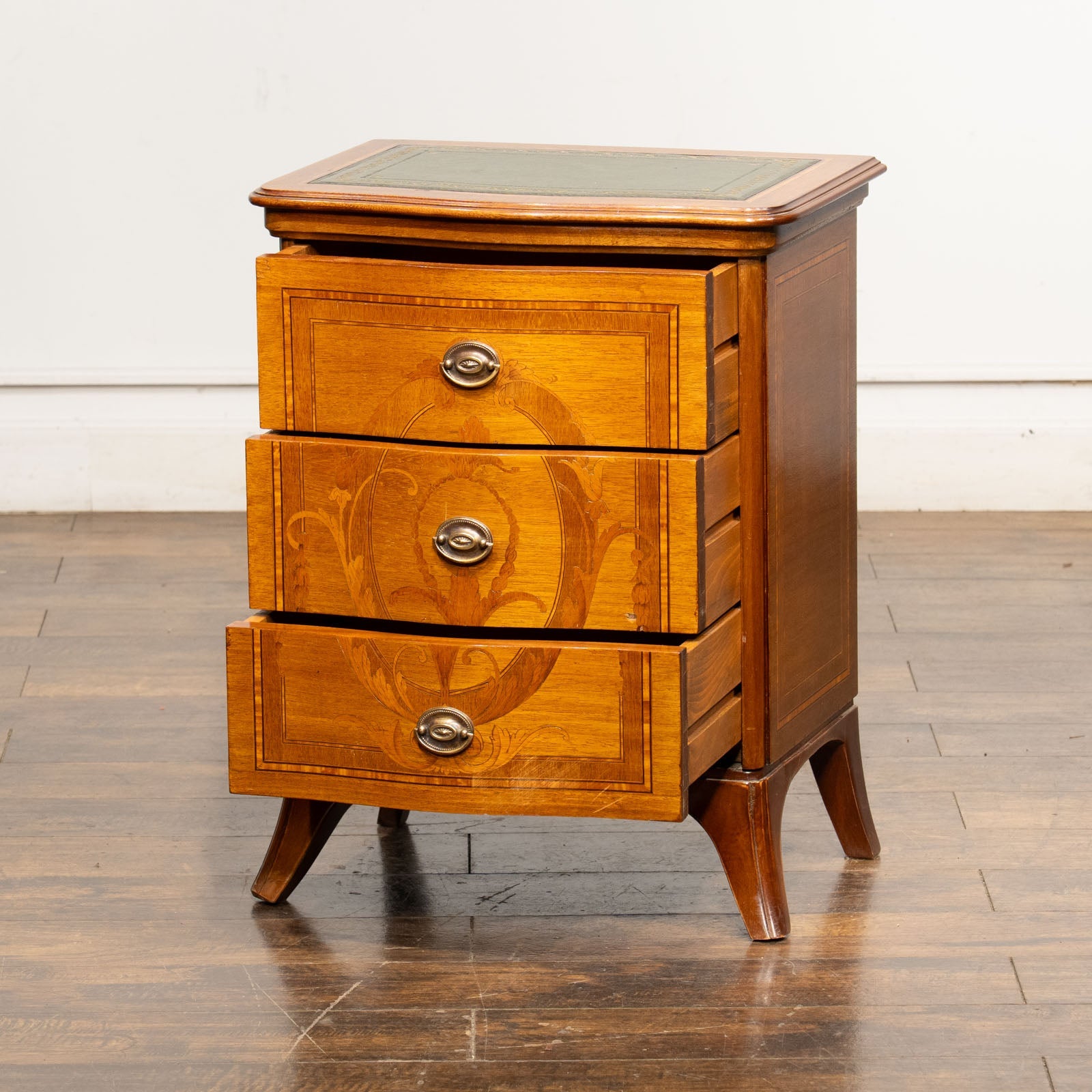 こちらイギリスから買付けた、フロントの美しいインレイ(象嵌細工)が目を惹くベッドサイドチェストです。