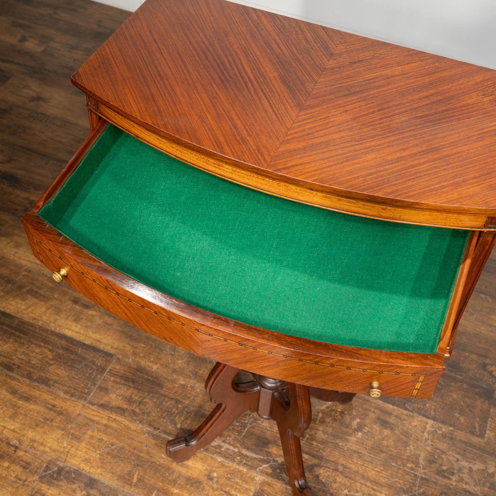 フロントのストリンギングと呼ばれる線象嵌が美しく、パーケトリーの装飾をより上品に見せてくれます。