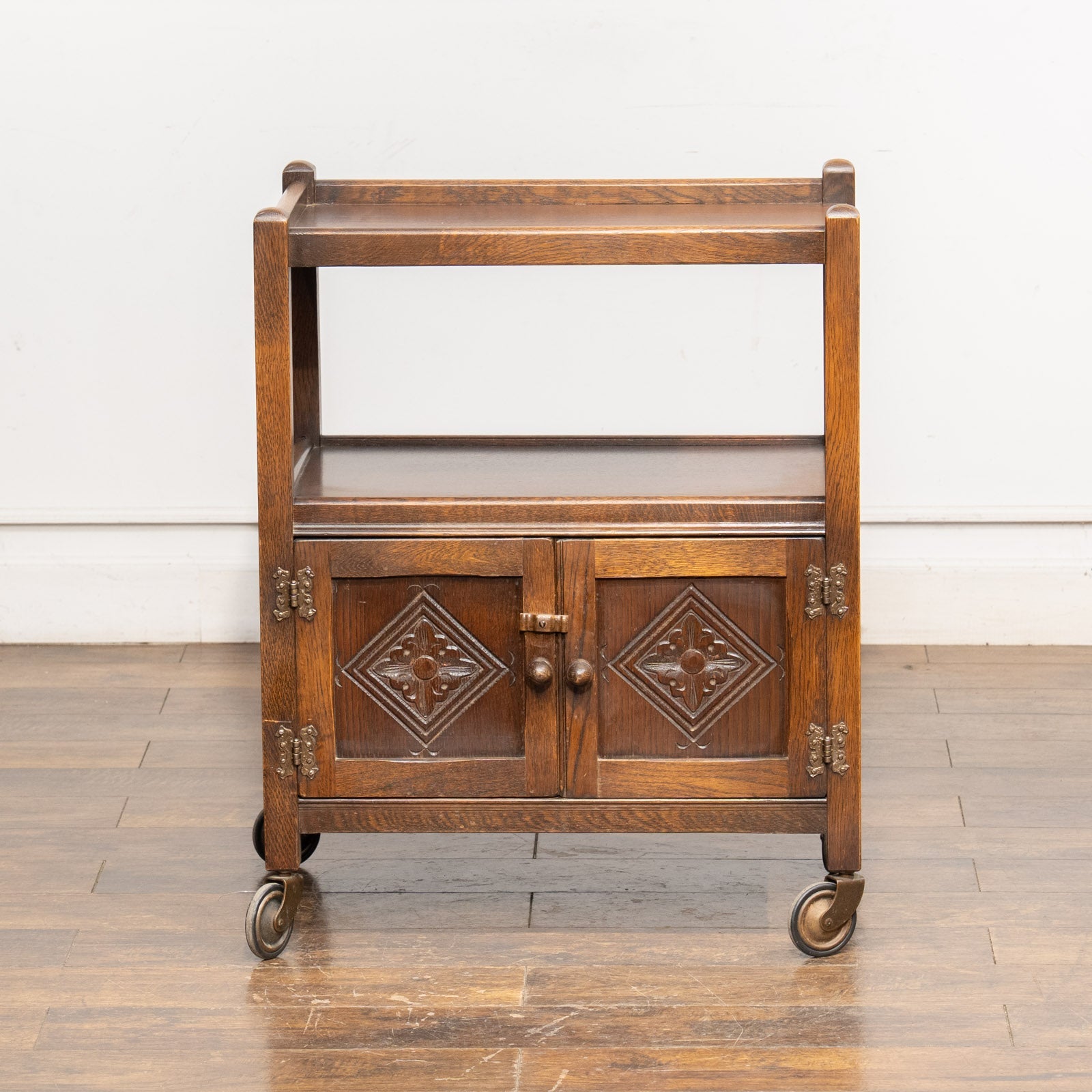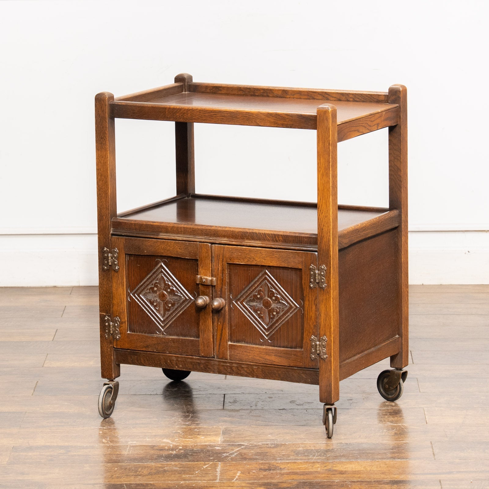 こちらはイギリスから買付けた、味わい深いオーク材が使われたティートローリーです。