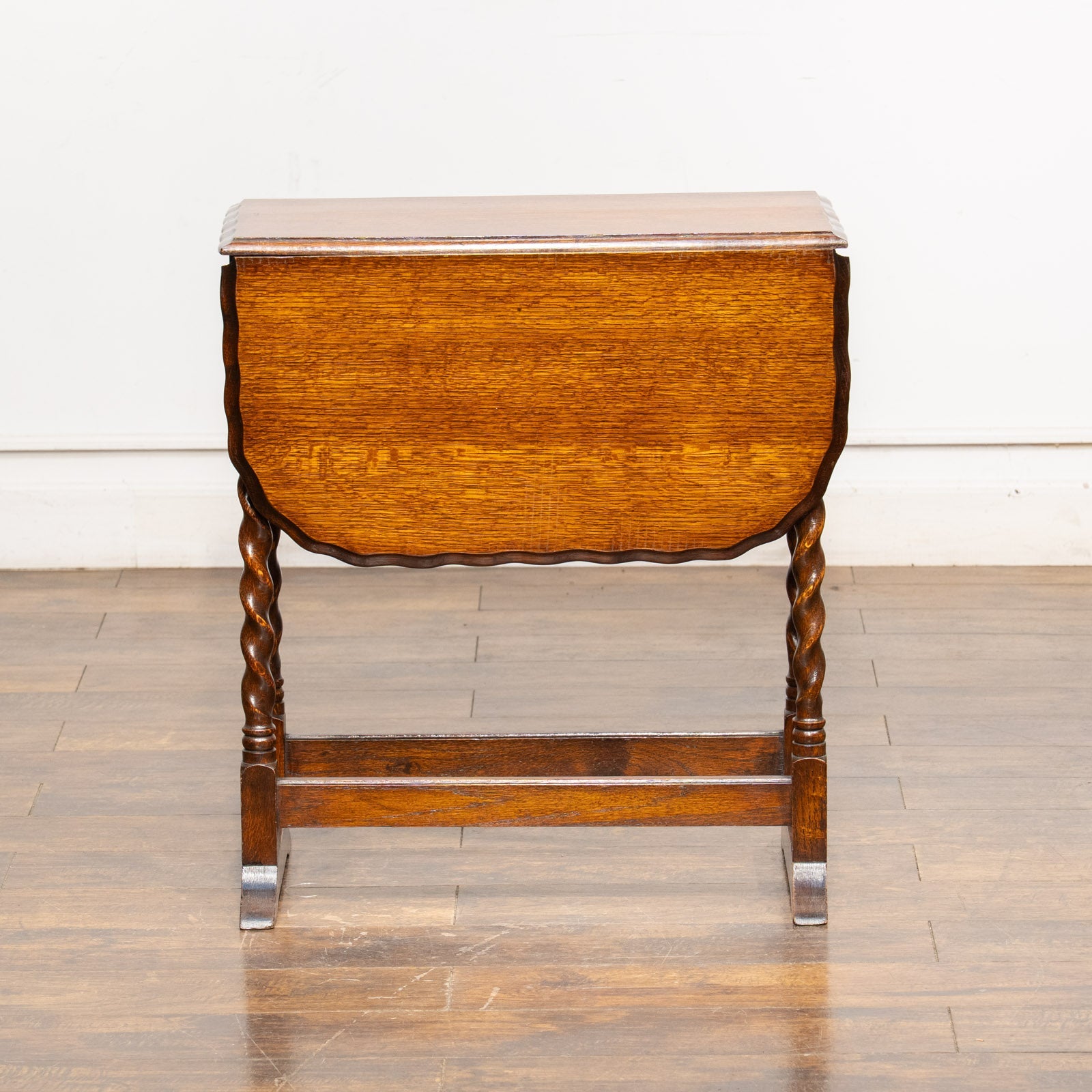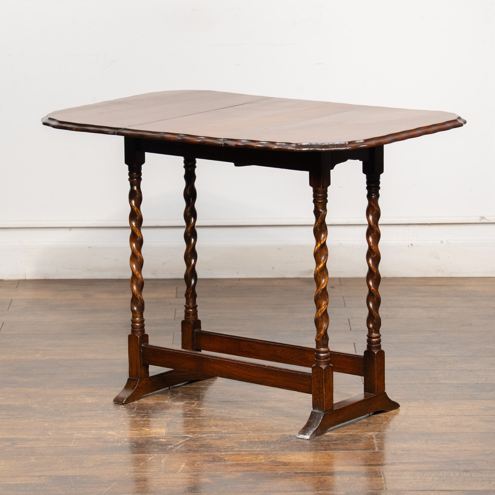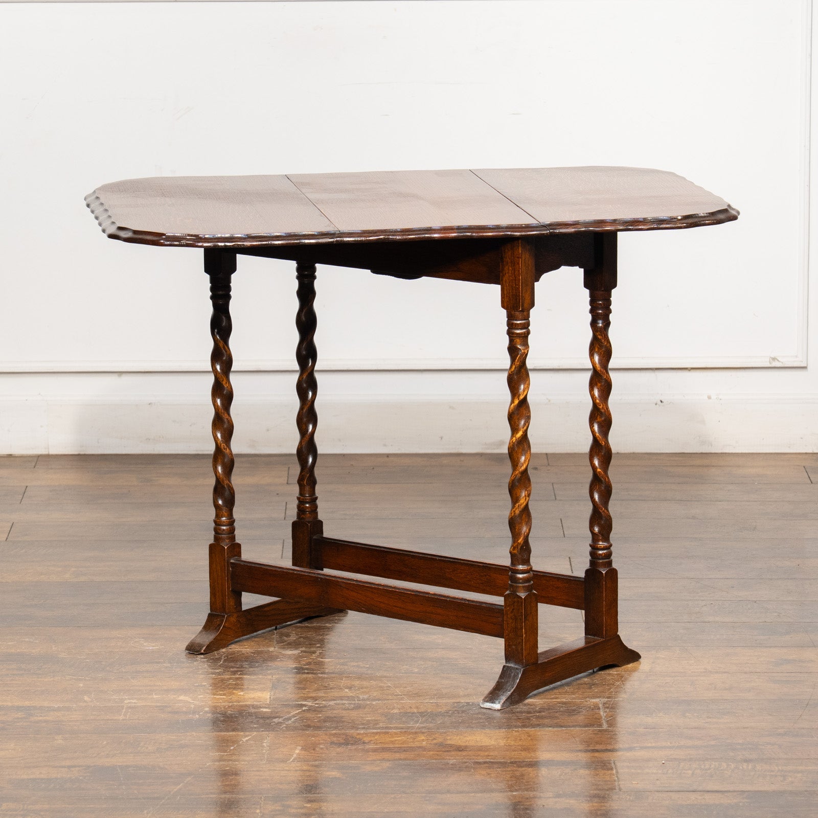 こちらはイギリスから買付けた、天板を90度回転させることで開いたり閉じたりできるドロップリーフテーブルです。