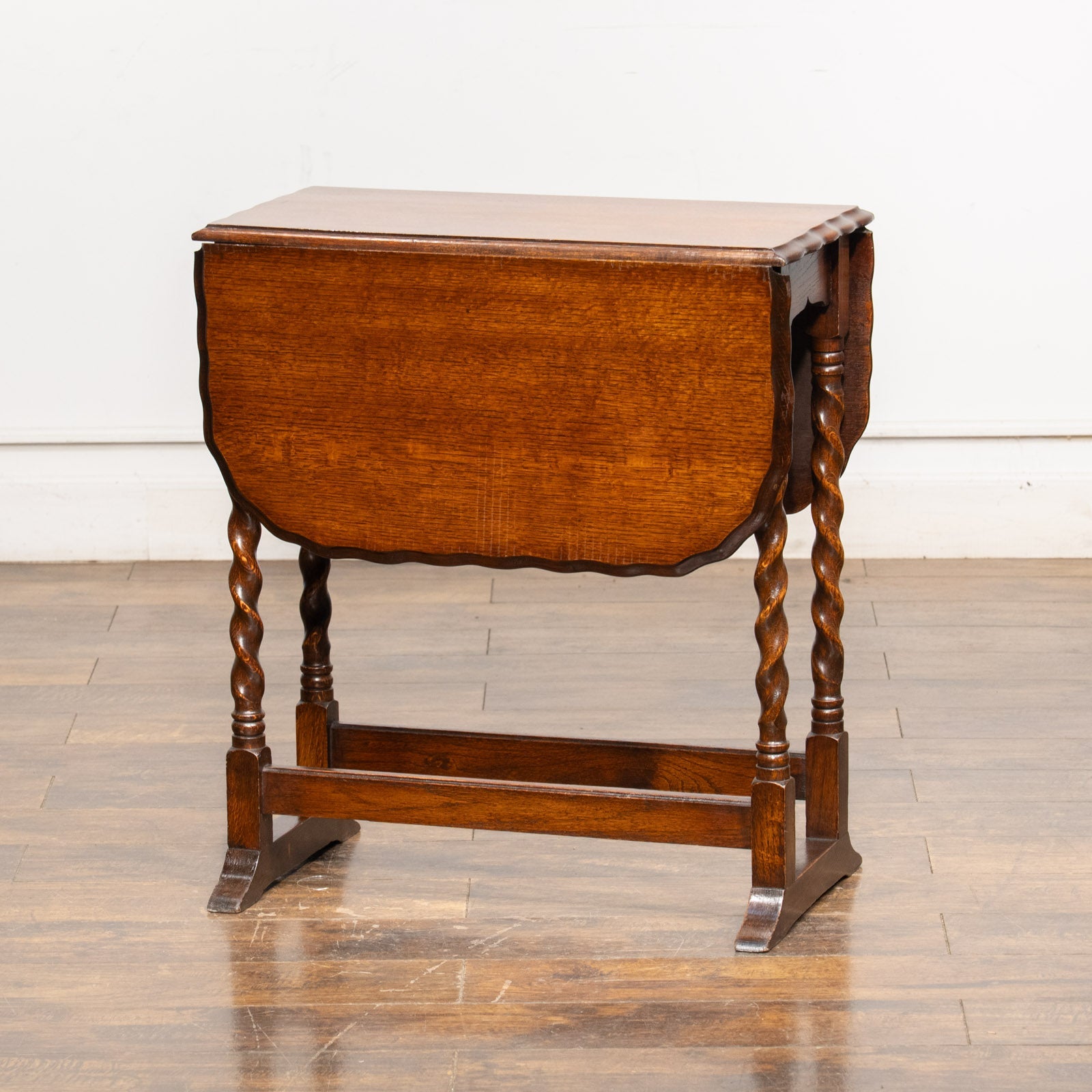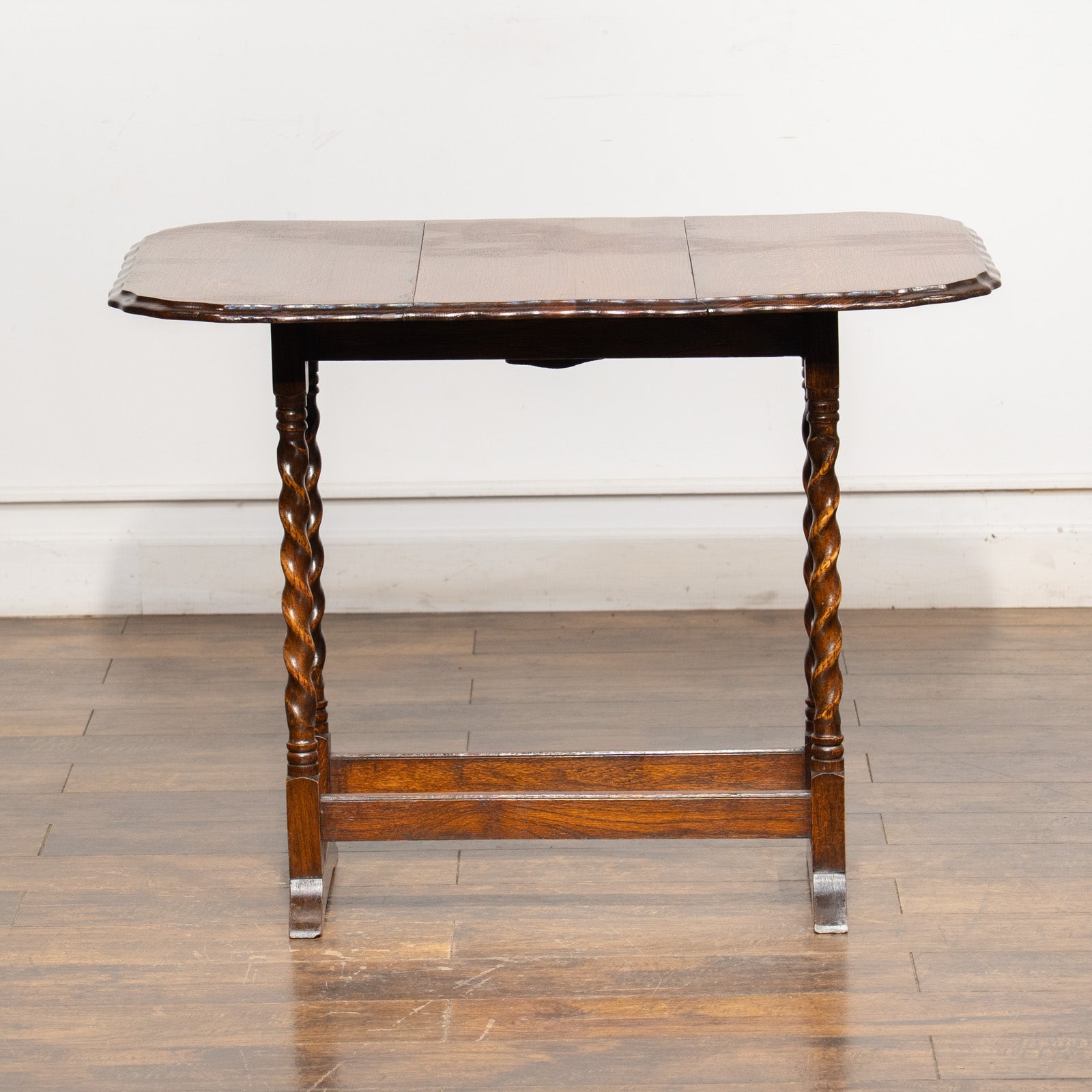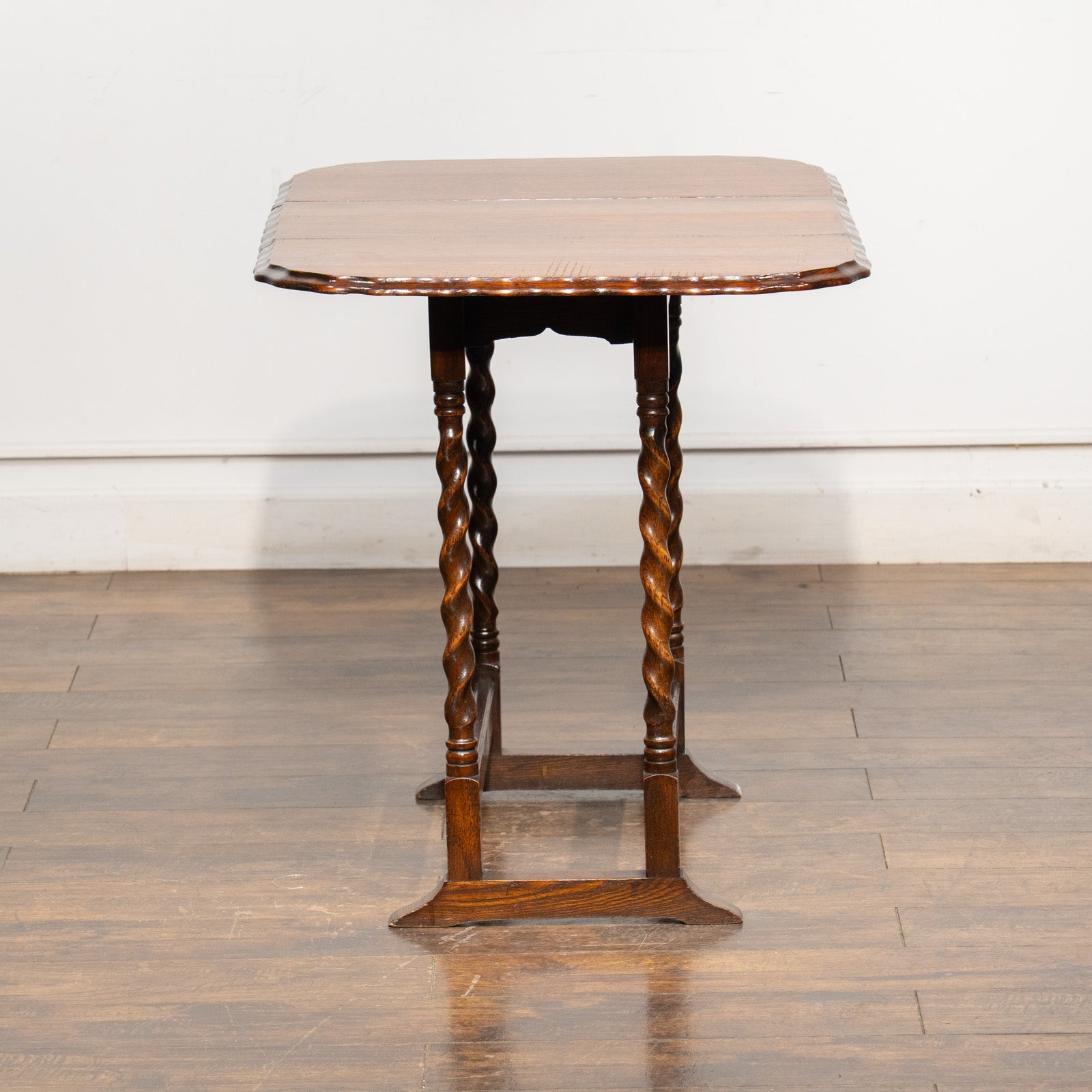 こちらはイギリスから買付けた、天板を90度回転させることで開いたり閉じたりできるドロップリーフテーブルです。