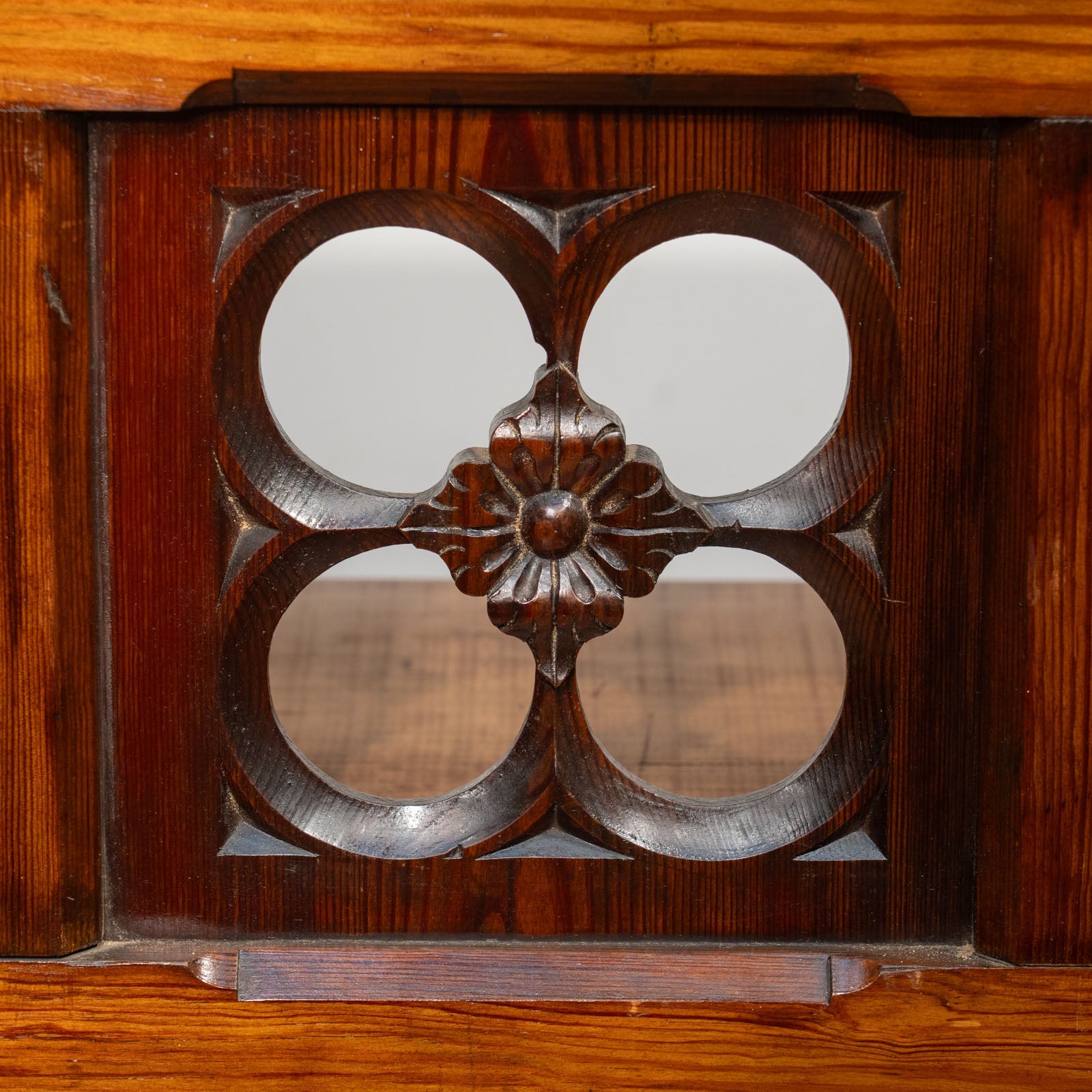 教会などで使用されていたもので、クアトレフォイル(四つ葉)と花模様が並んだ装飾が目を惹きます。
