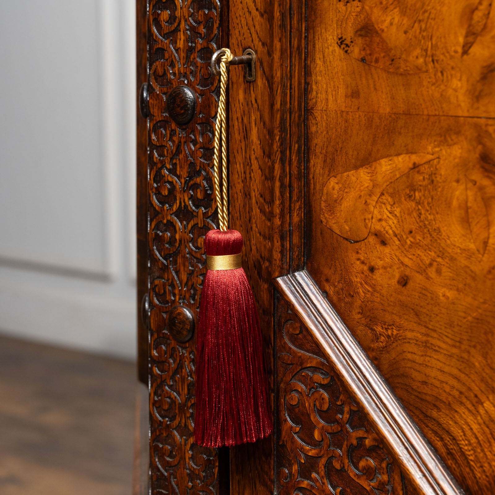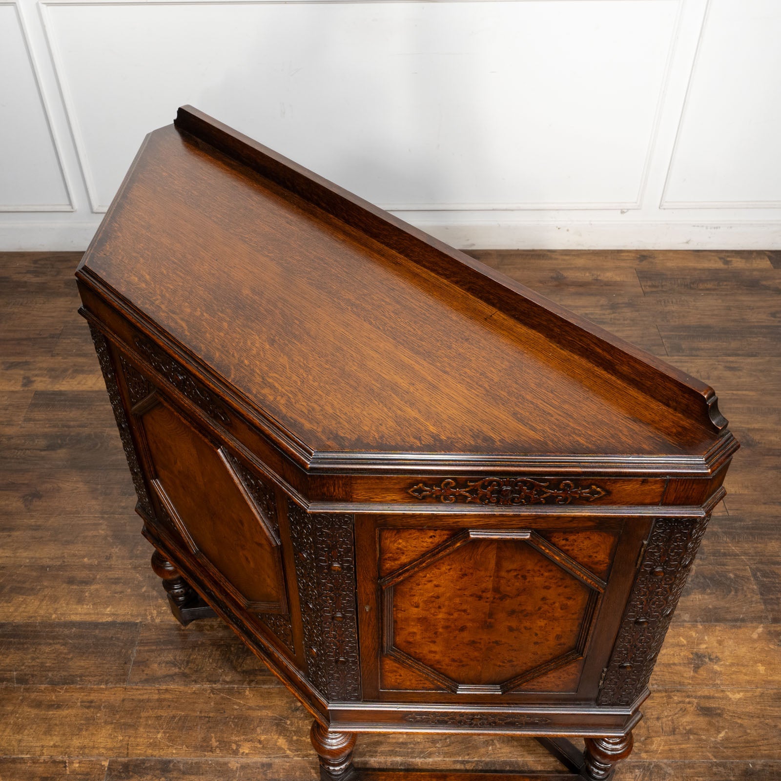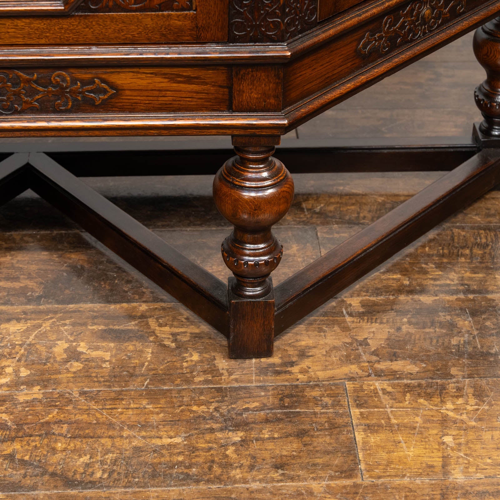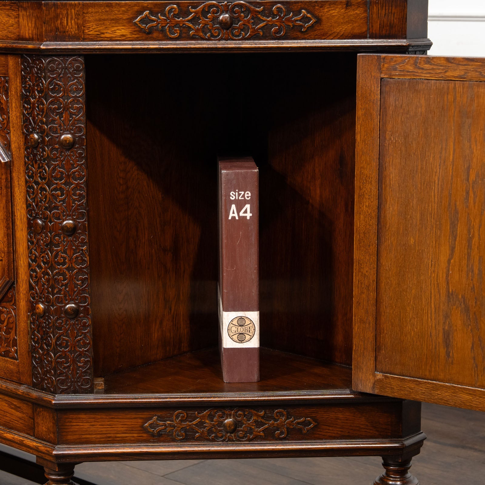 リビングやダイニングの収納兼飾り棚として活躍する、アンティークならではの風合いと職人技が光る逸品です。