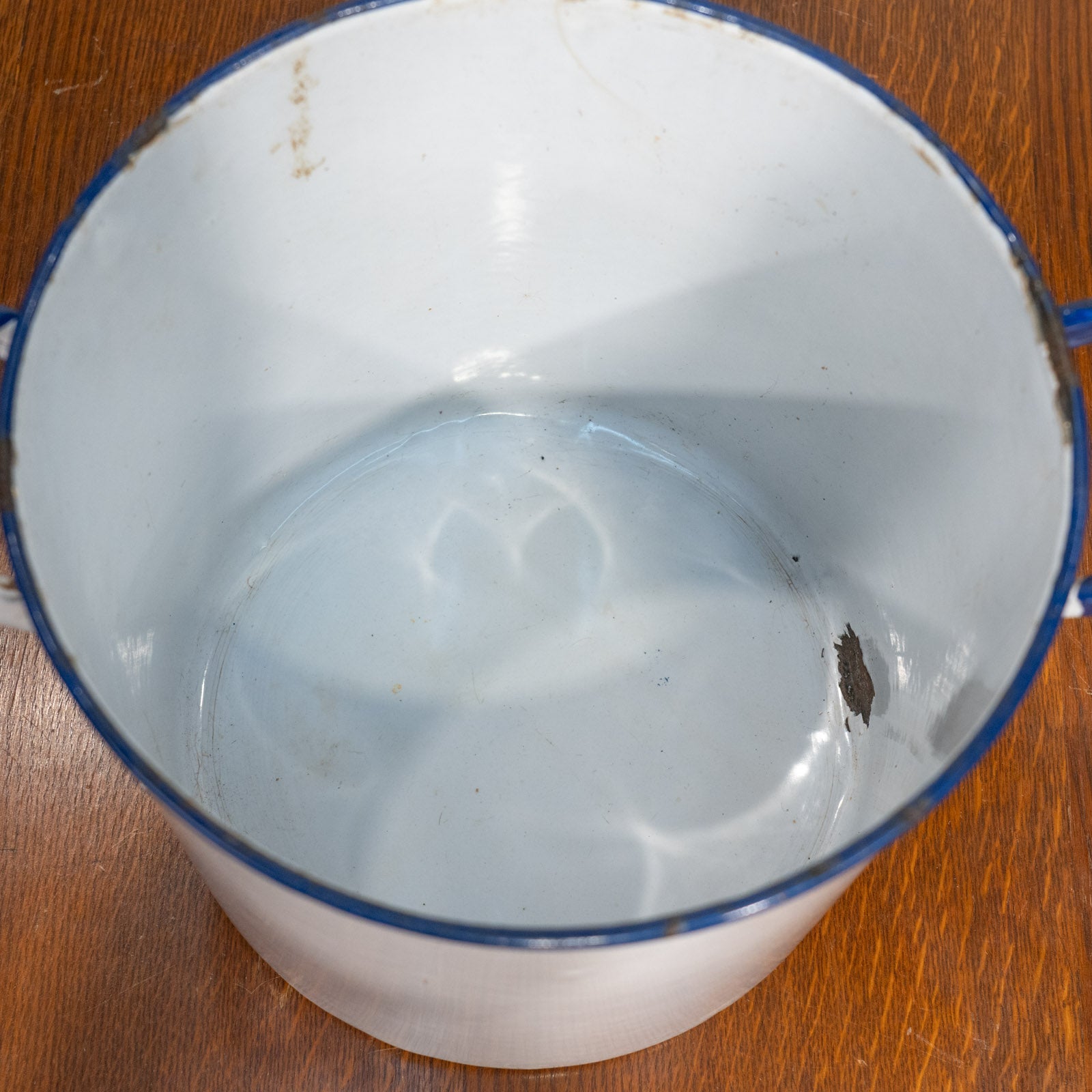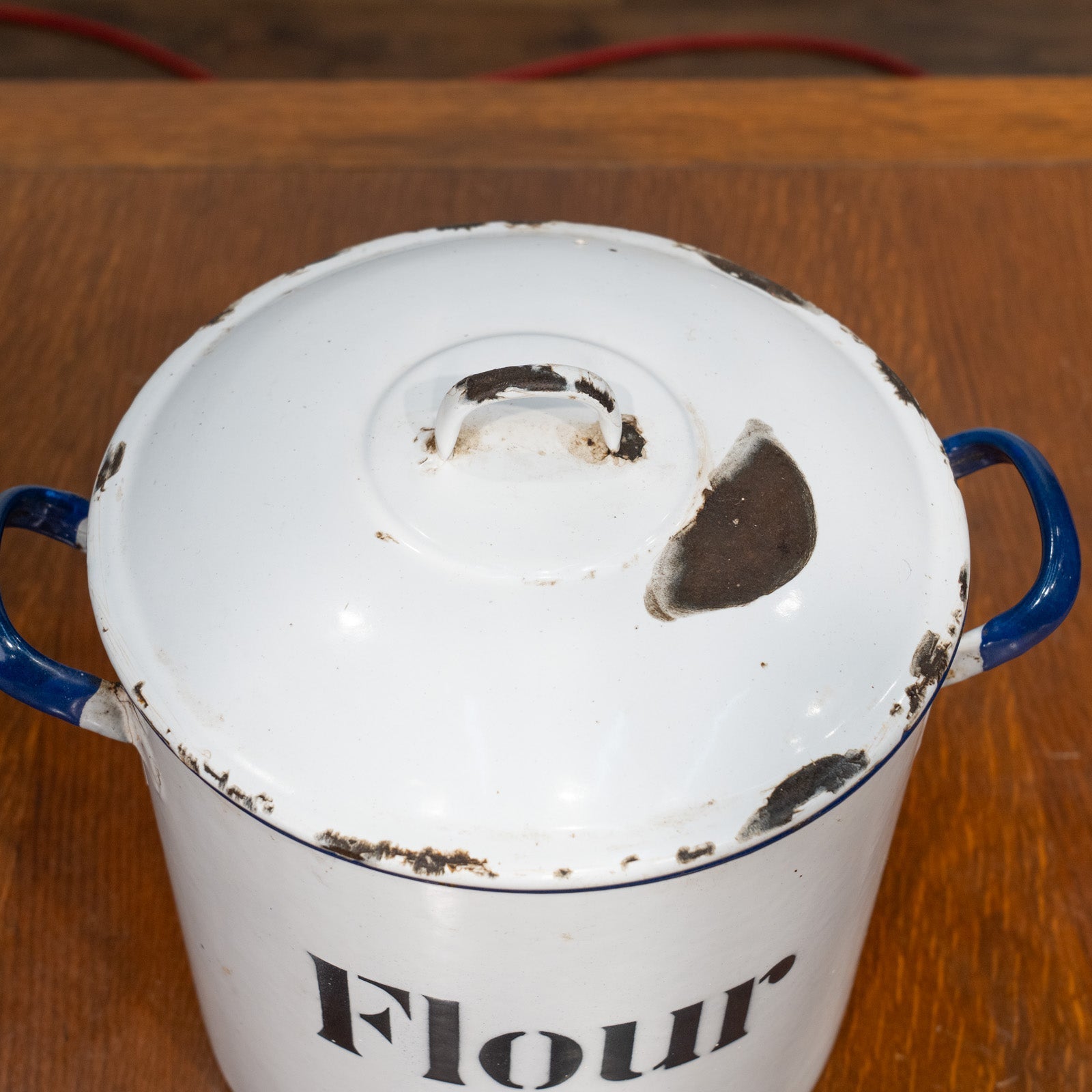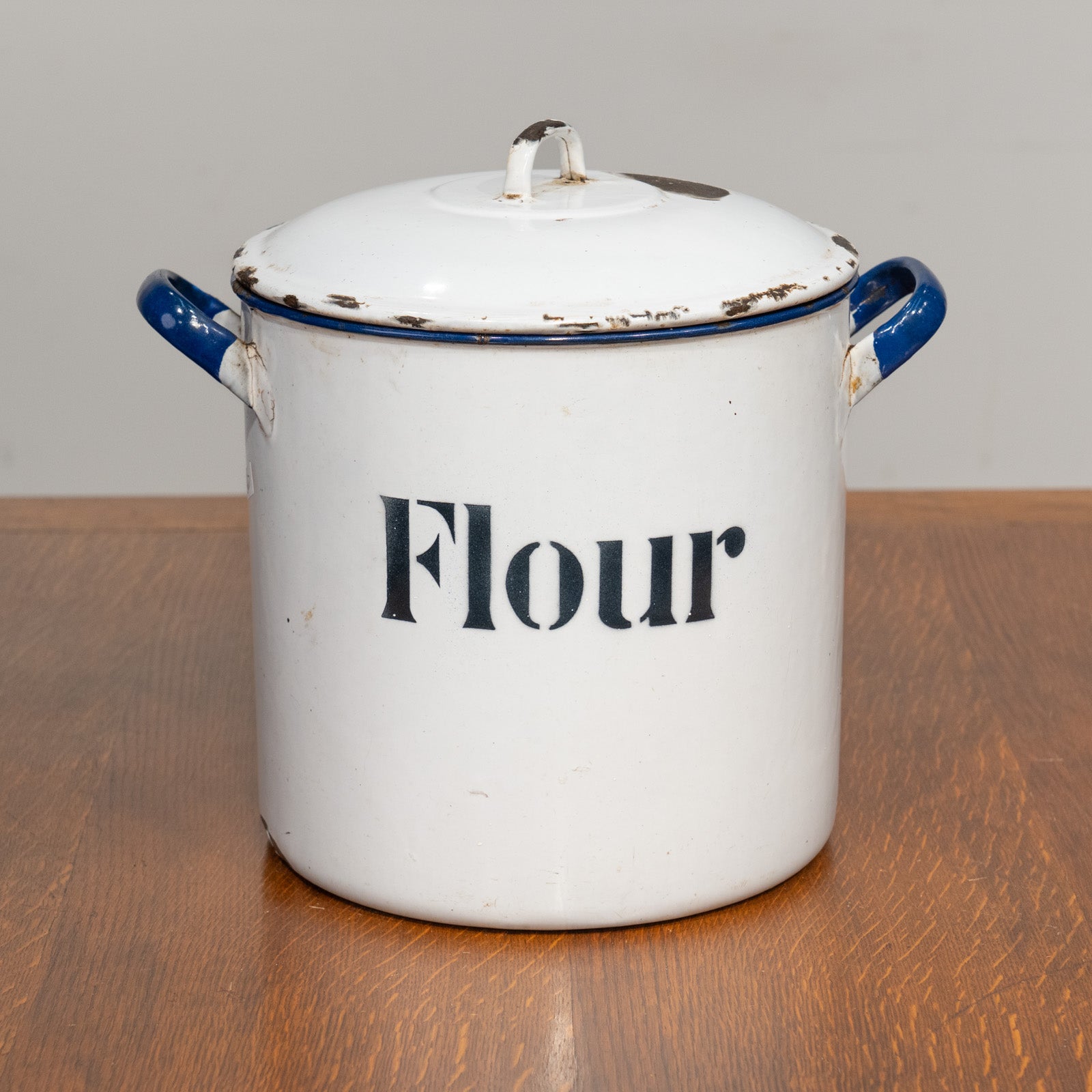 ホーローの欠けやサビ、スレなど、経年を感じるアンティークならではの表情が味わい深いです。