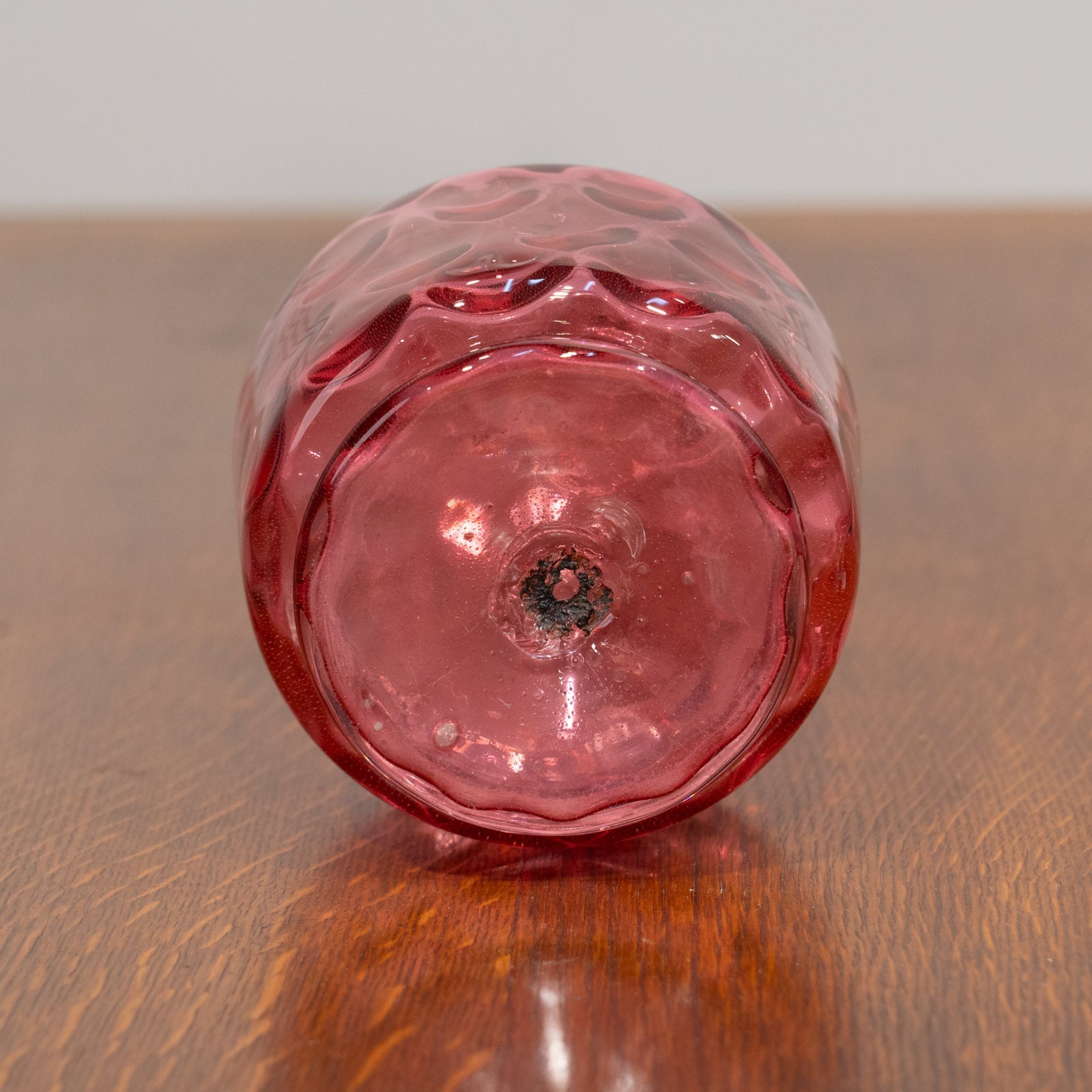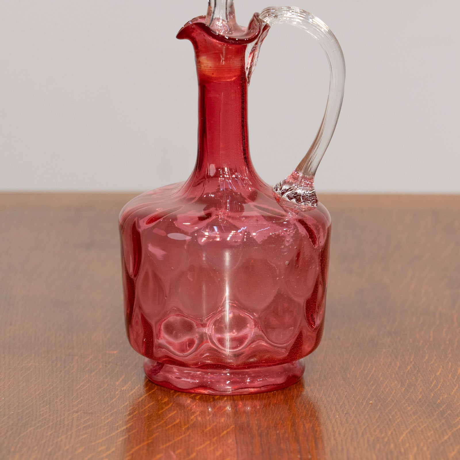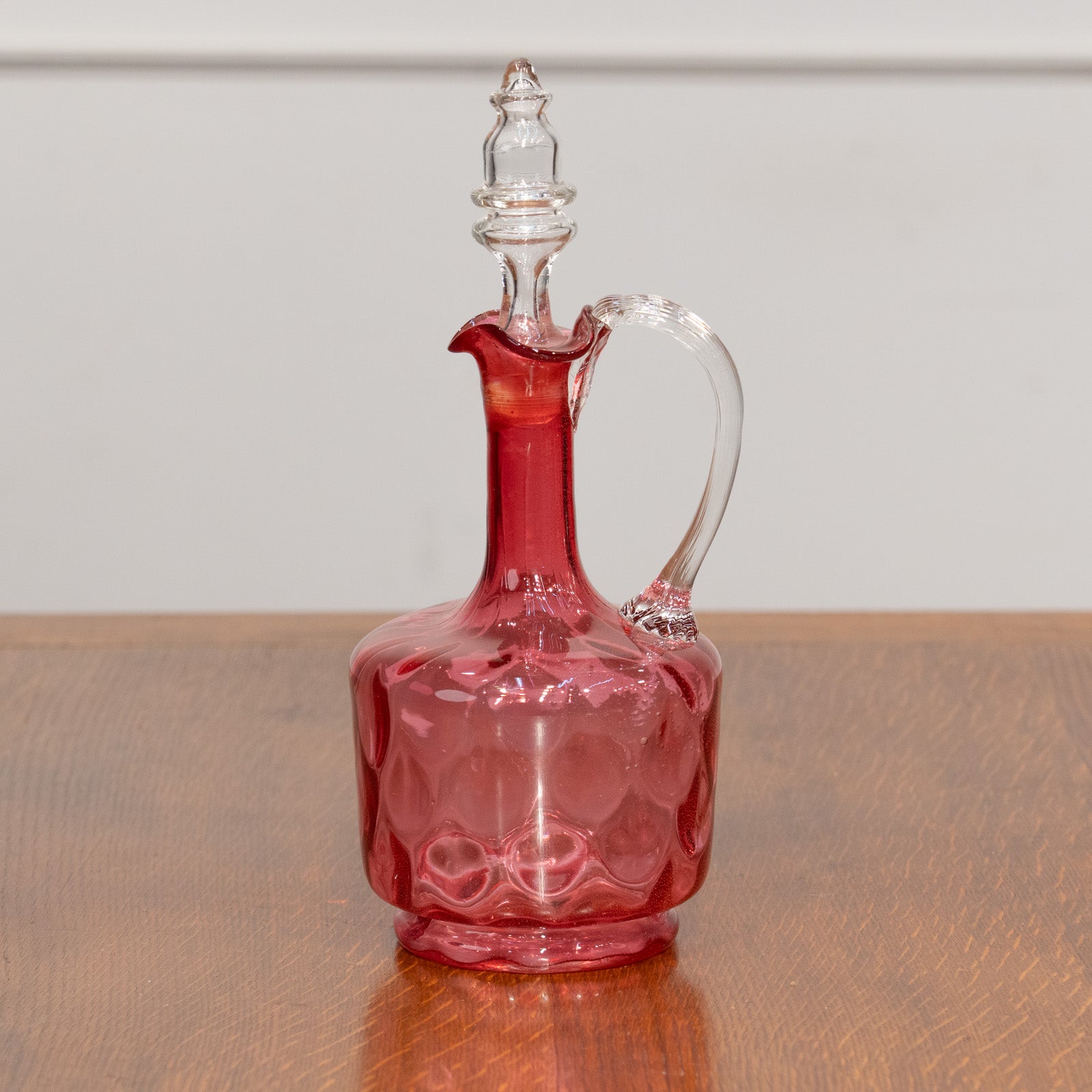 こちらはイギリスから買付けた、深みのあるクランベリー色が目を惹くガラスデキャンタです。
