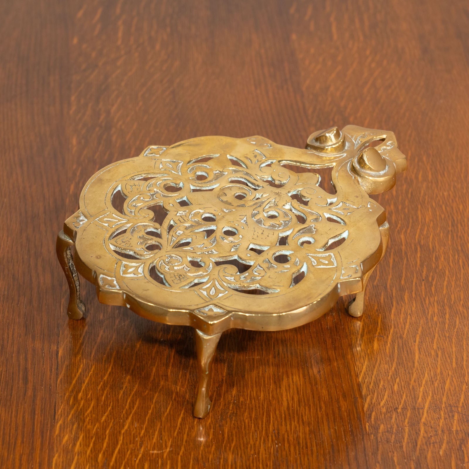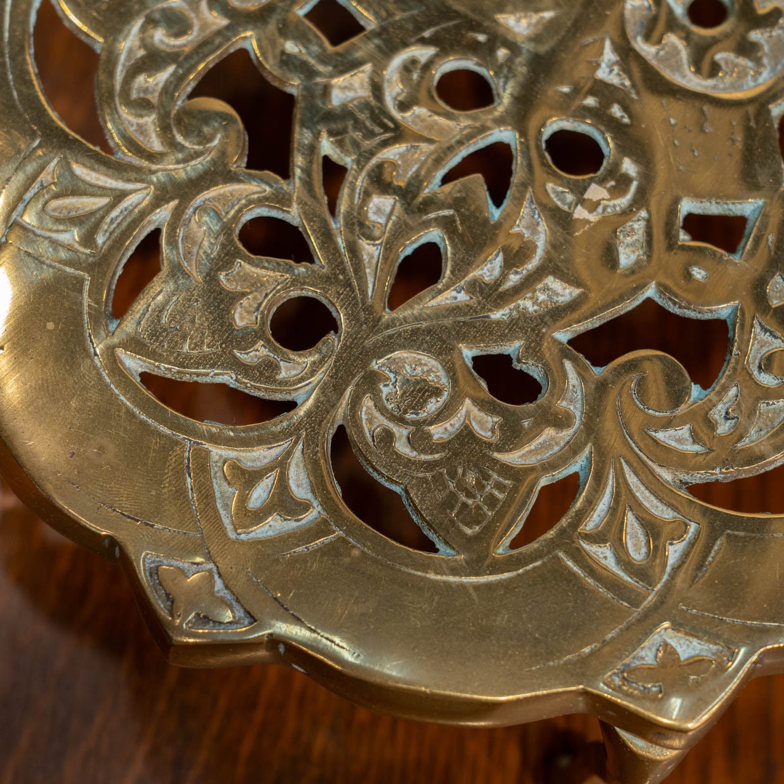 こちらはイギリスから買付けた、繊細なアラベスク模様が透かし彫りされたポットスタンドです。