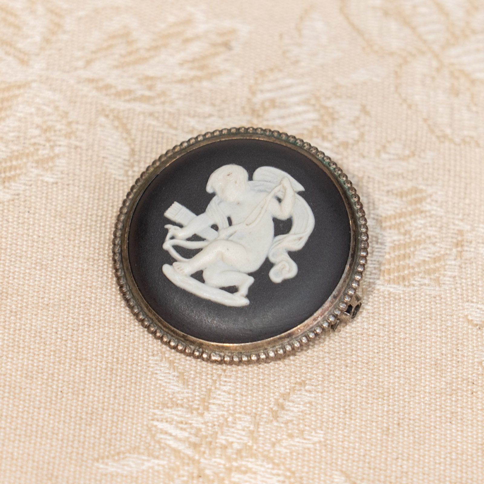 こちらはイギリスから買付けた、ウェッジウッドの象徴的なジャスパーウェアを使用したサーキュラーブローチです。