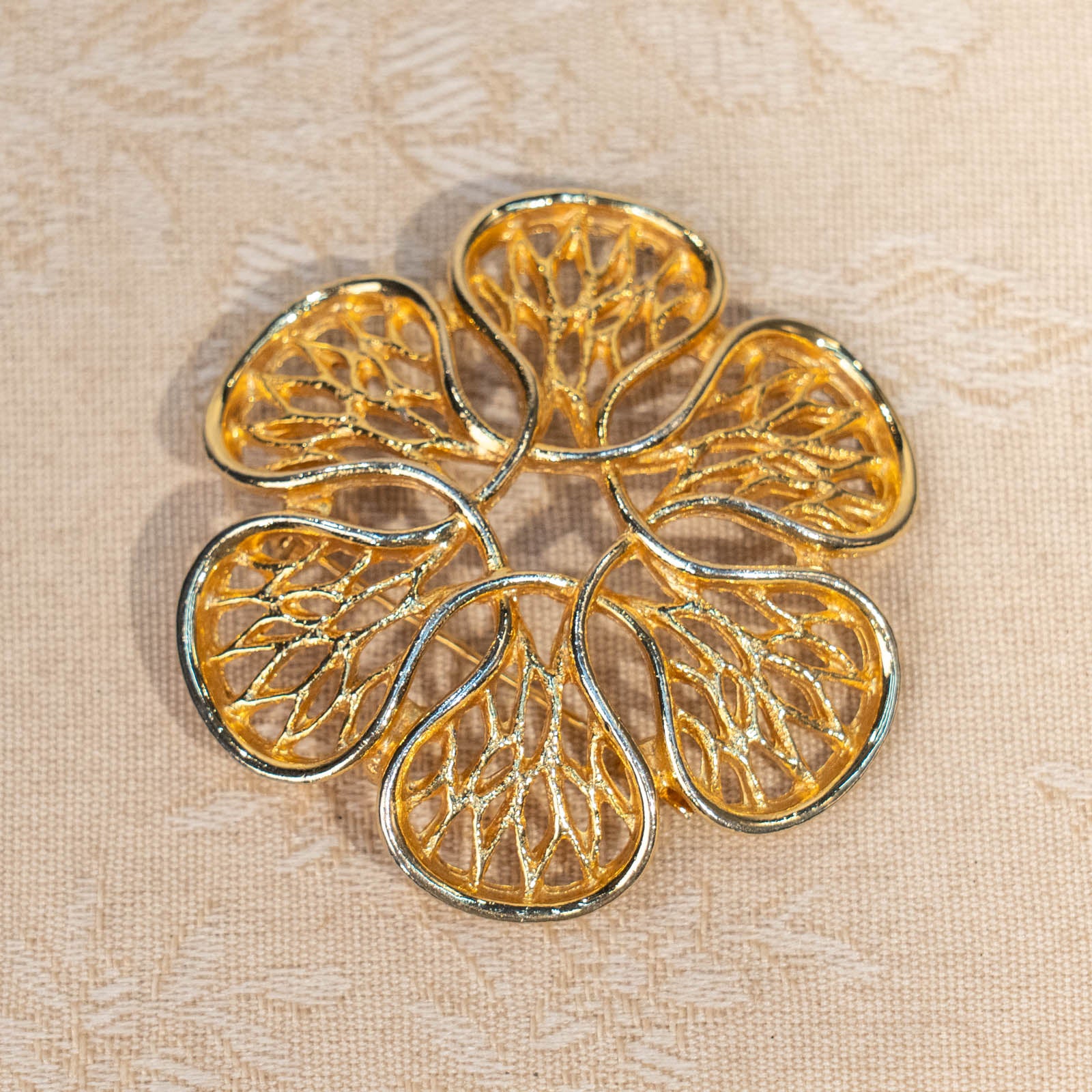 高級感のある金メッキで仕上げられており、ジャケットやワンピースに付けるだけで洗練された印象に。