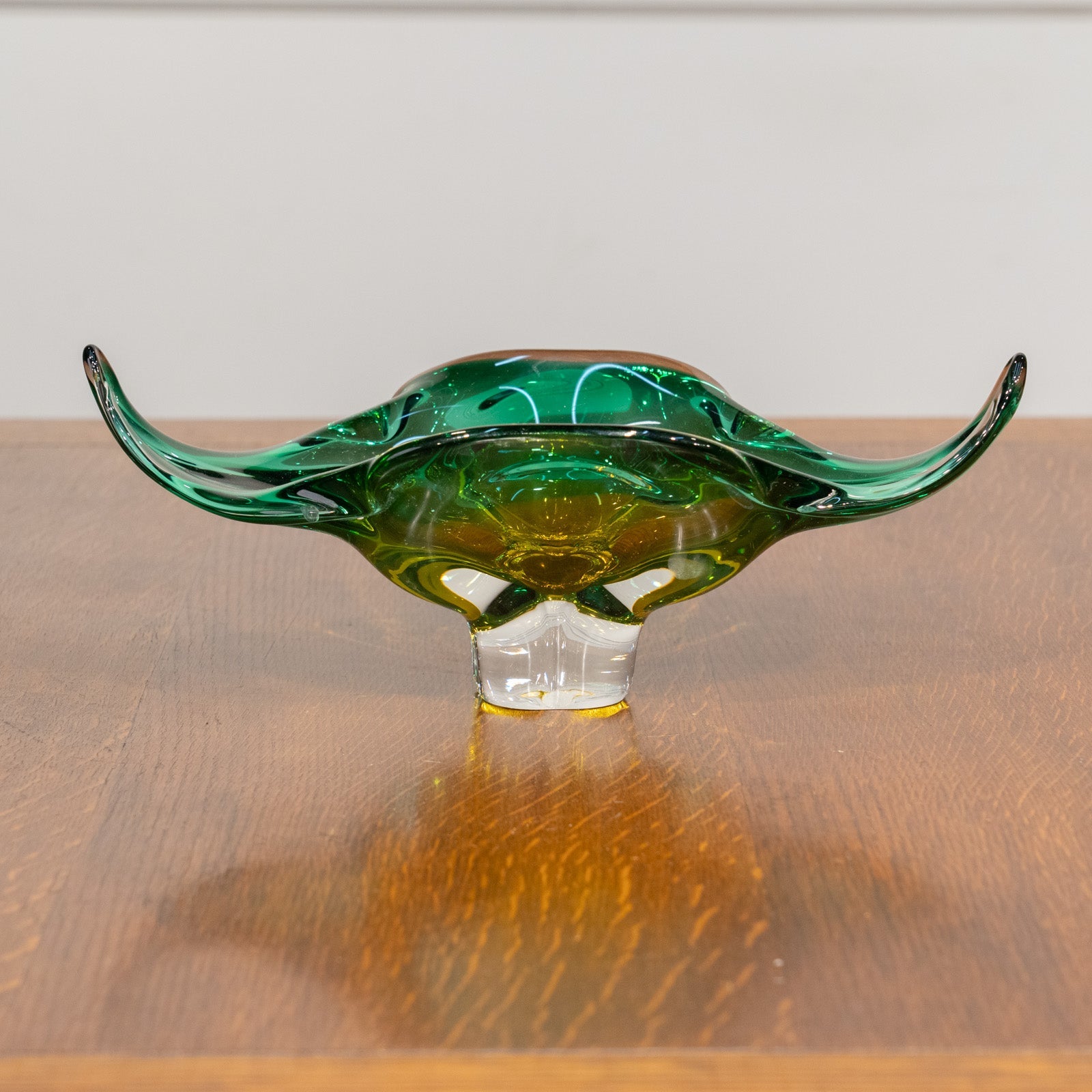 こちらはイギリスから買付けた、有機的な曲線のフォルムが美しいアートガラスボウルです。