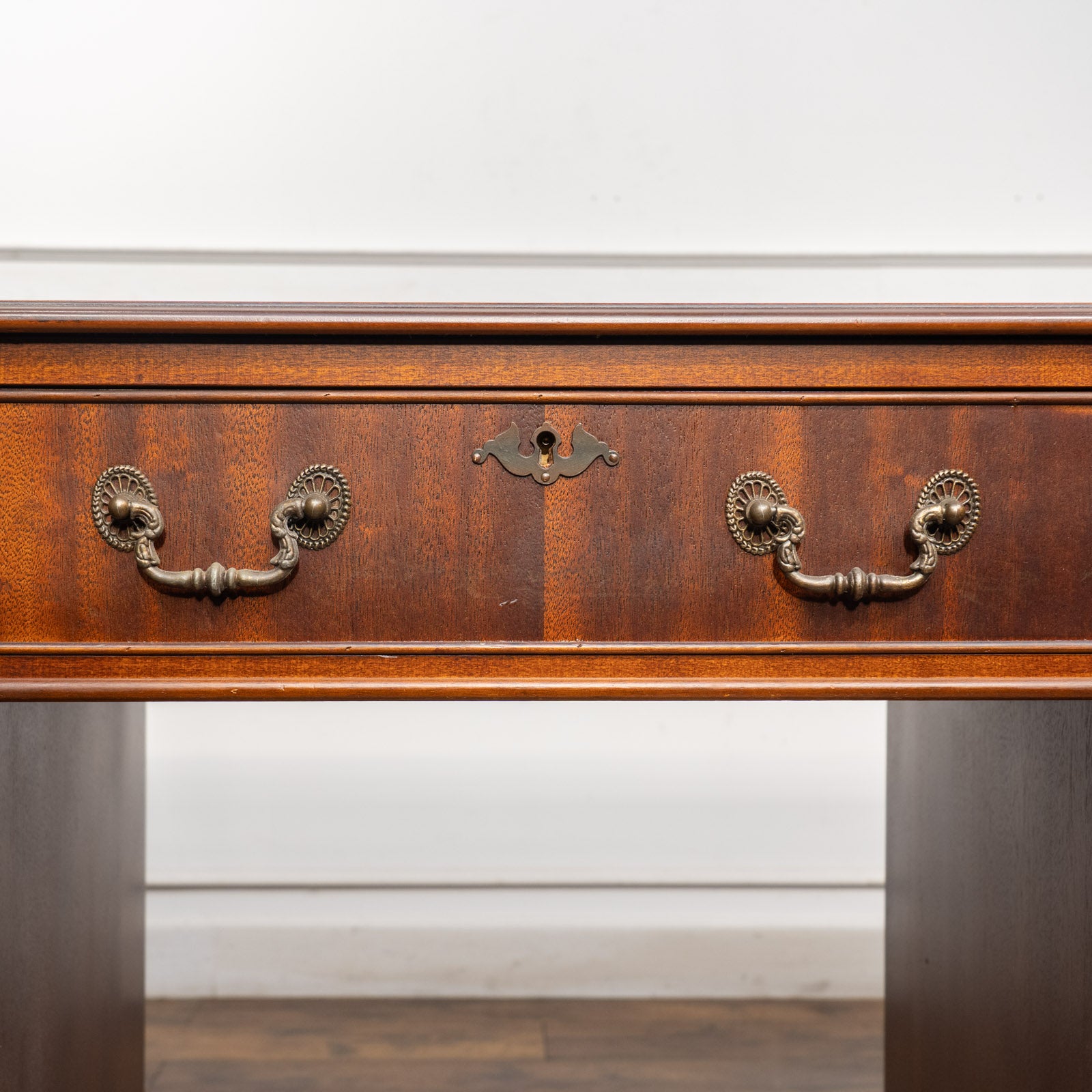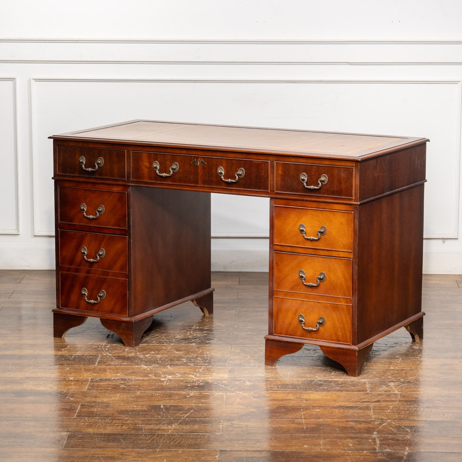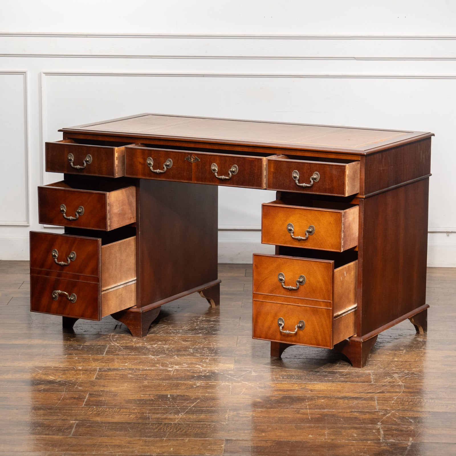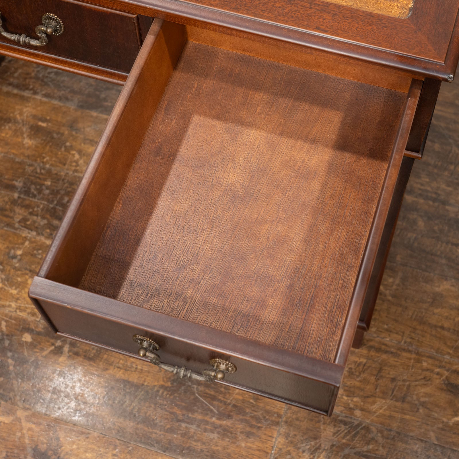 17世紀頃フランスに現れた両袖デスク(ペデスタルデスク、ニーホールデスク)は左右両側の引き出しや中央の膝が入る空間、使用者に相応しい大きさや贅を凝らした造りが特徴です。