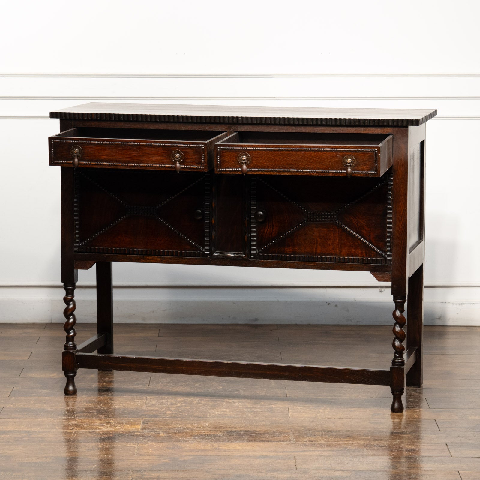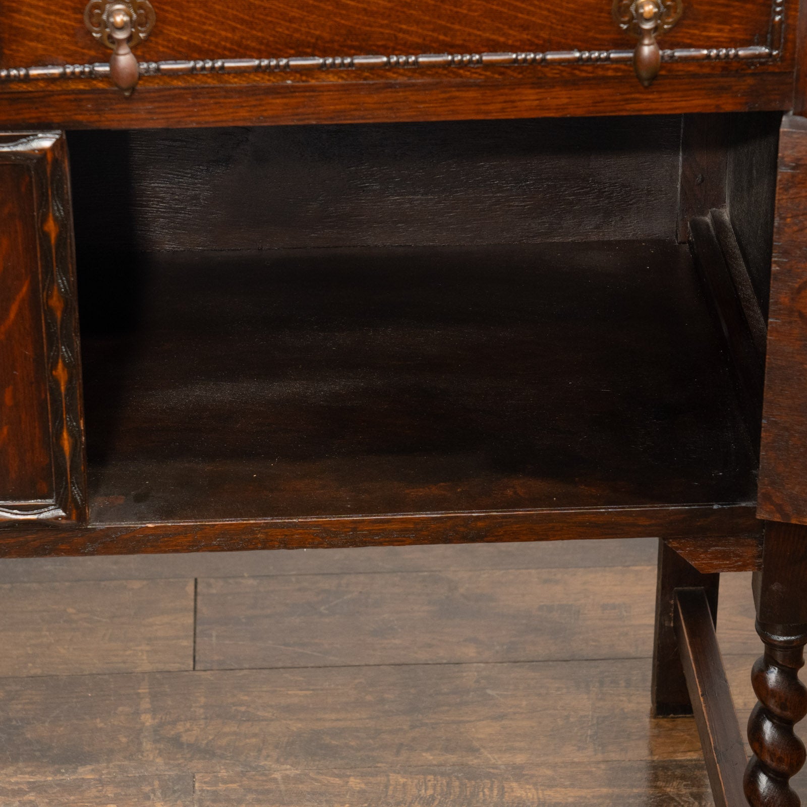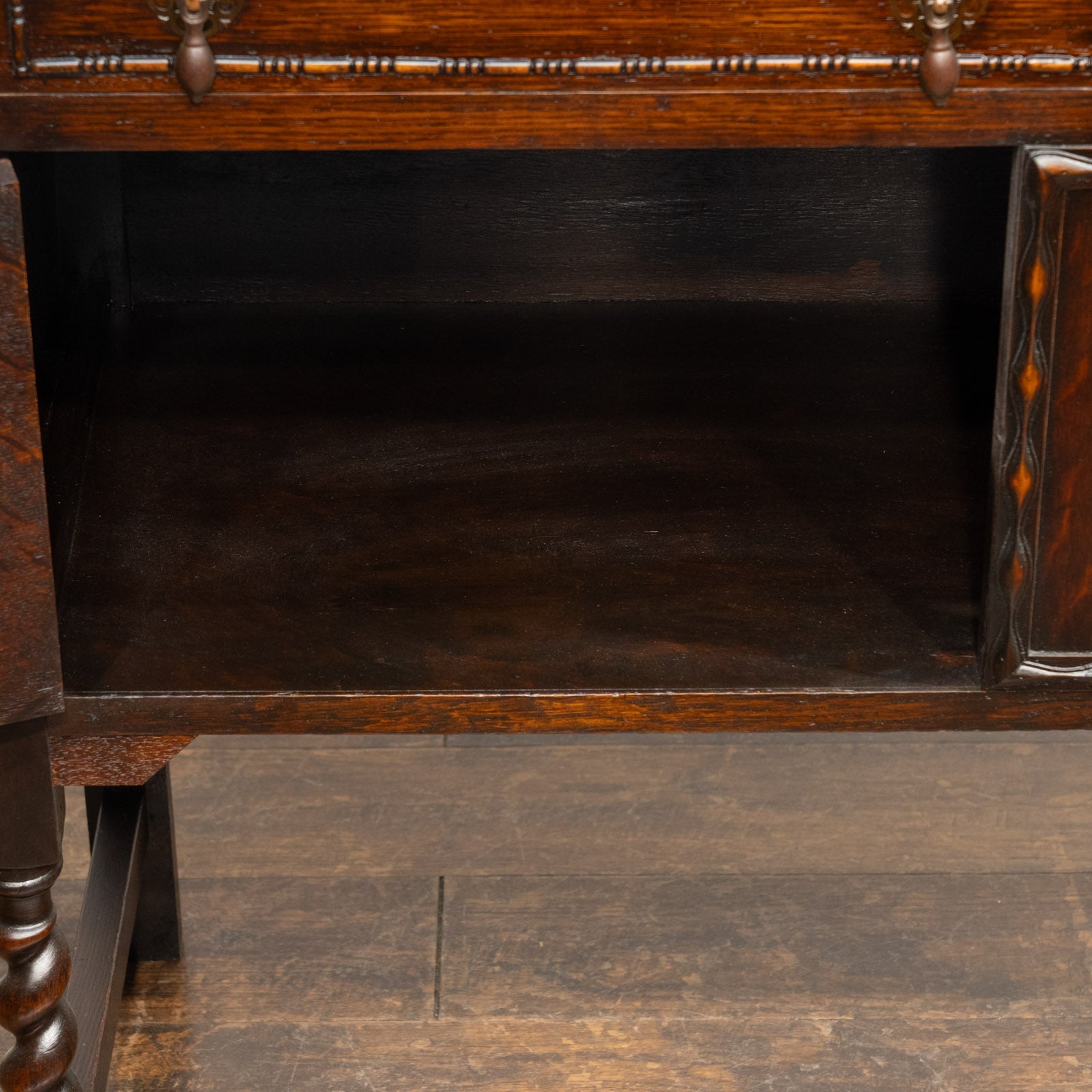 こちらは味わい深いオーク材で作られたサイドボードです。