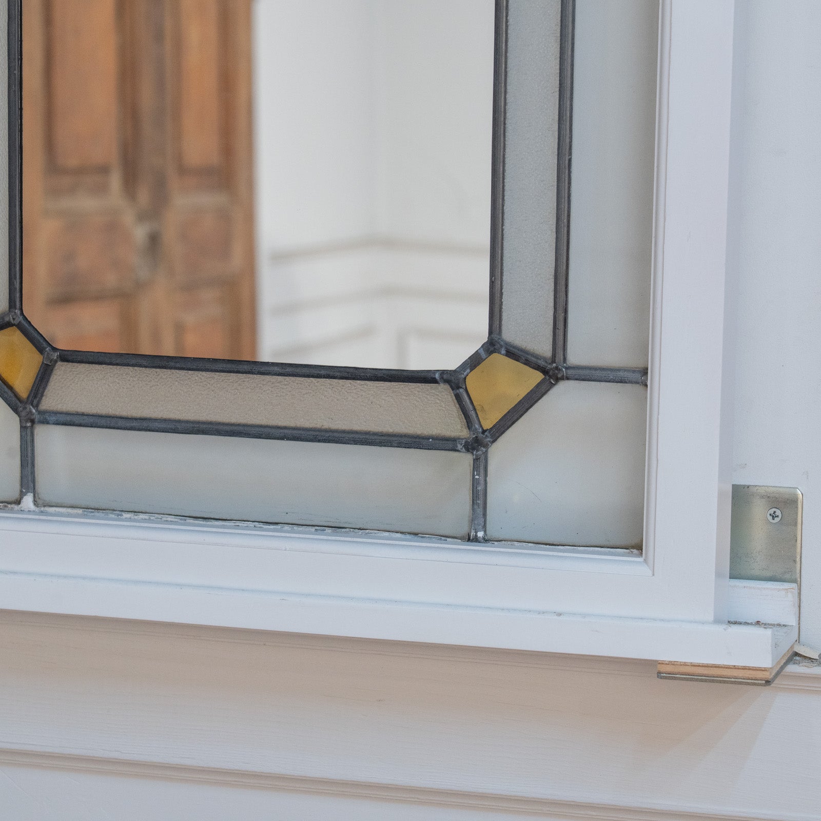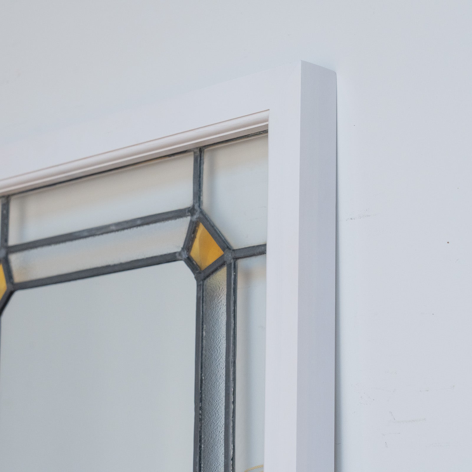 シンプルな幾何学模様のステンドグラスと長方形のミラーとがマッチした上品なデザインで、 インテリアとして楽しみつつ、玄関先やお部屋で身だしなみを整えるのに活躍してくれます。