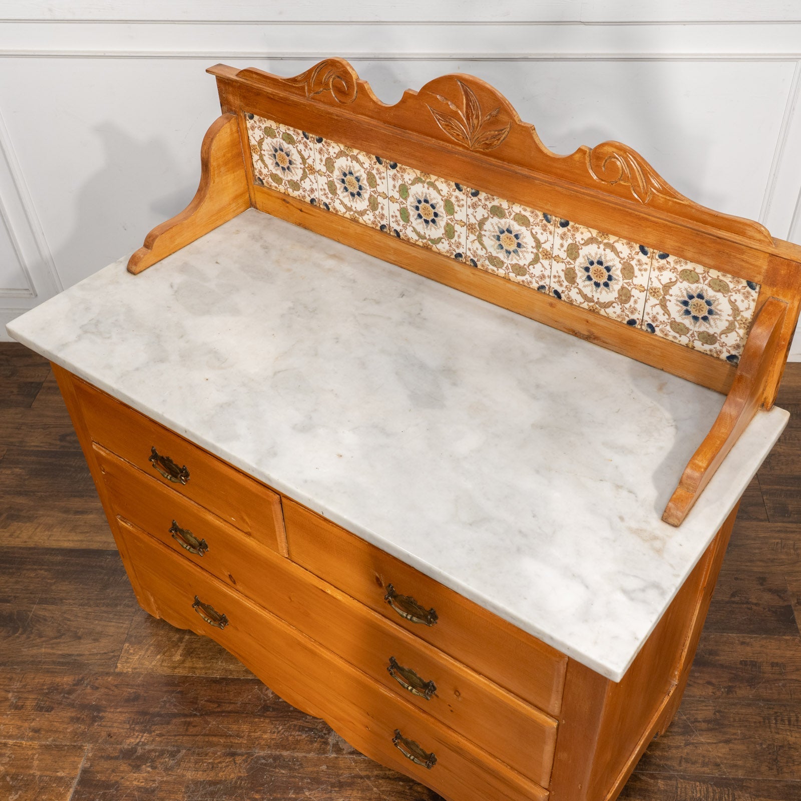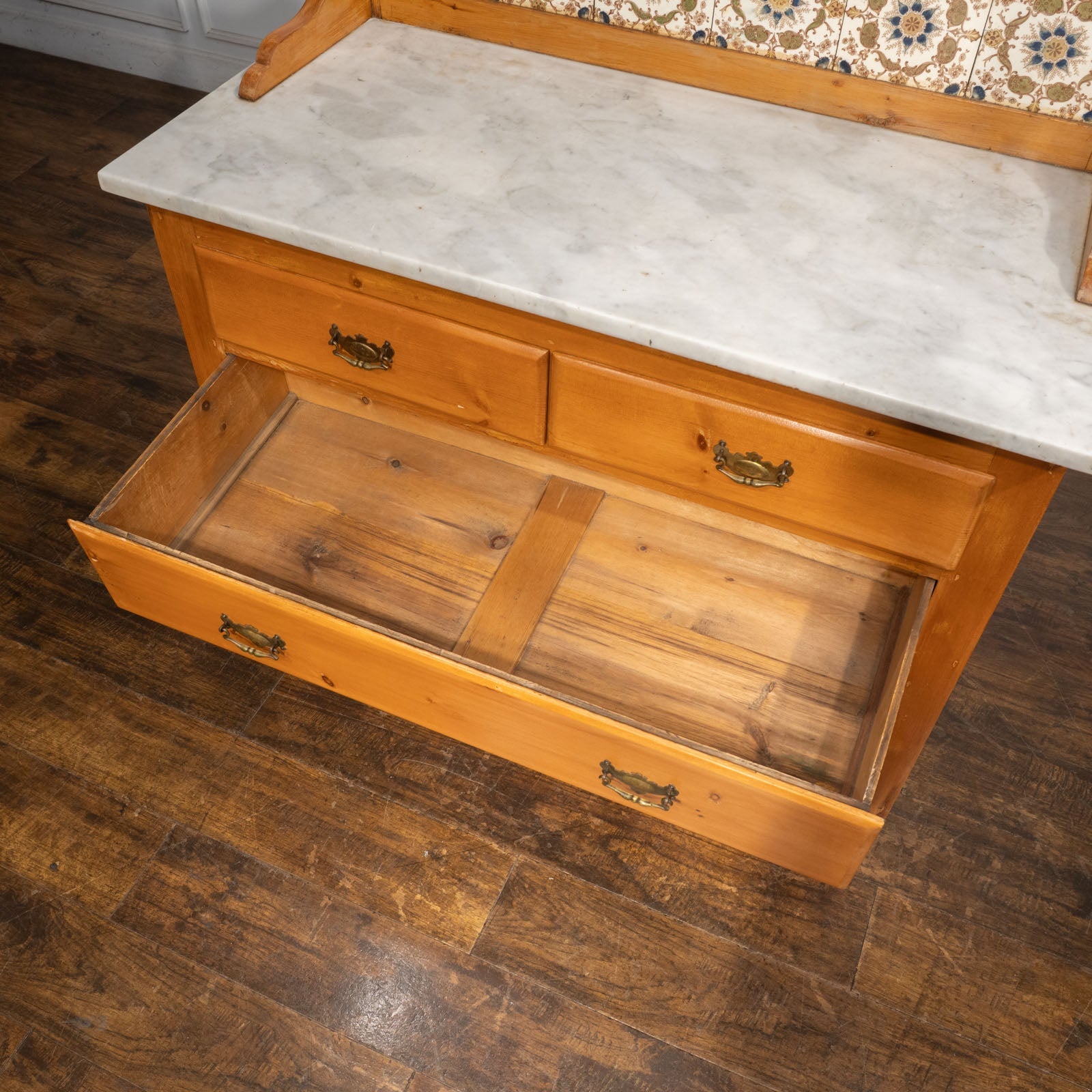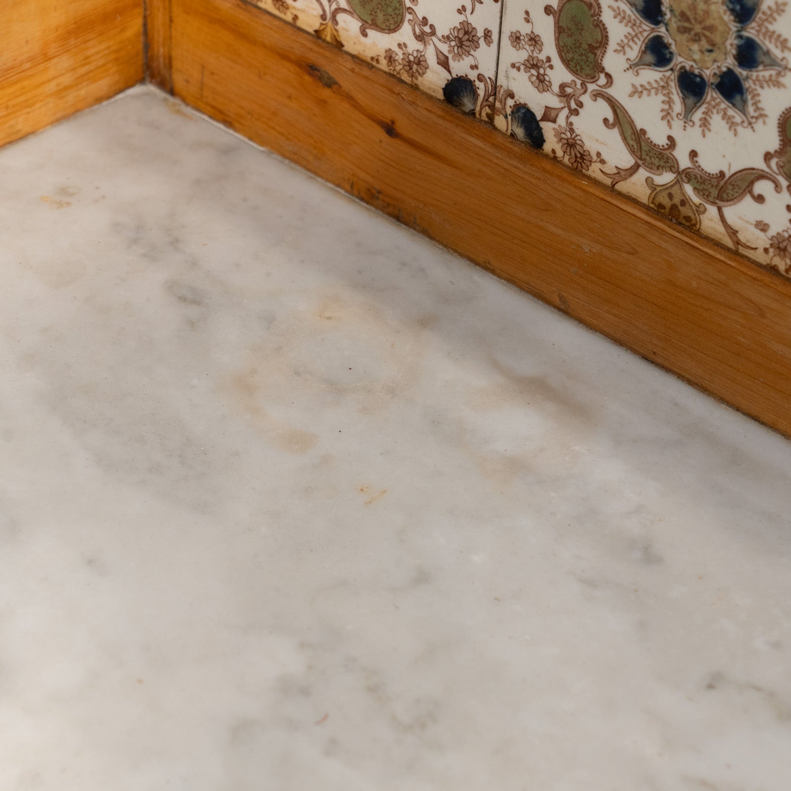 洗面器などを置いた際に飛ぶ水分を考え、天板は大理石で作られていました。