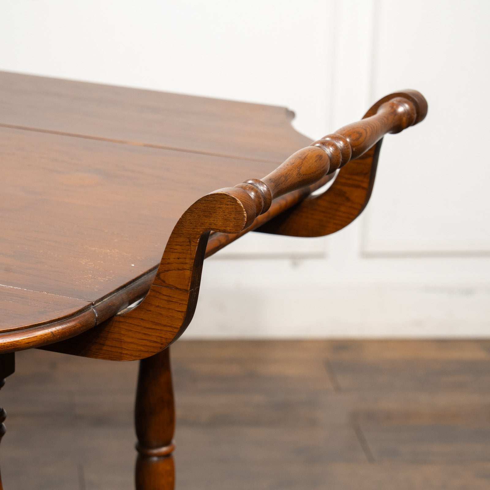 ドロップリーフ天板になっており、用途やスペースに応じて天板サイズを調整できるのも魅力。
