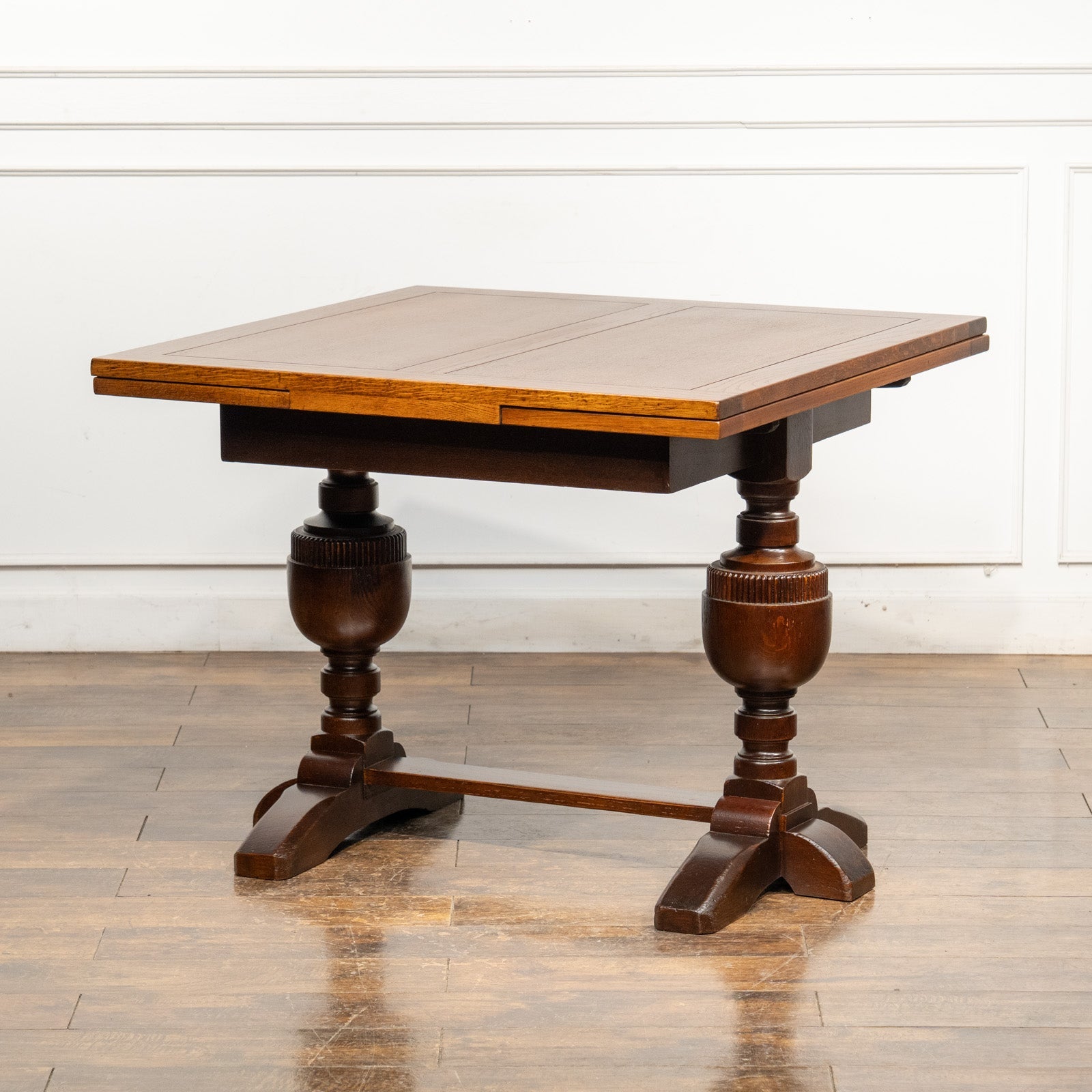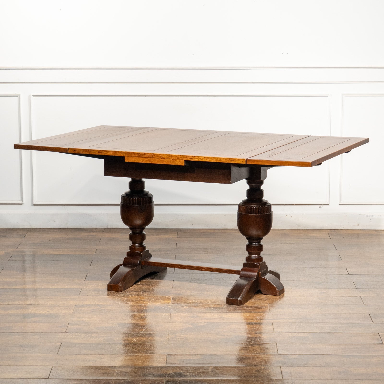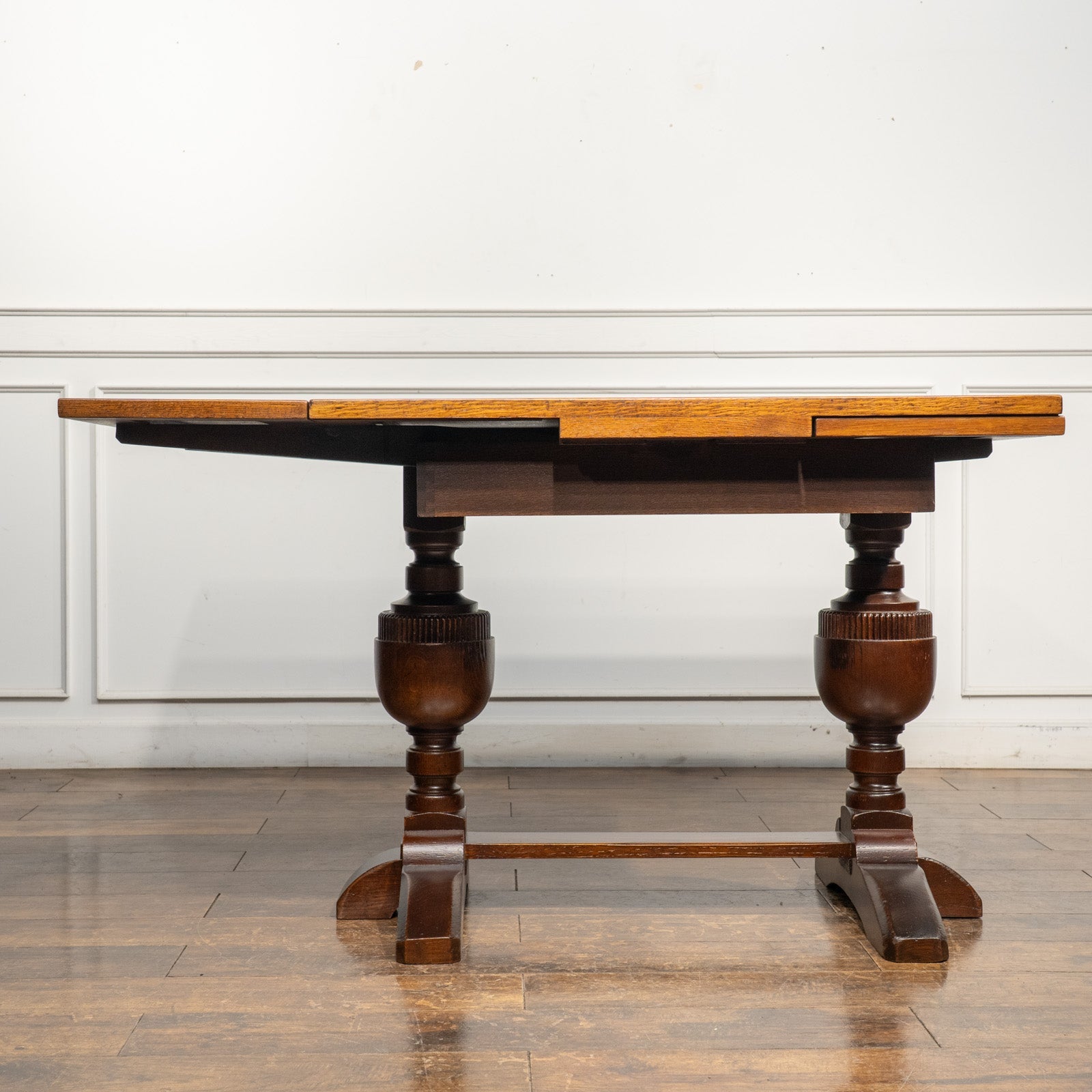 こちらは味わい深いオーク材が使われた、気品を感じるバルボスレッグが印象的なドローリーフテーブルです。