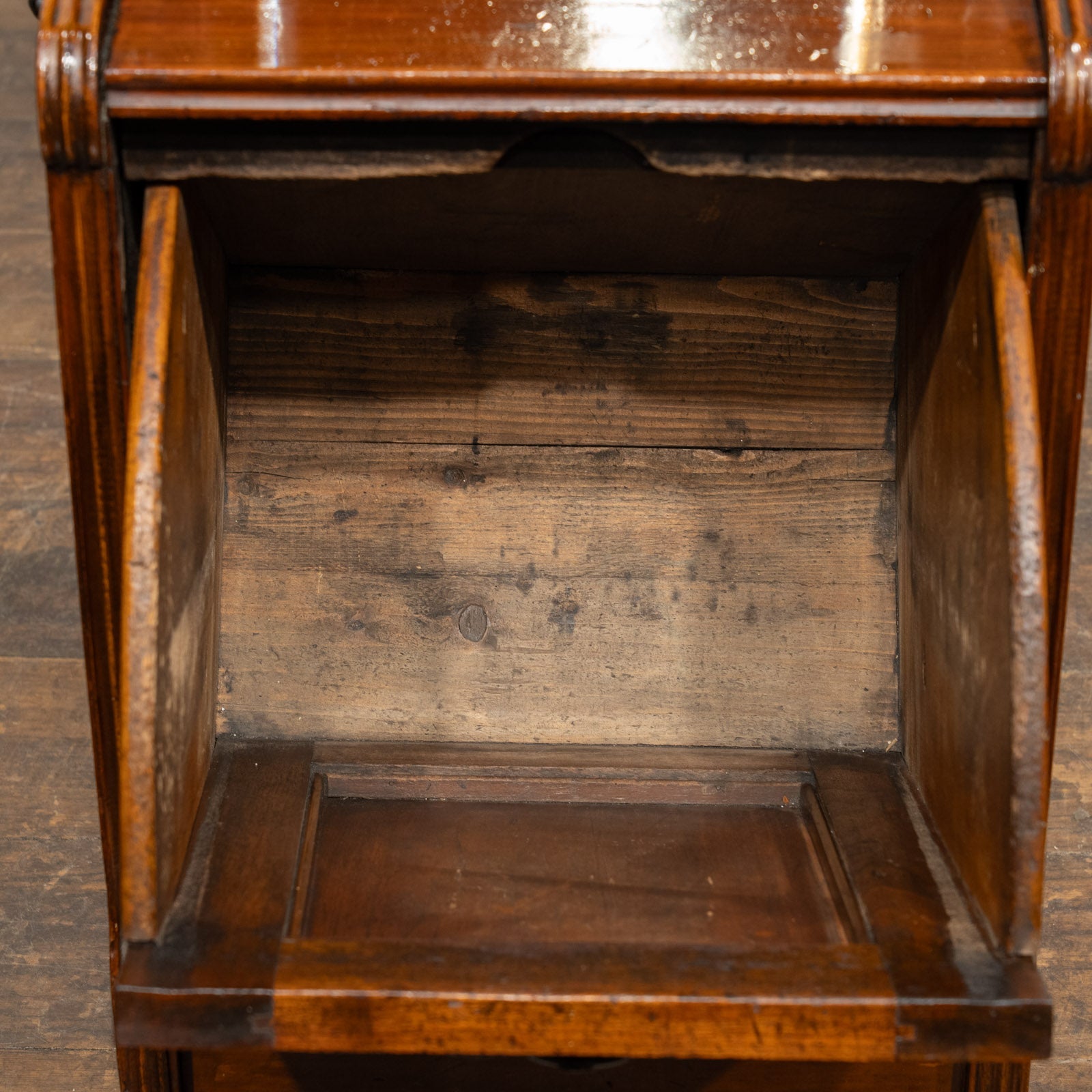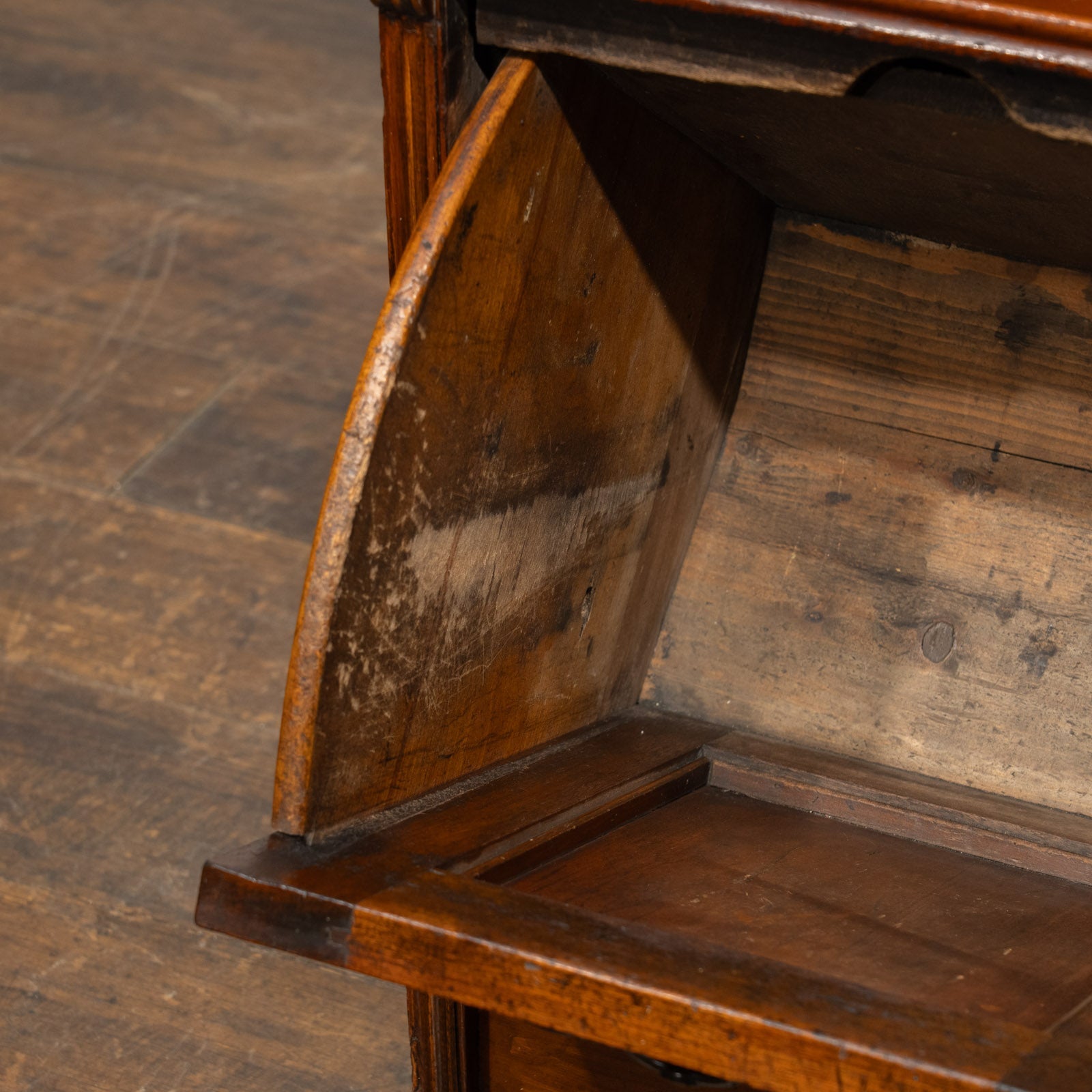 | 備考 | ※天板の塗装劣化があります。無料にて剥離と再塗装を致します。 ・本商品は買い付けたままの状態です。自社工房にて建付け等のメンテナンスを施してからのお届けになります。 心をこめてメンテナンスしておりますが、アンティーク家具およびヴィンテージ家具には多少のキズや汚れ等のダメージは必ず見られます。長く愛用されてきた品物の個性や味わいとして楽しんで頂けますと幸いです。 |