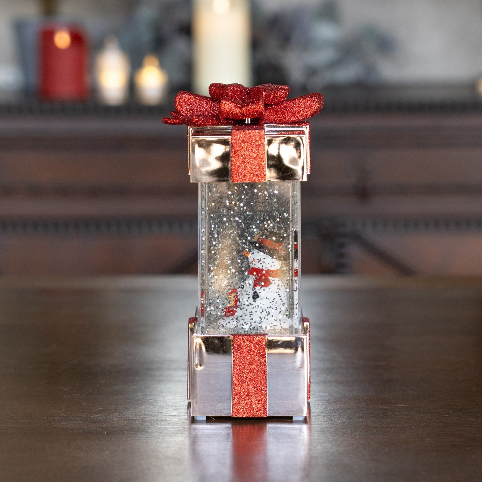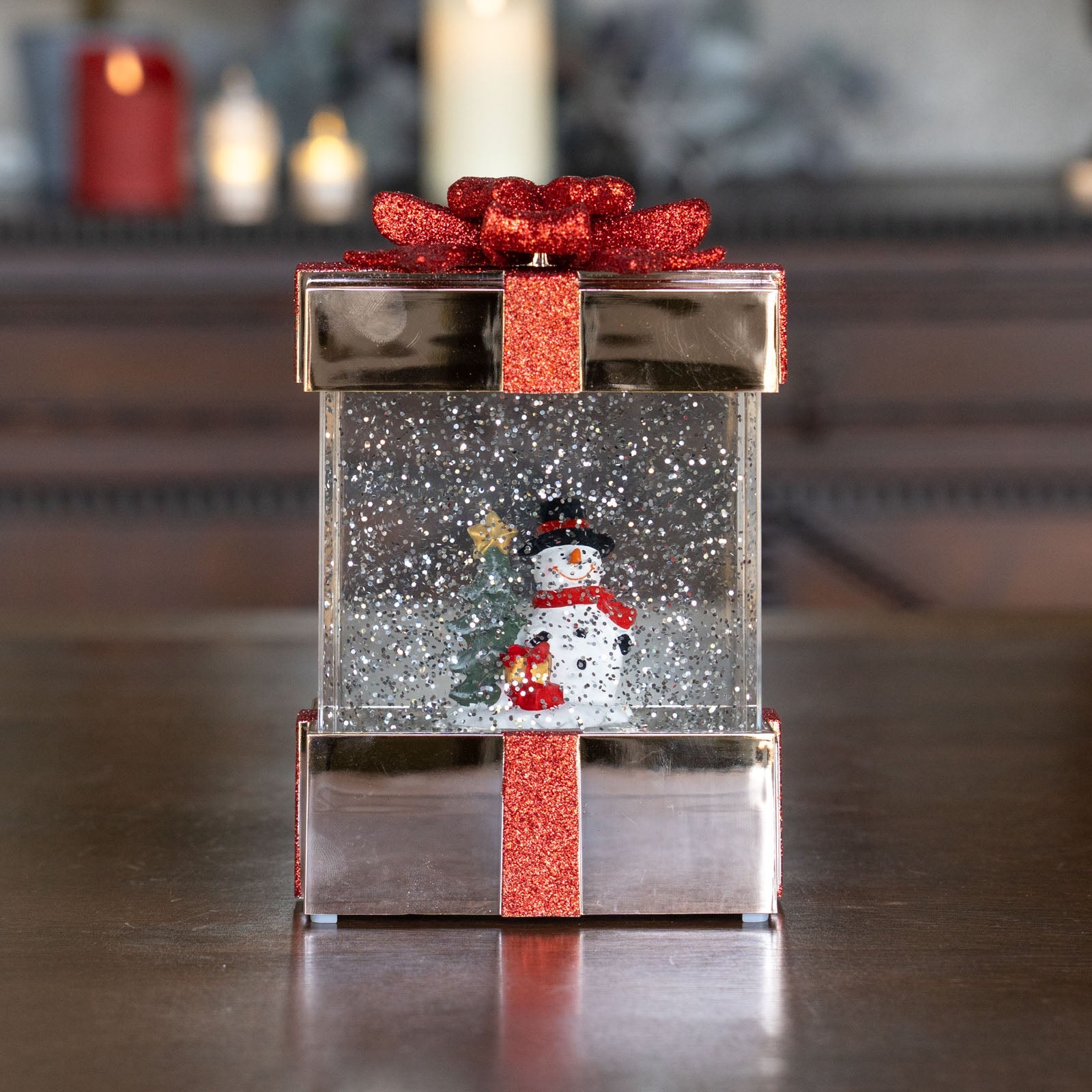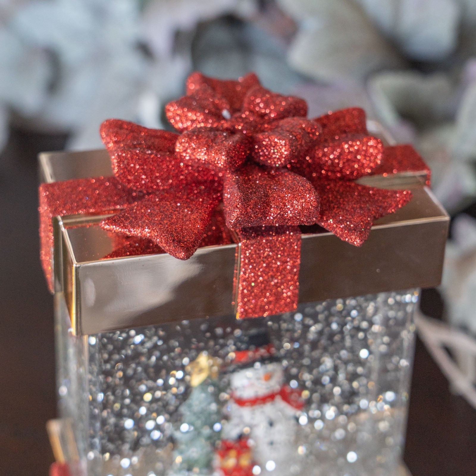 スイッチを入れるとLEDライトの明かりが灯り、それに合わせてキラキラと光り輝くラメリボンが素敵なプレゼントボックスの中を舞い上がります。