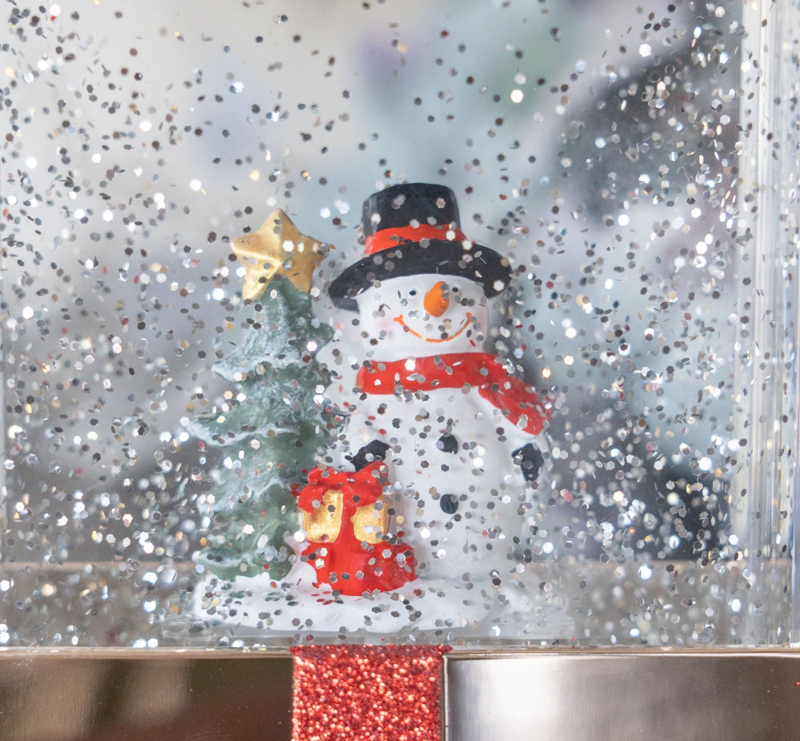 スノーマンが、ツリーの前でサンタクロースを待ちわびているような可愛らしいデザインです。