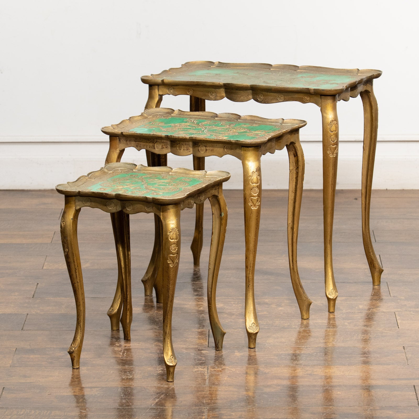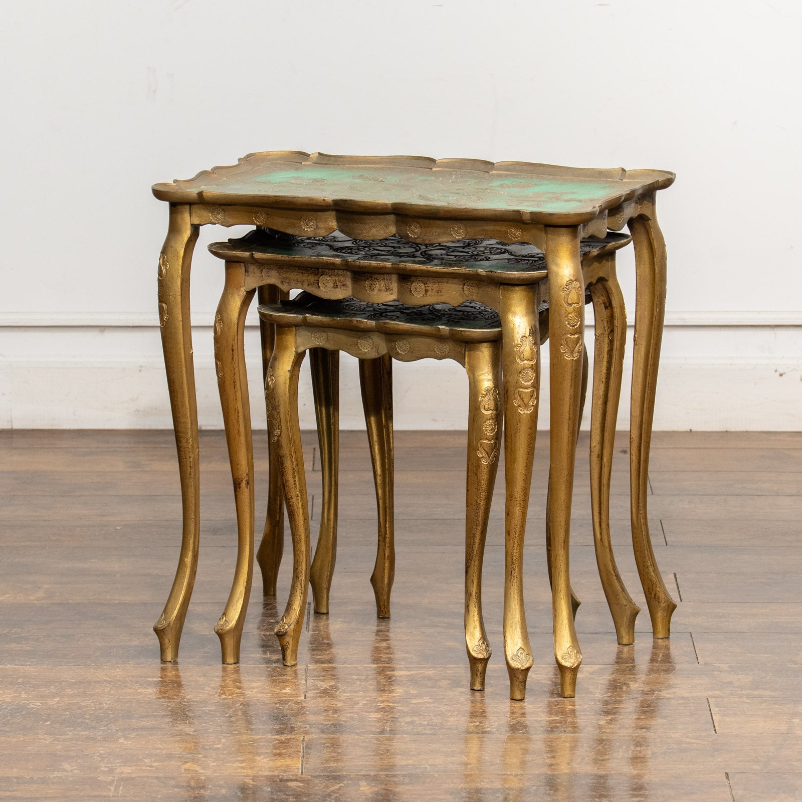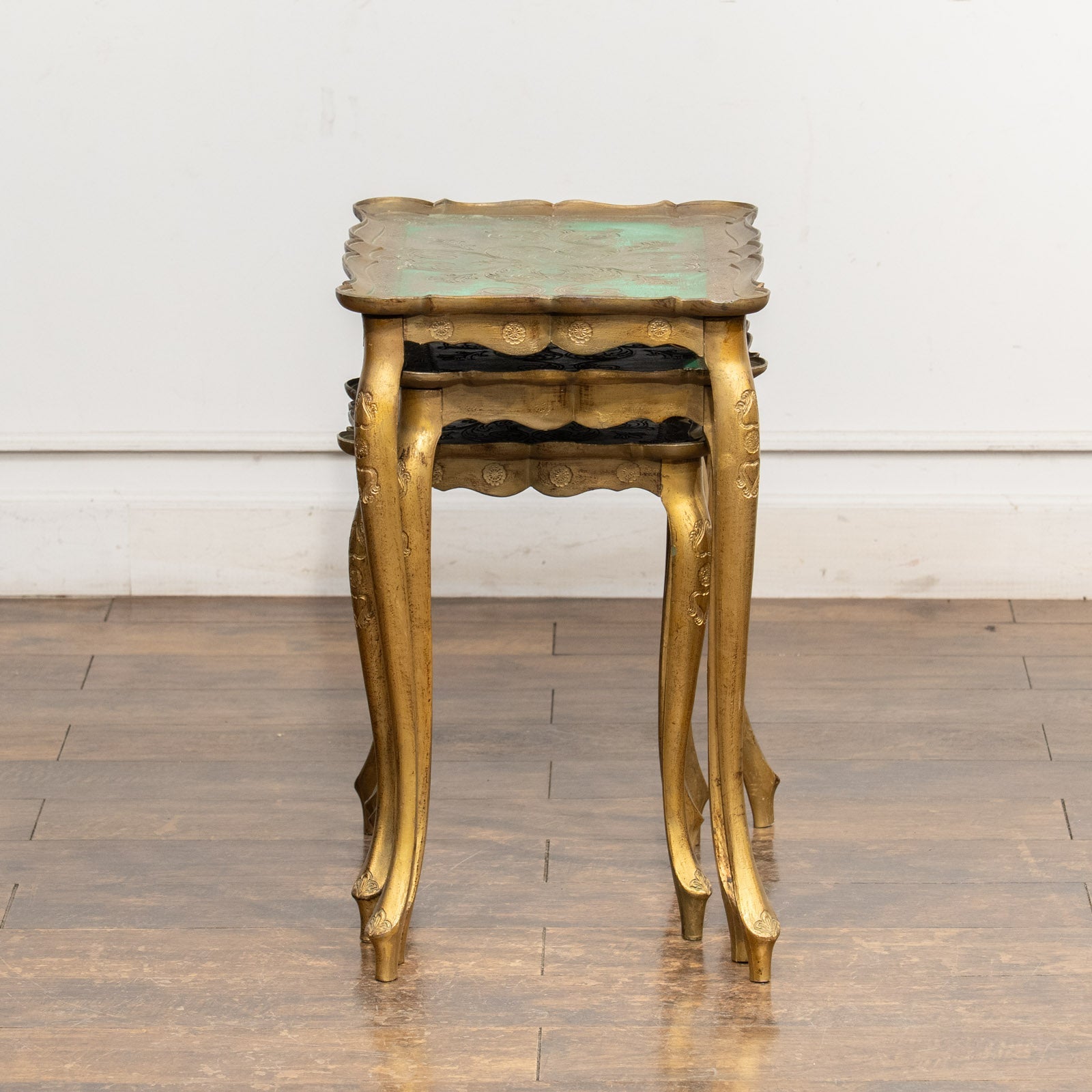 こちらはベルギーから買付けた、ゴールドペイントが華やかなネストテーブルです。