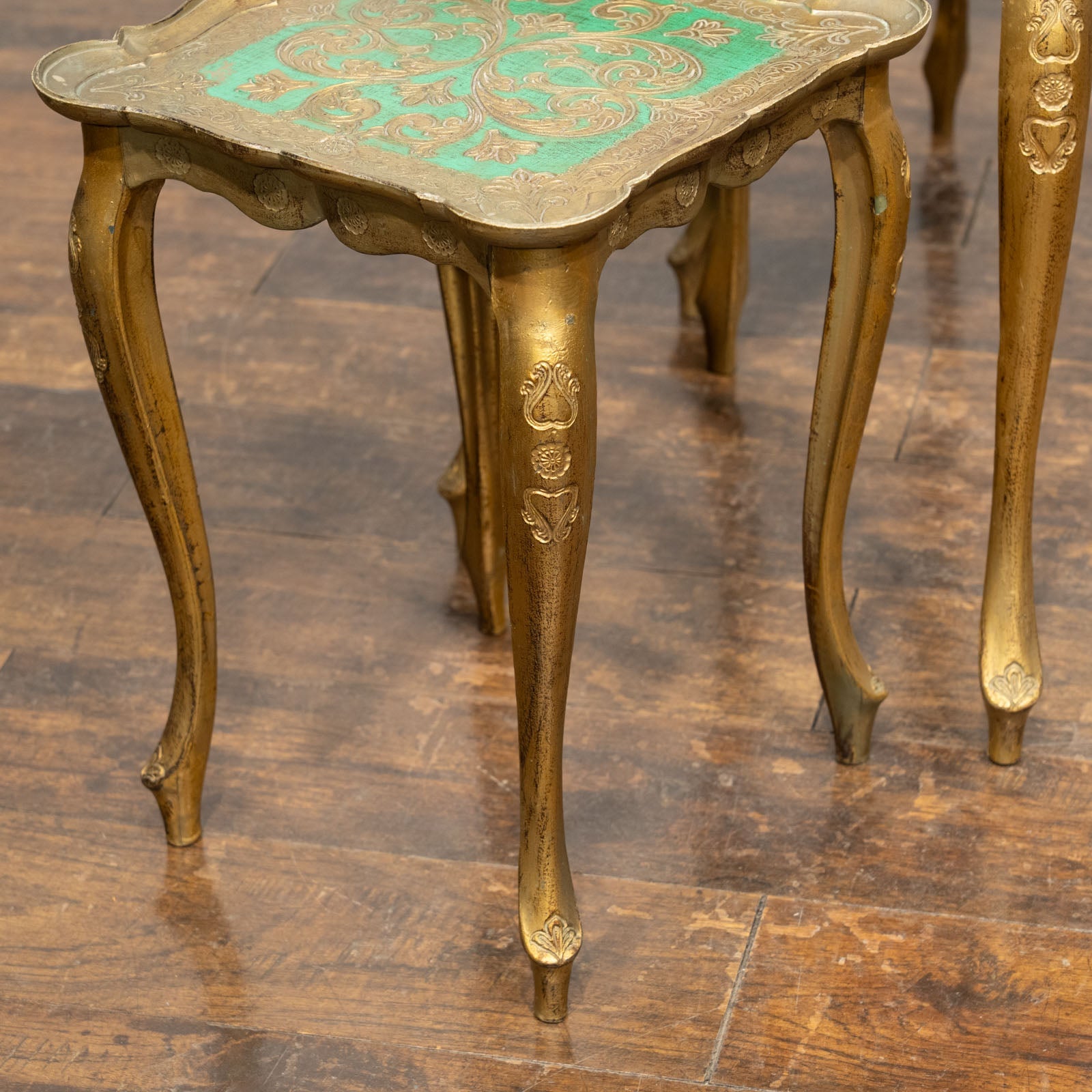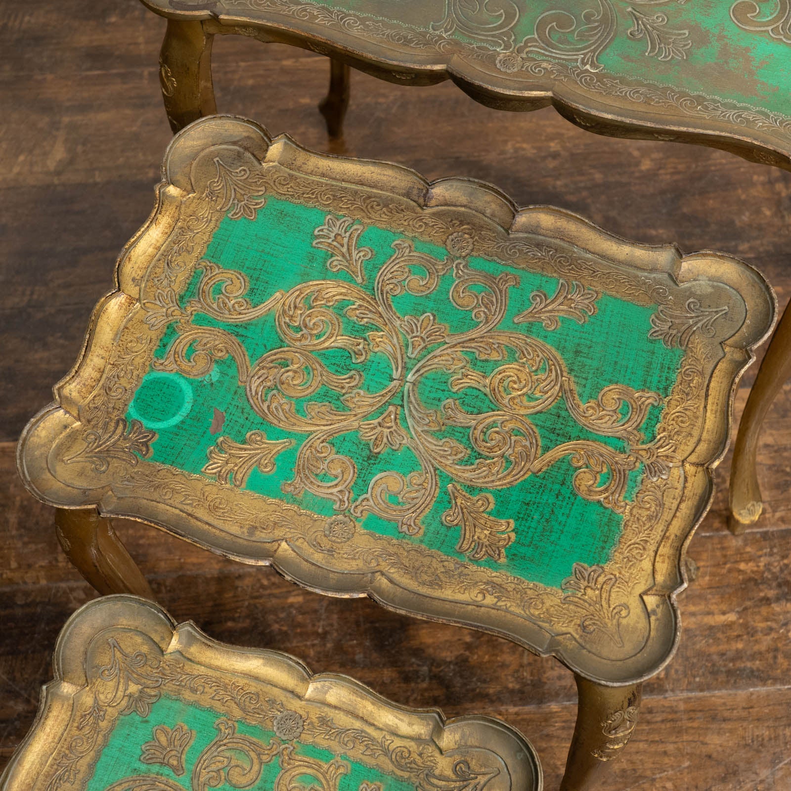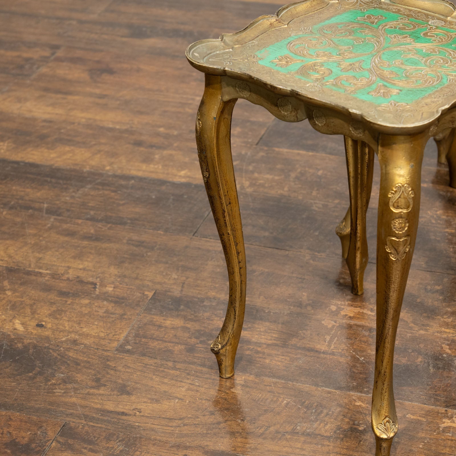 こちらはベルギーから買付けた、ゴールドペイントが華やかなネストテーブルです。