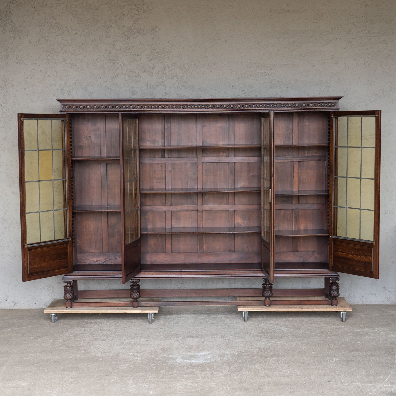 こちらはベルギーから買付けた、オークの無垢材で作られたガラスブックケースです。