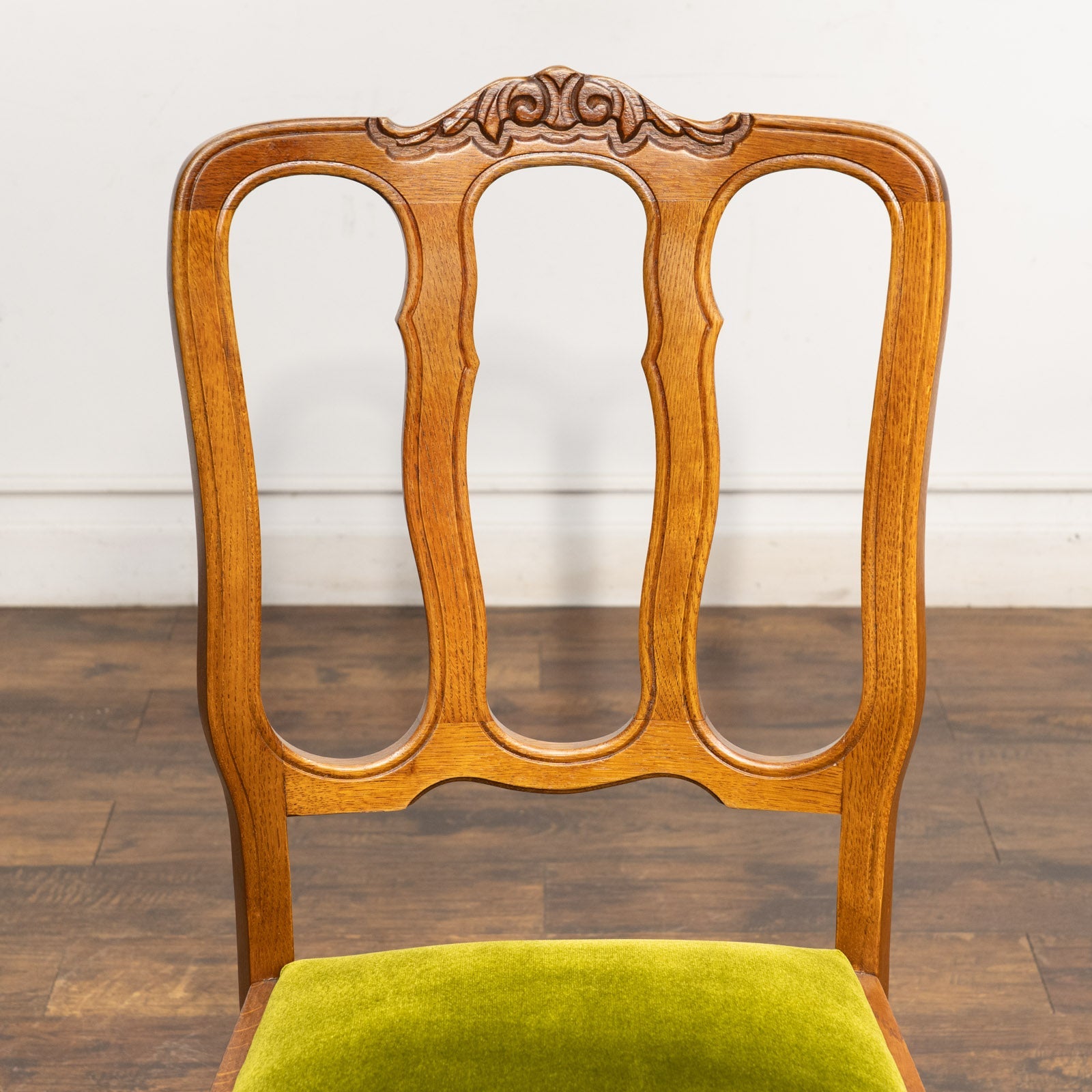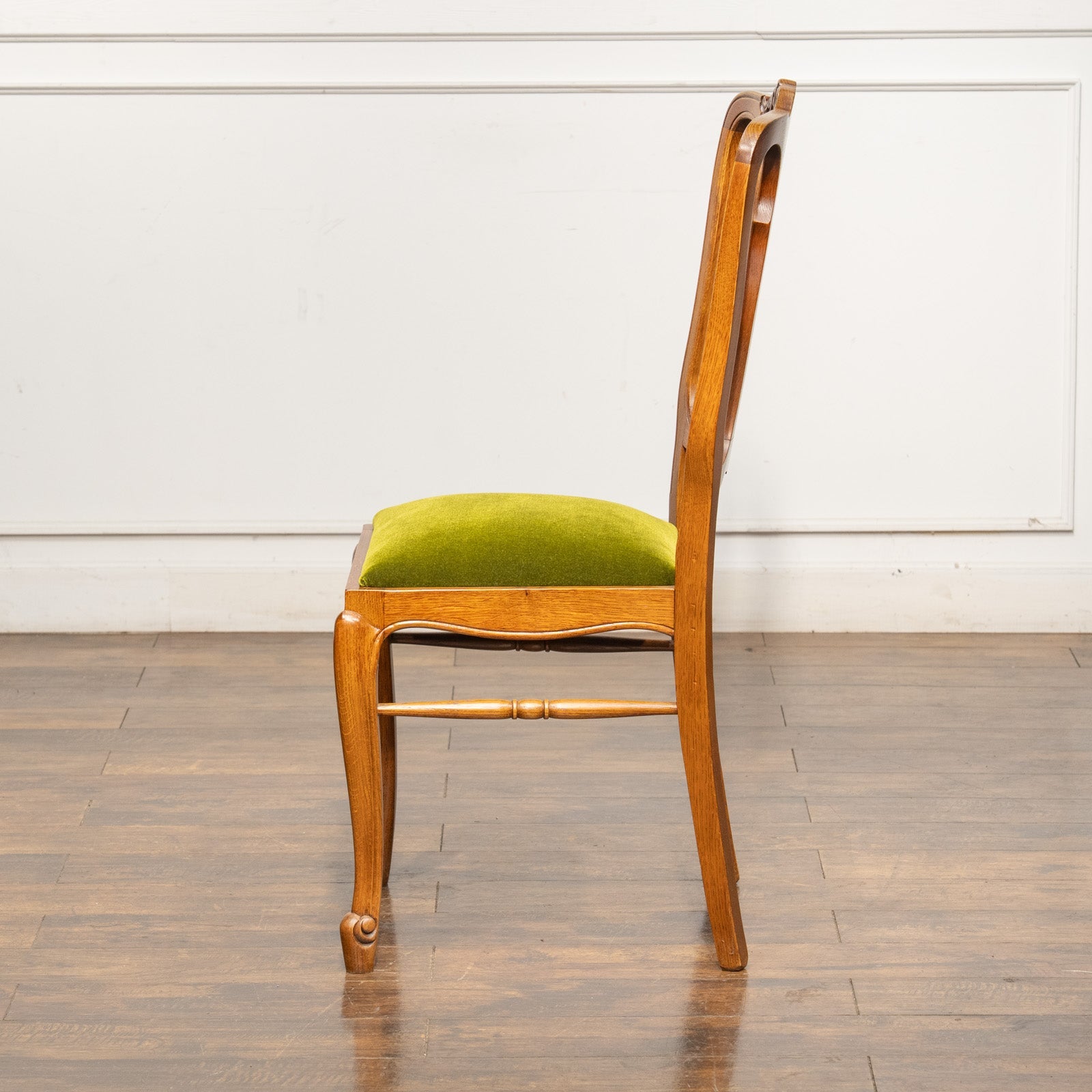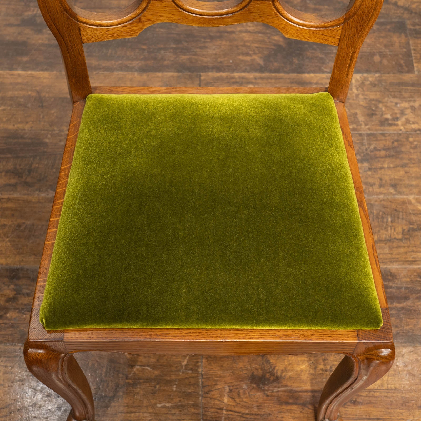 エレガントなデザインの背もたれにグリーンの座面が上品 オーク ダイニングチェア /23G-2
