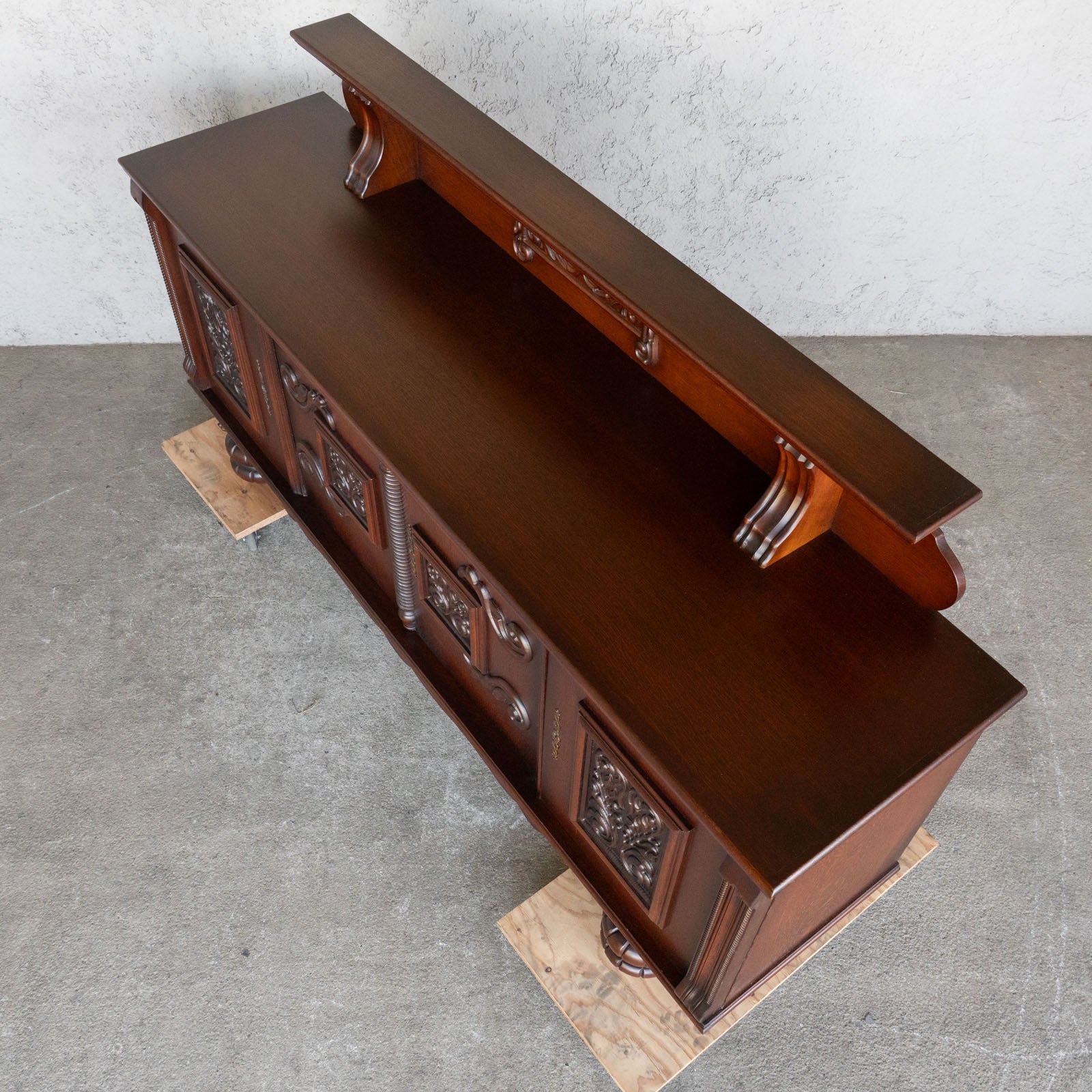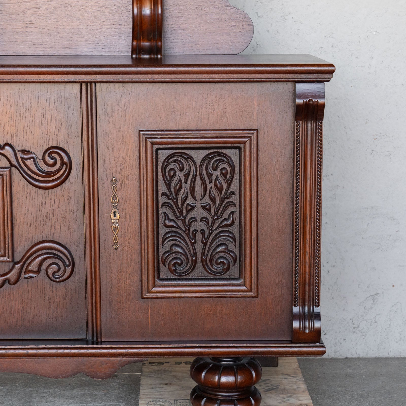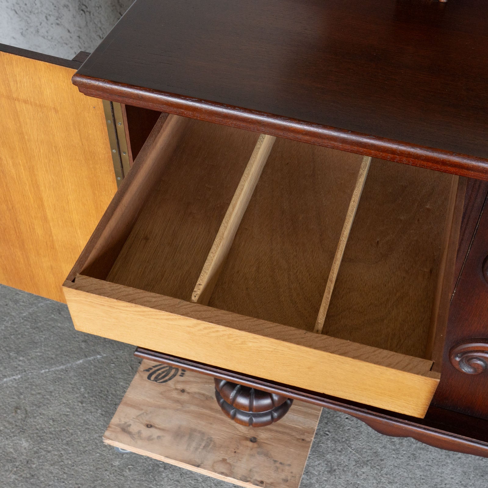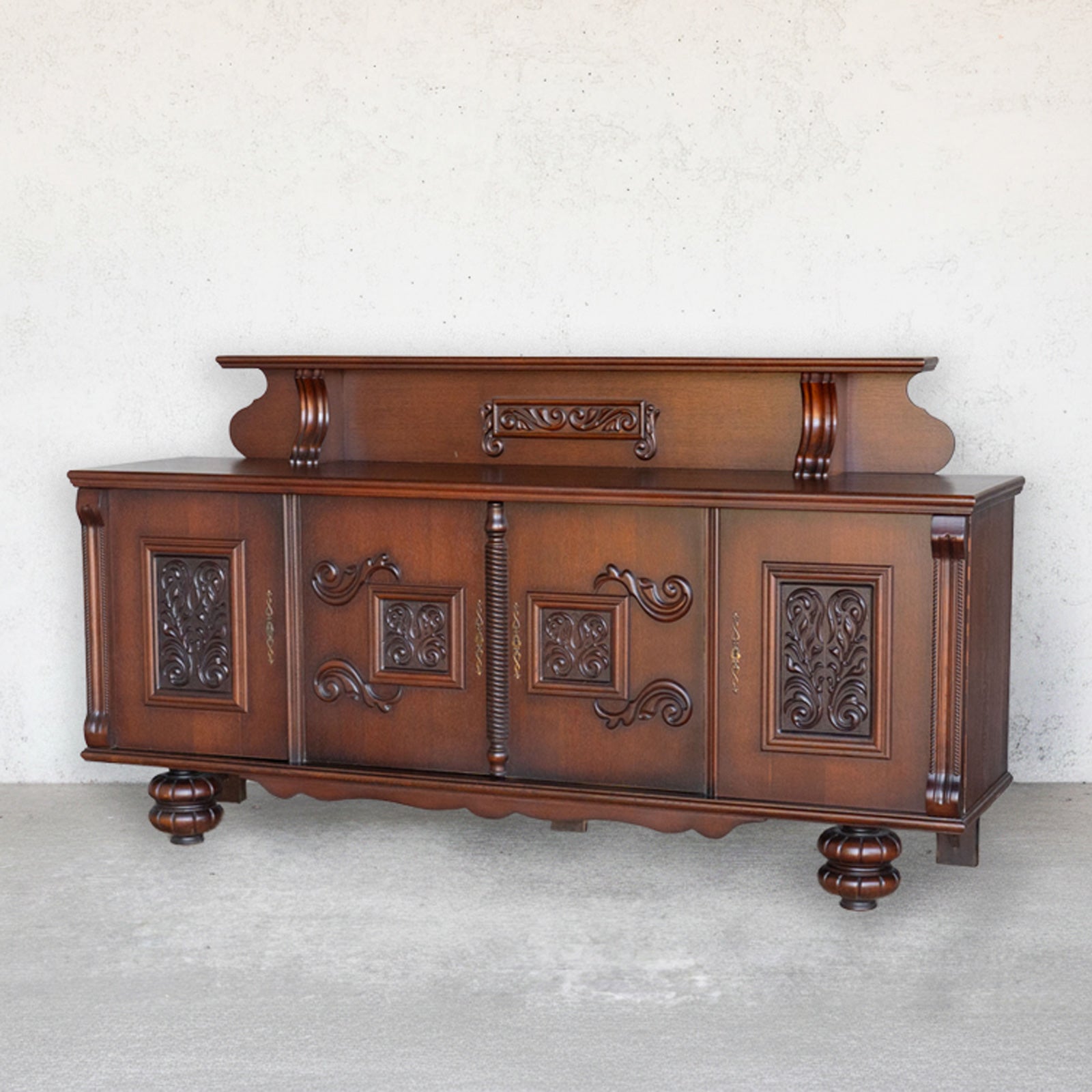 こちらはベルギーから買付けた、繊細な装飾が美しいサイドボードです。