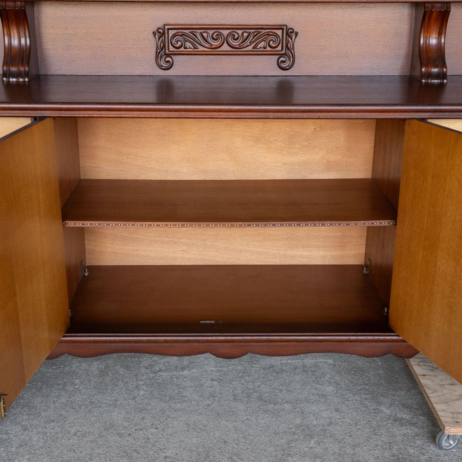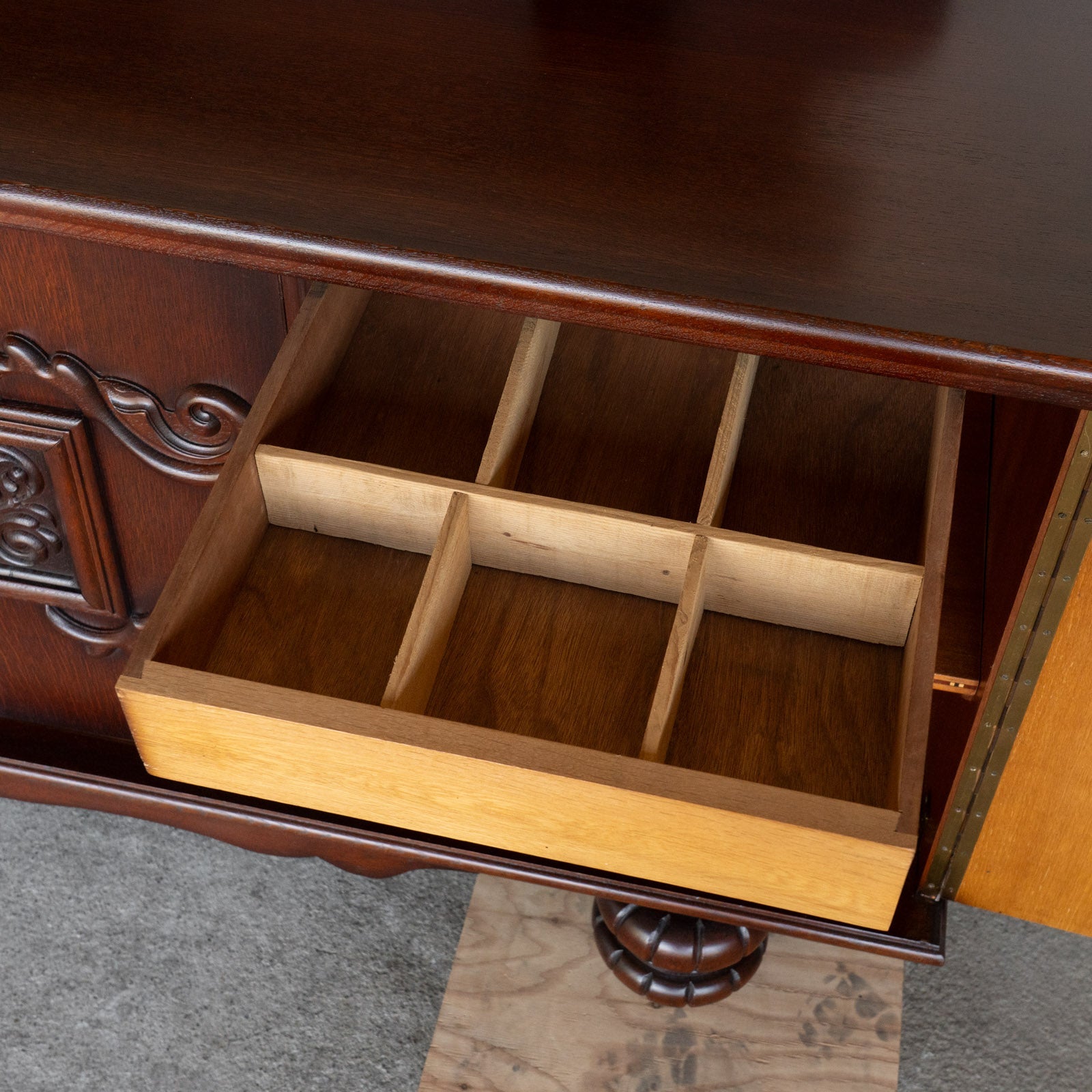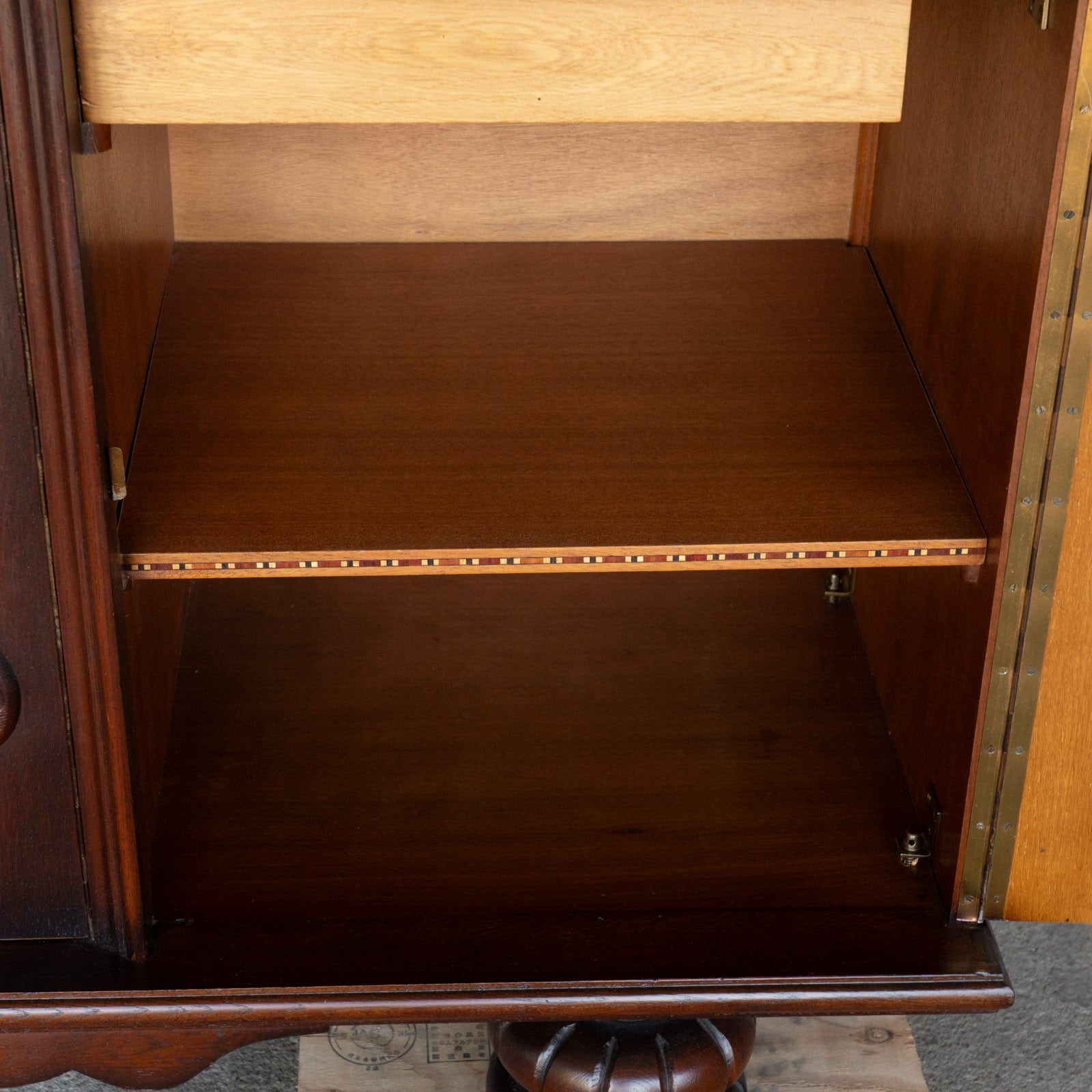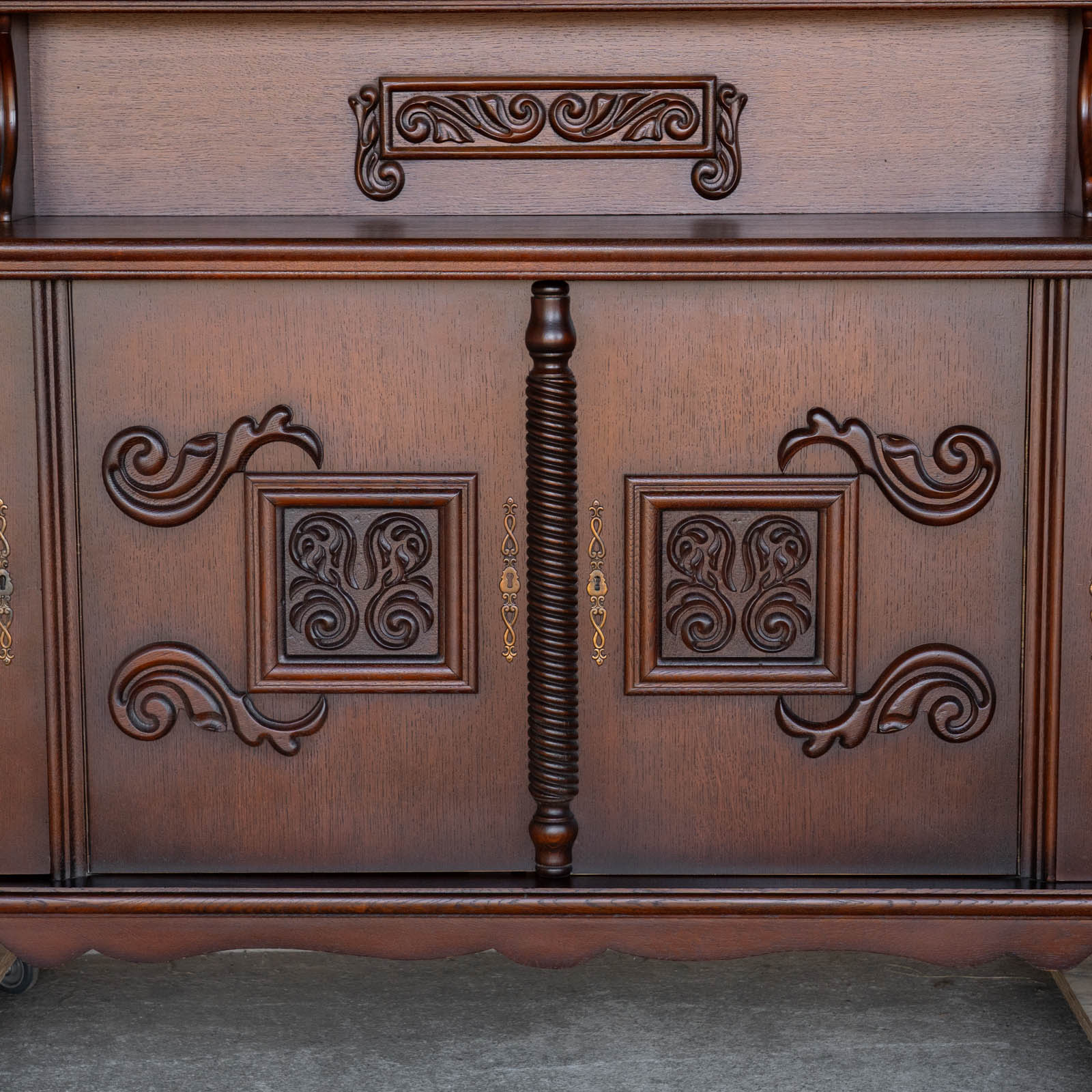 こちらはベルギーから買付けた、繊細な装飾が美しいサイドボードです。