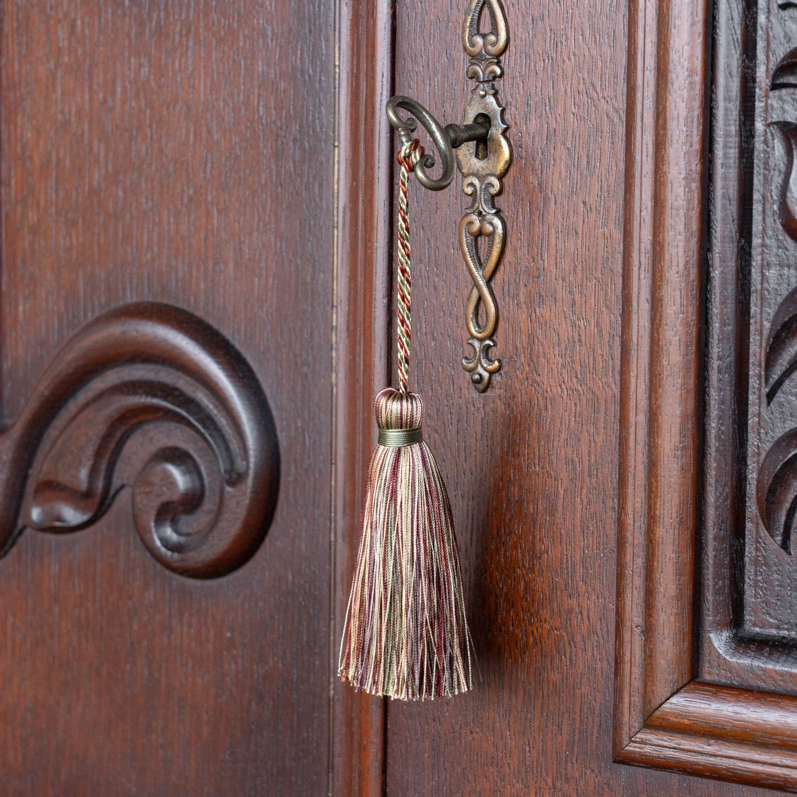 流れるような曲線と植物モチーフが織りなす、細部まで丁寧に仕上げられた装飾が印象的です。
