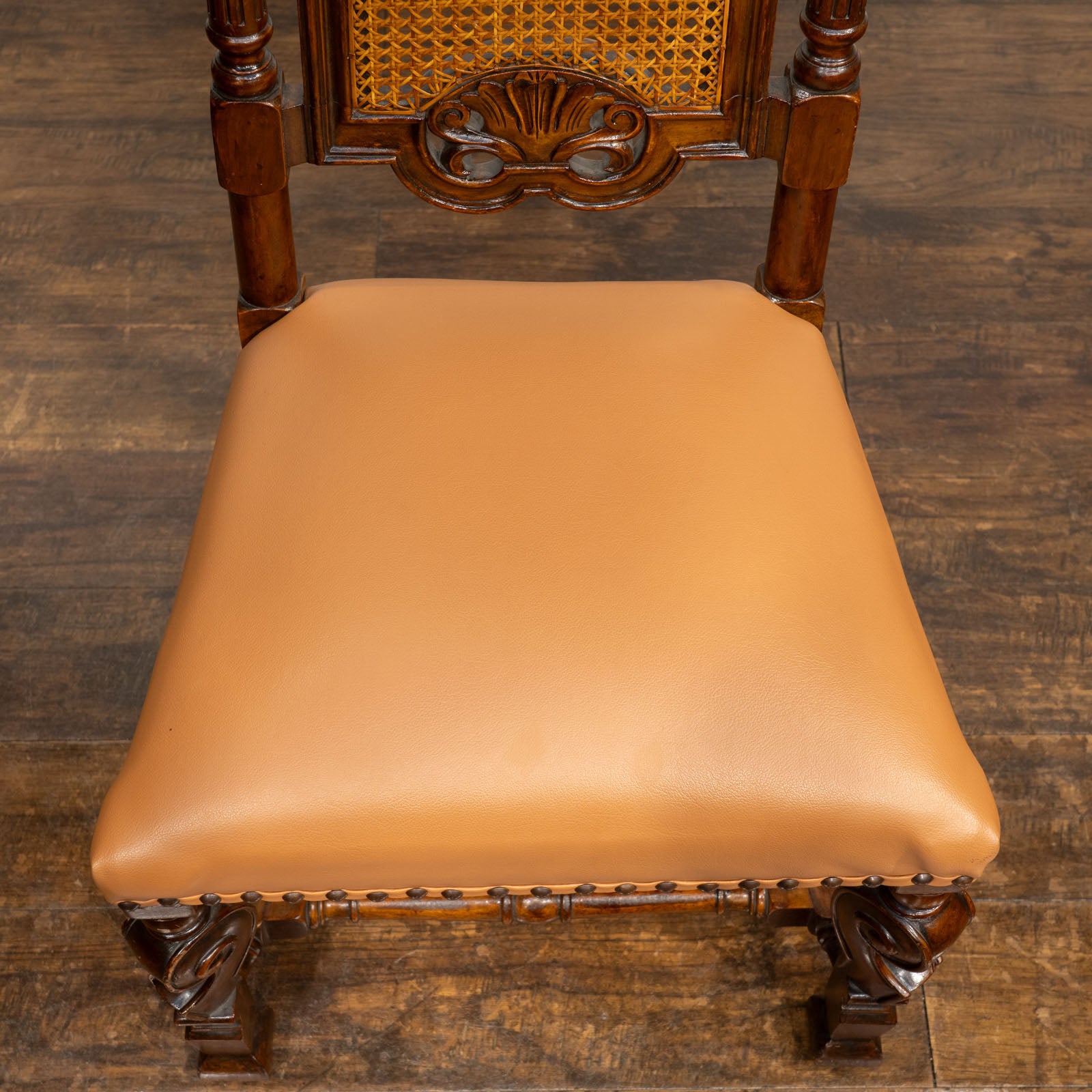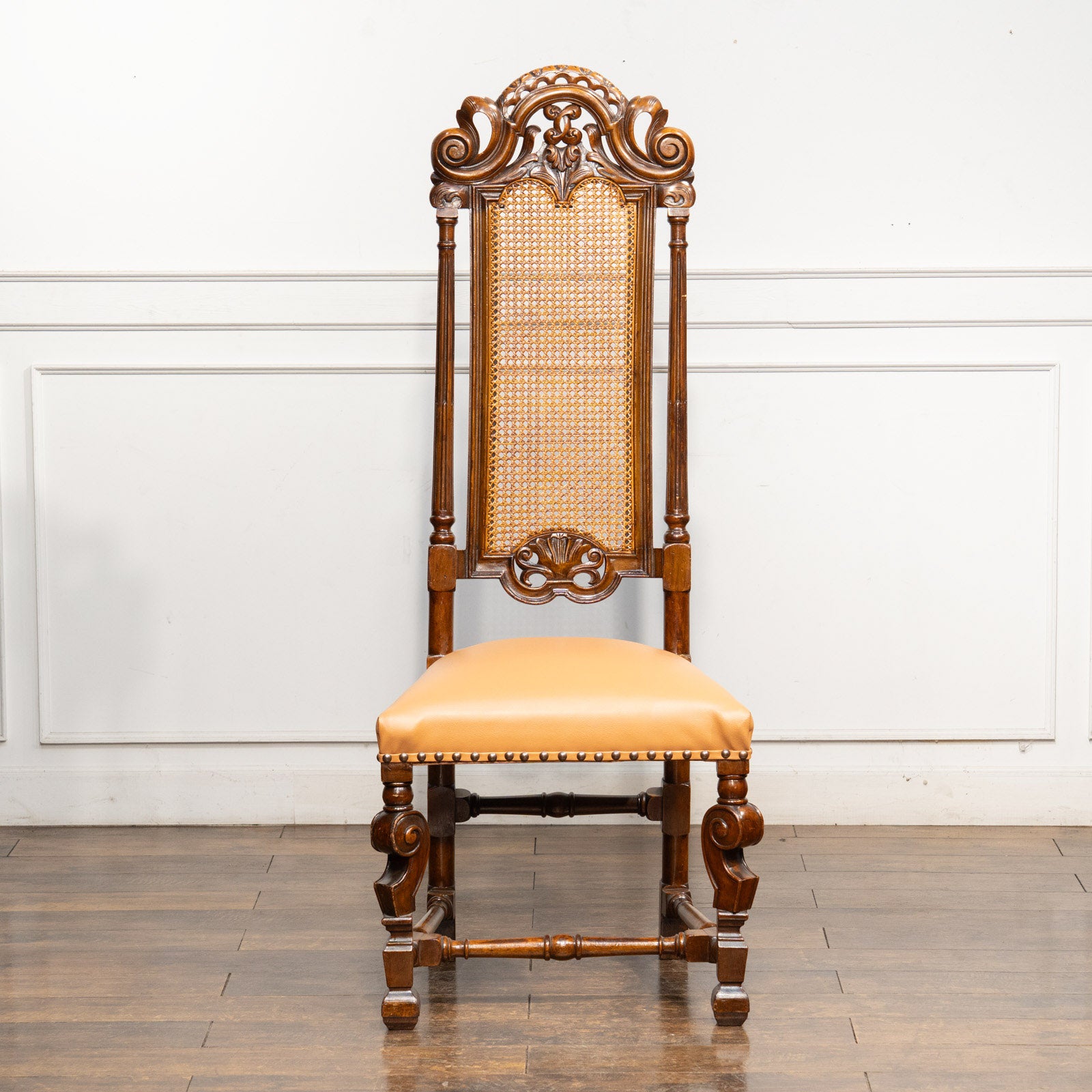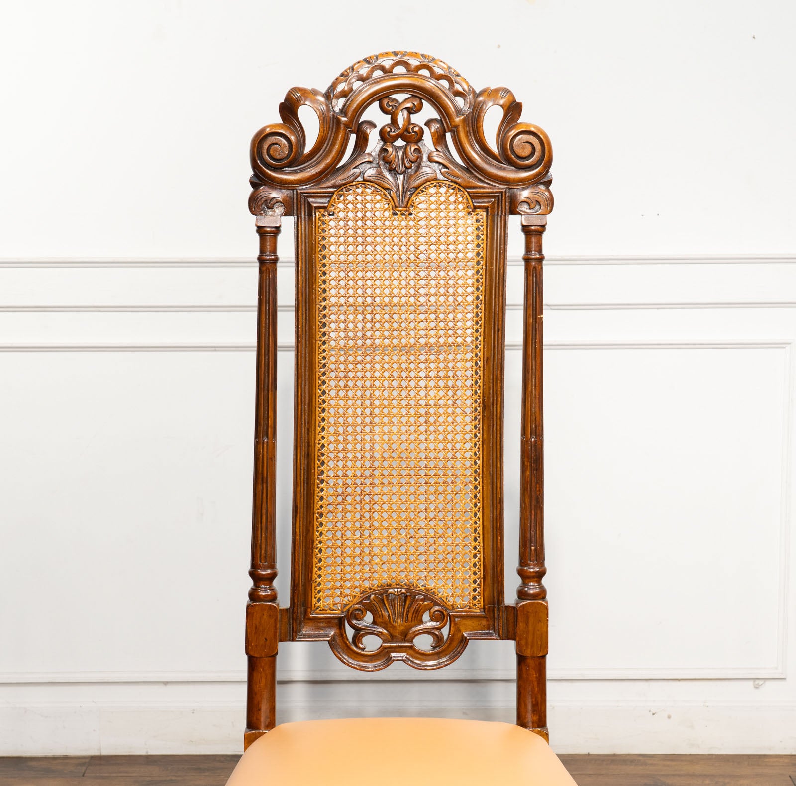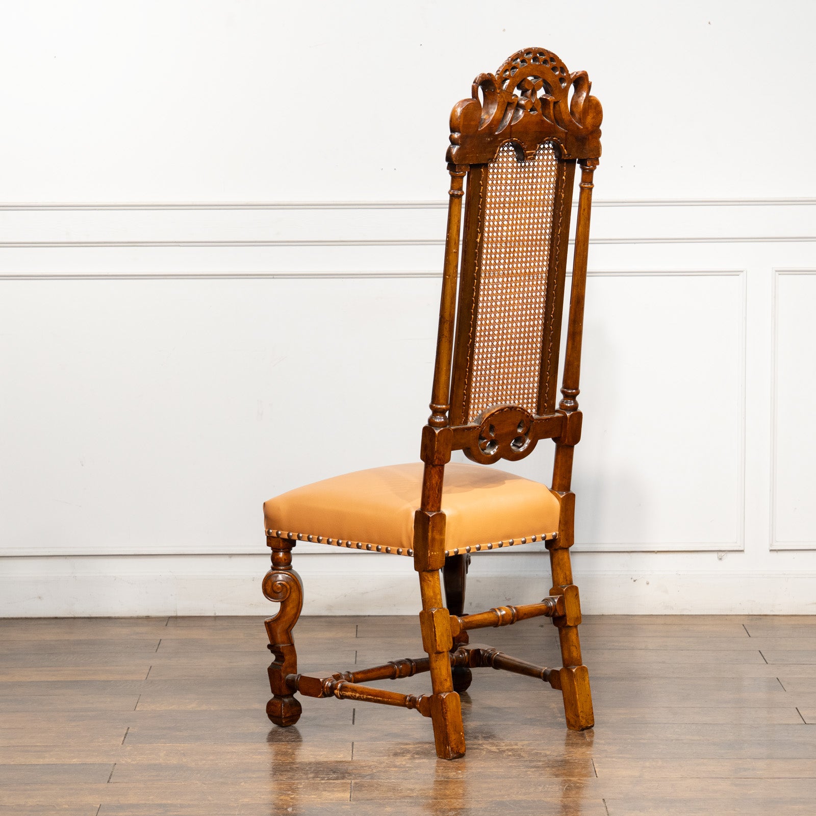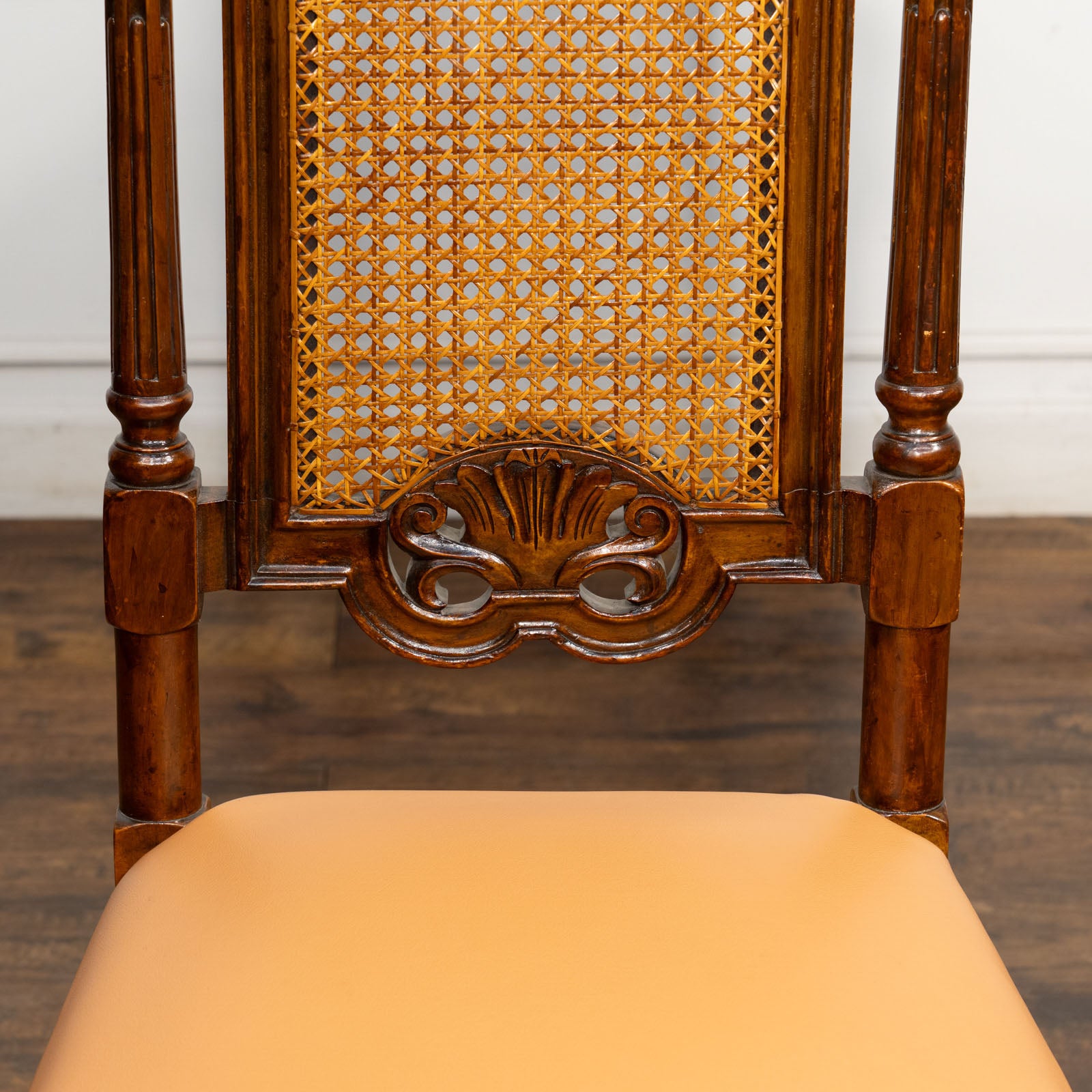 すらりとした背の高い背もたれには籐張りがされ、重厚な木部とのコントラストが美しい仕上がりです。