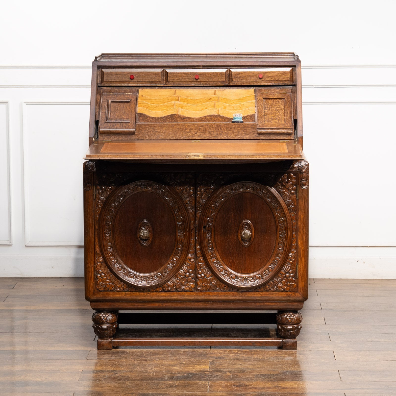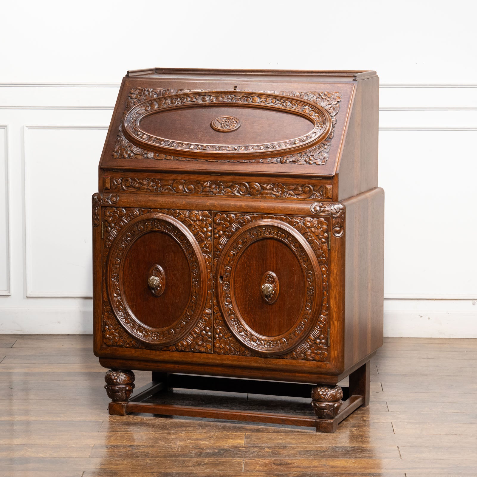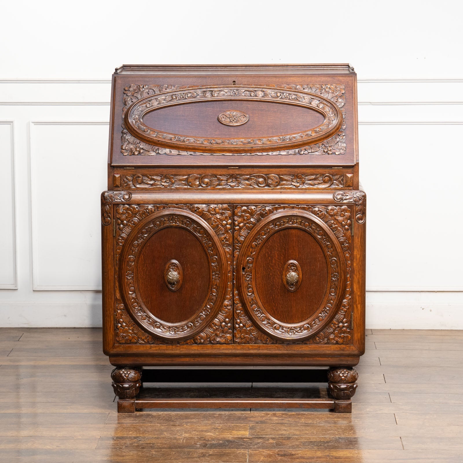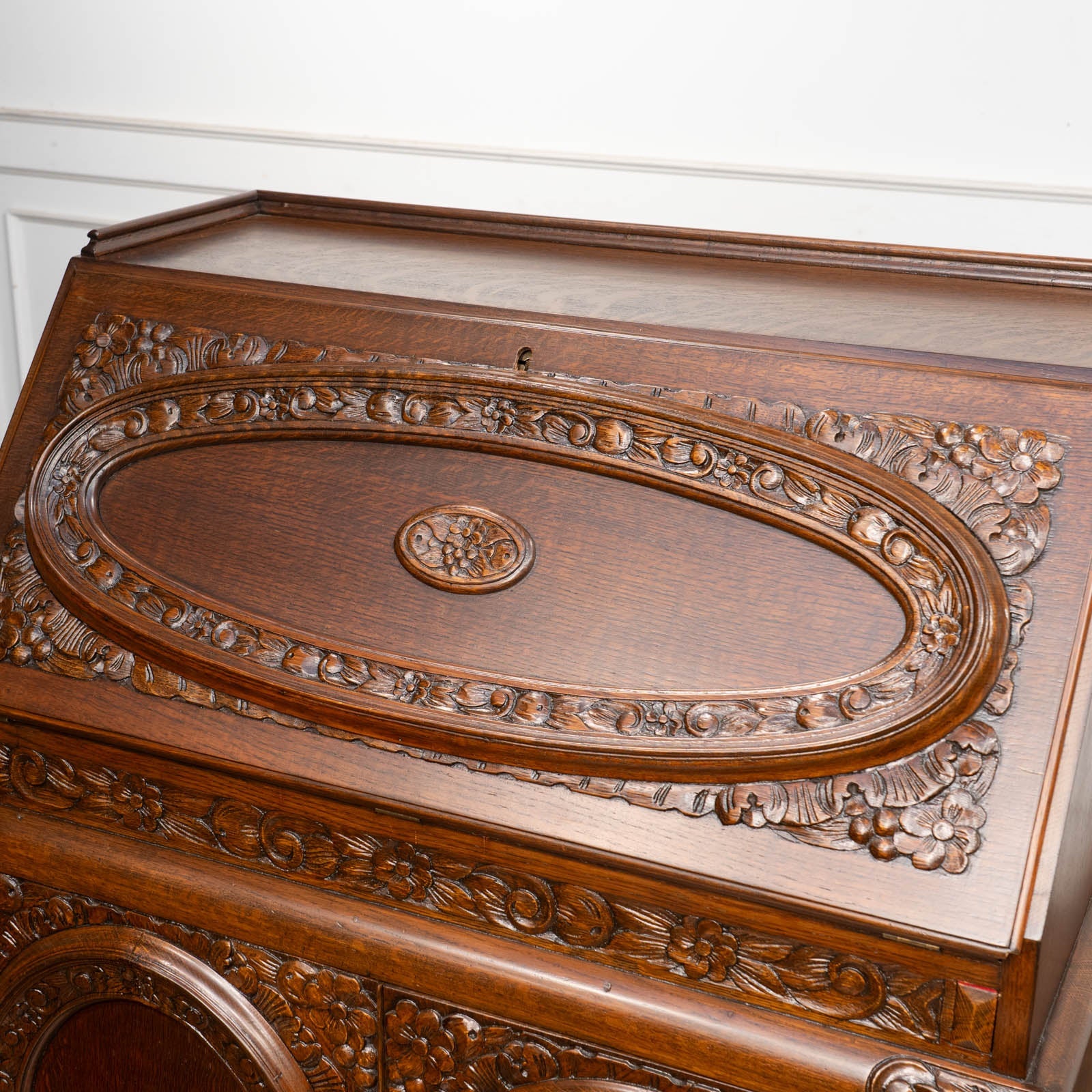 立体感のある花などの装飾が贅沢に施された オーク ライティングビューロー /23K