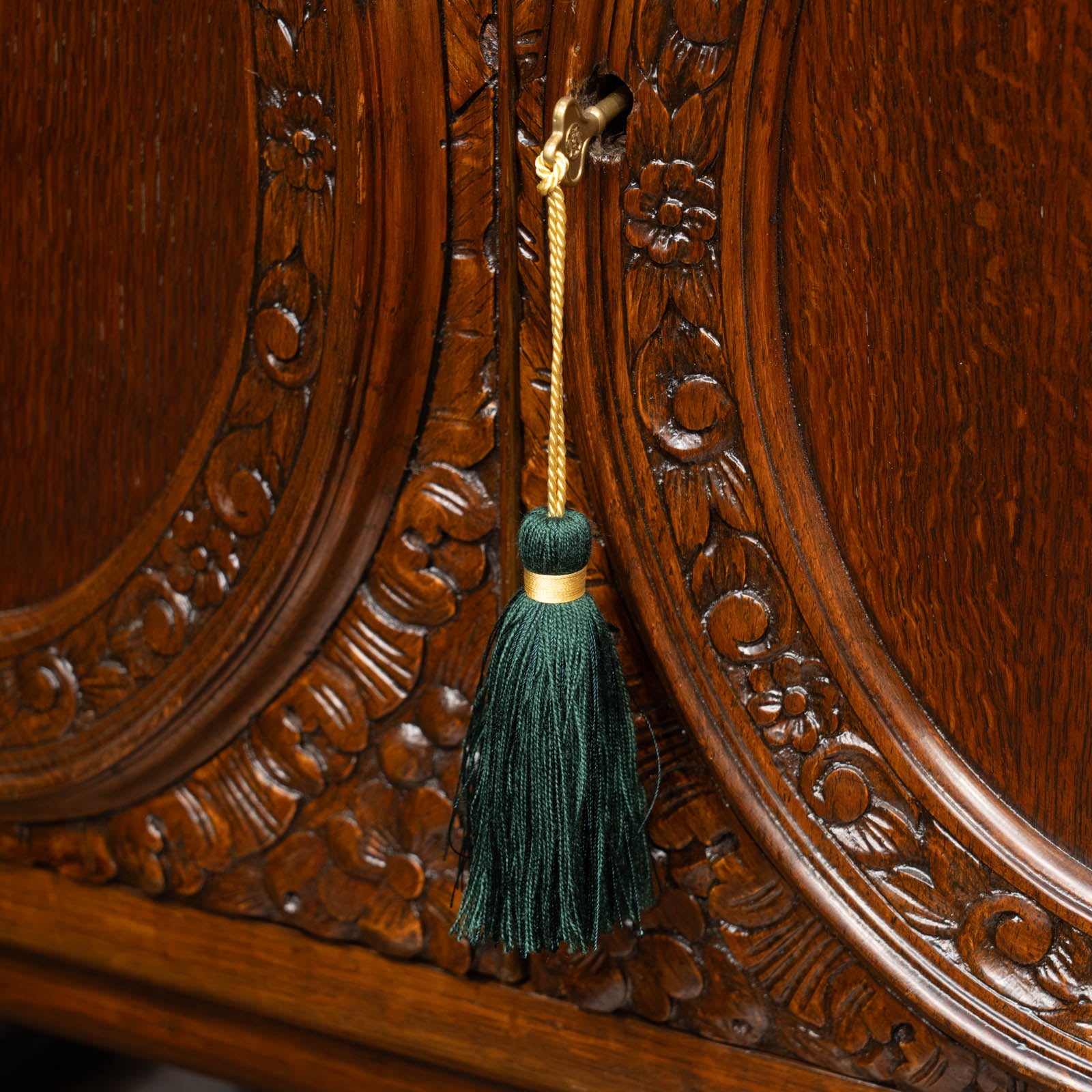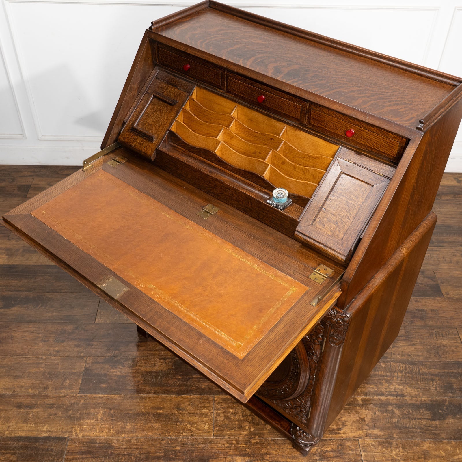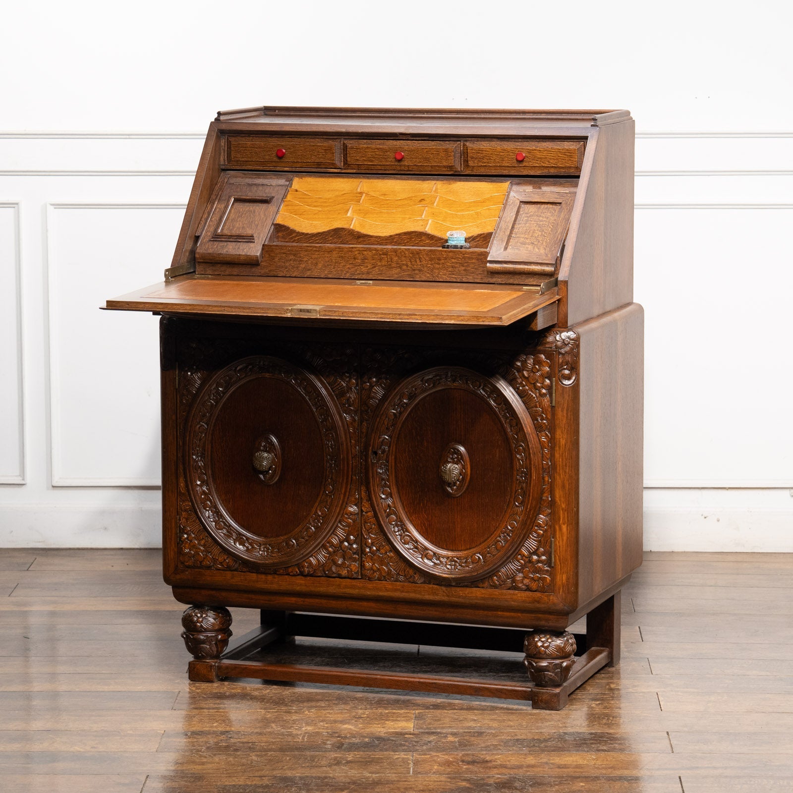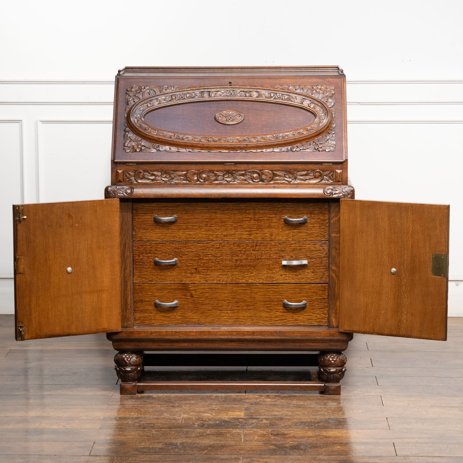 立体感のある花などの装飾が贅沢に施された オーク ライティングビューロー /23K